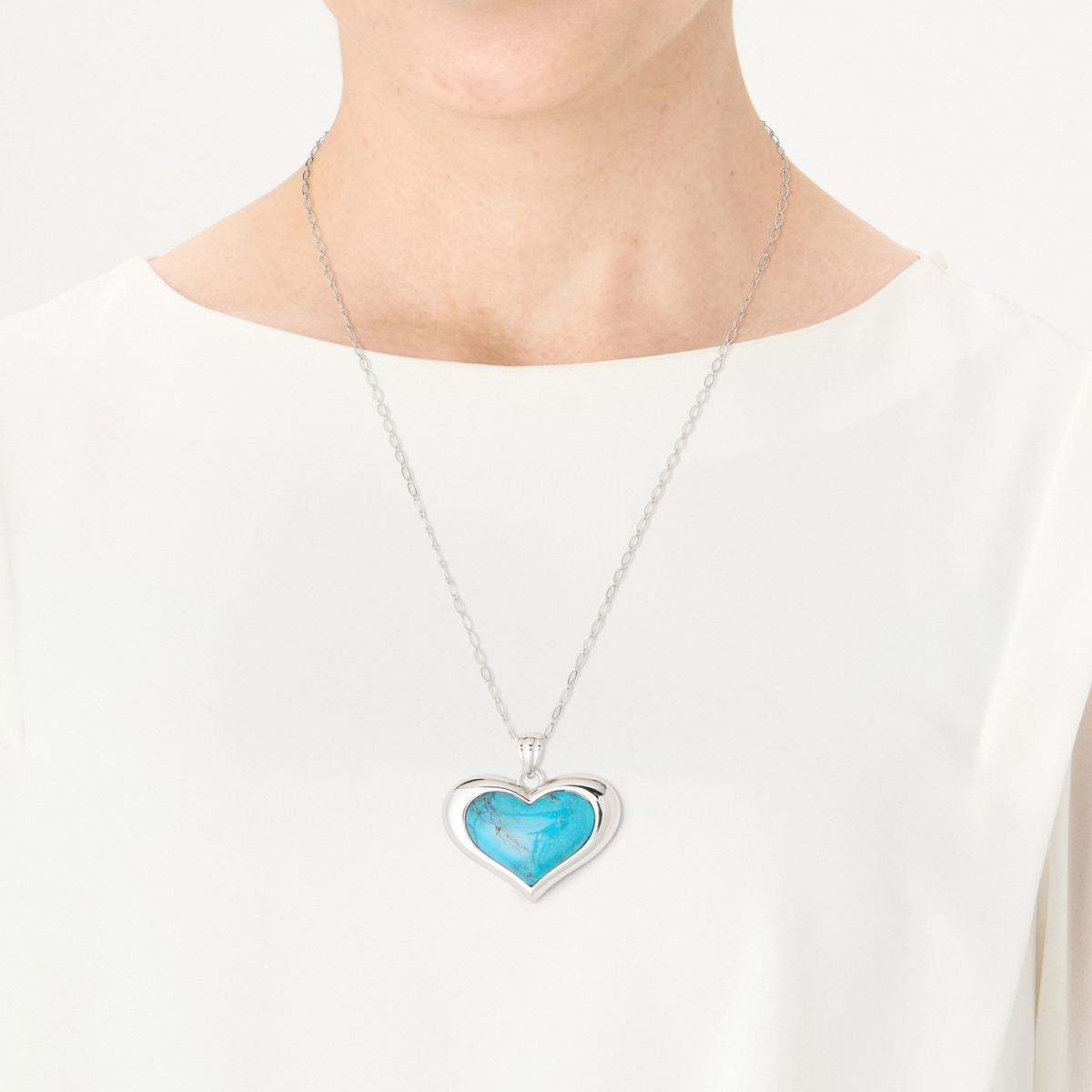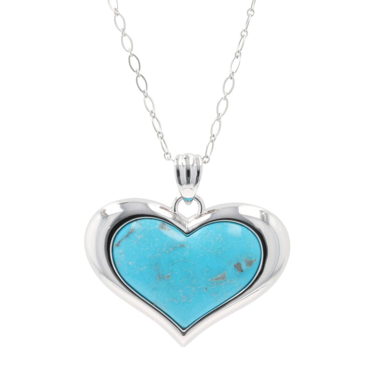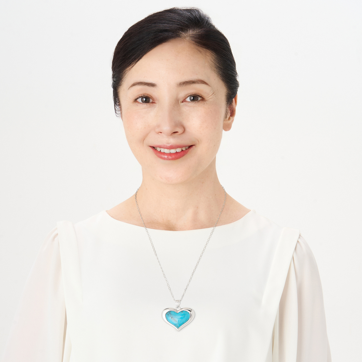天然ターコイズを使ったハート型ペンダントです。鮮やかなスカイブルーが胸元で美しく映え、日常の装いに爽やかな彩りを添えます