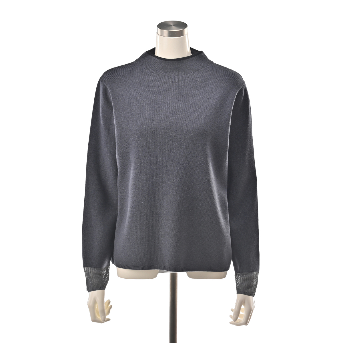 No. 748959 CARRIERE ボトルネック袖口シースルーニットプルオーバー