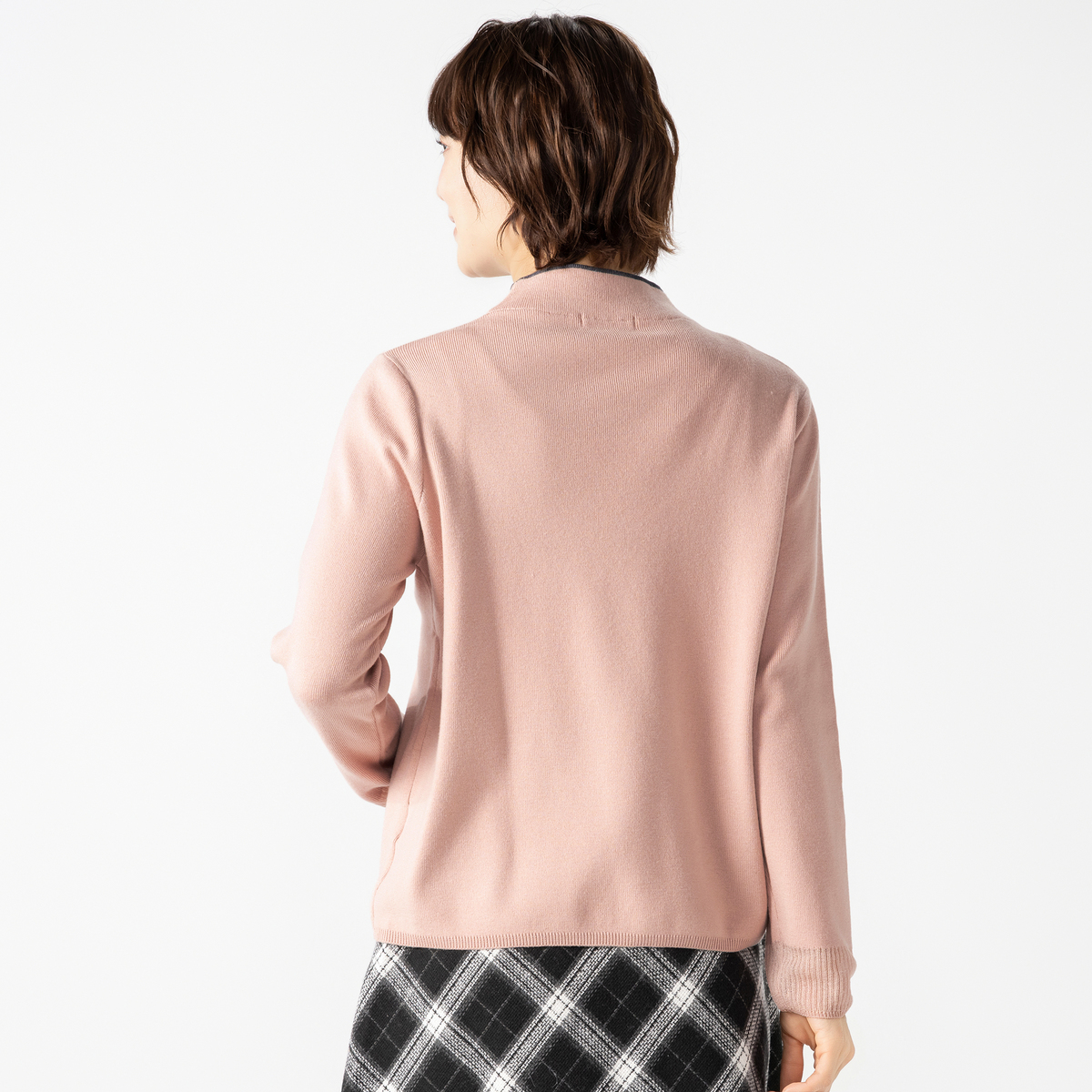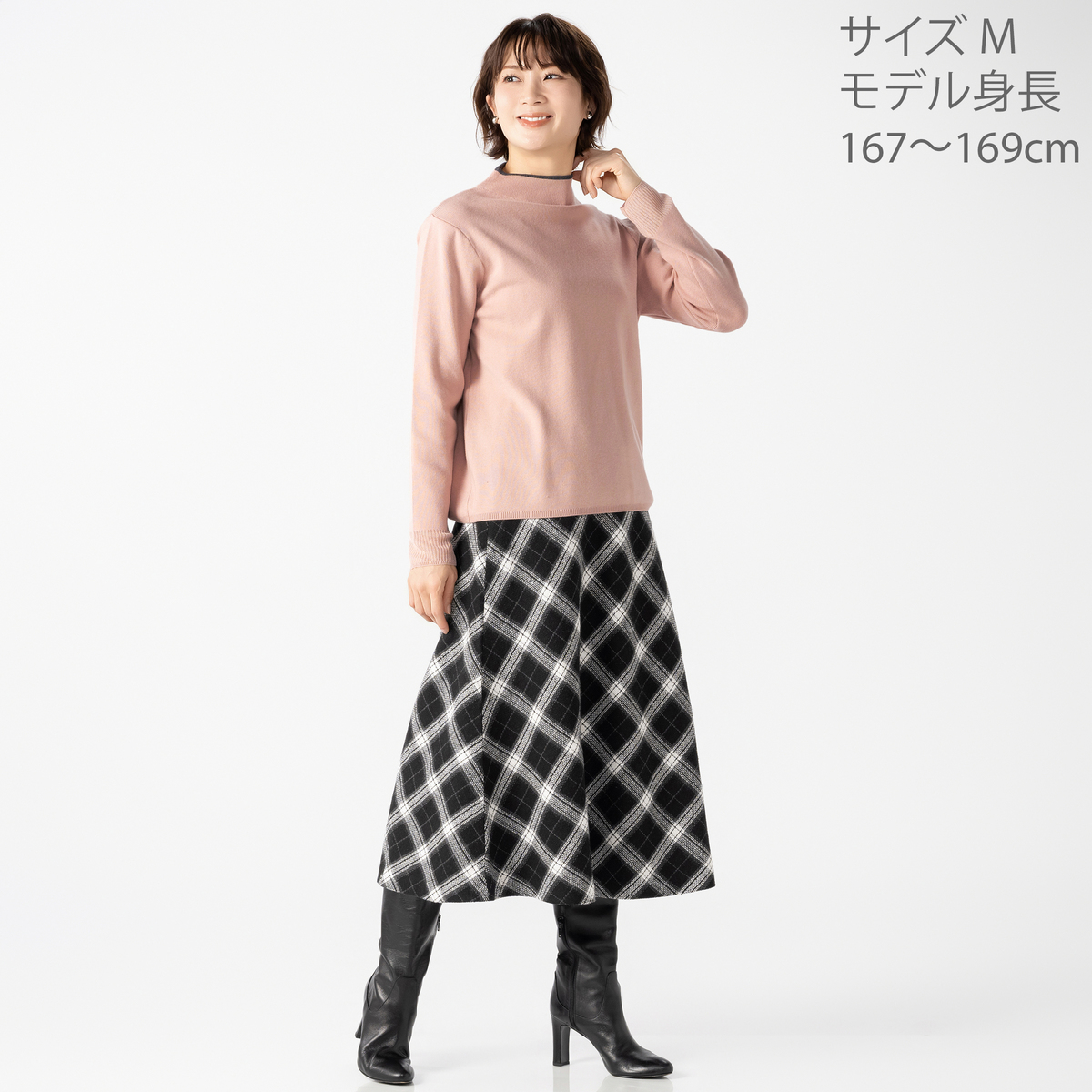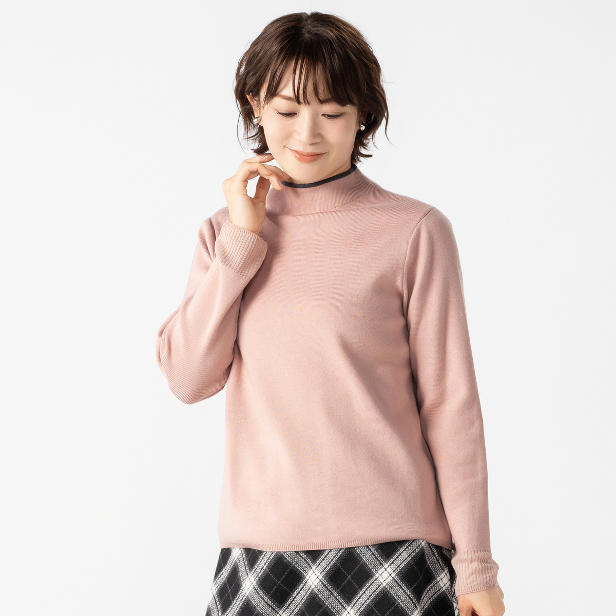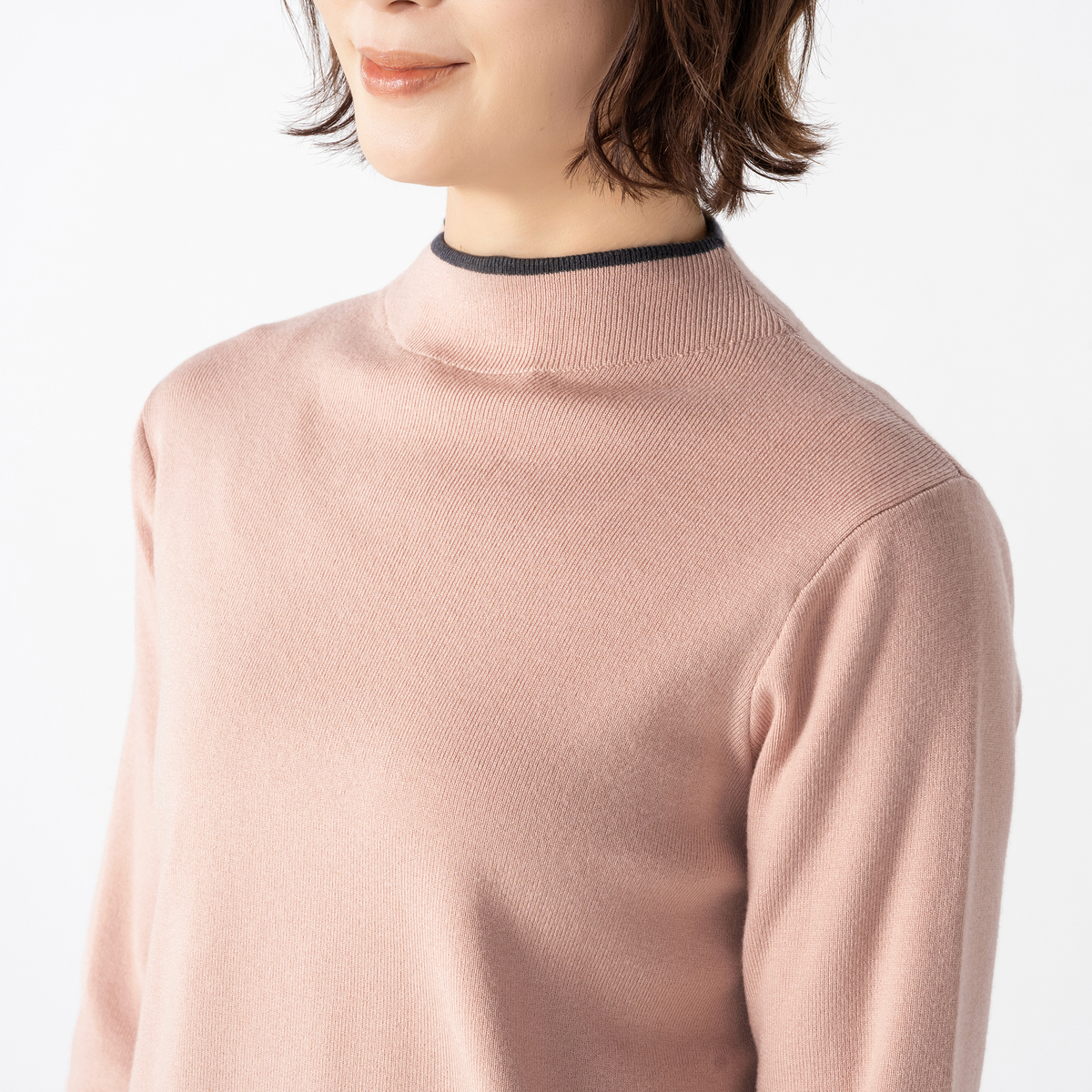 シンプルなボトルネックニットを、肌触りがよくもちっとしたなめらか素材で仕上げました。さりげないシースルーな袖口が、華やかな印象と上品さをプラスしてくれます