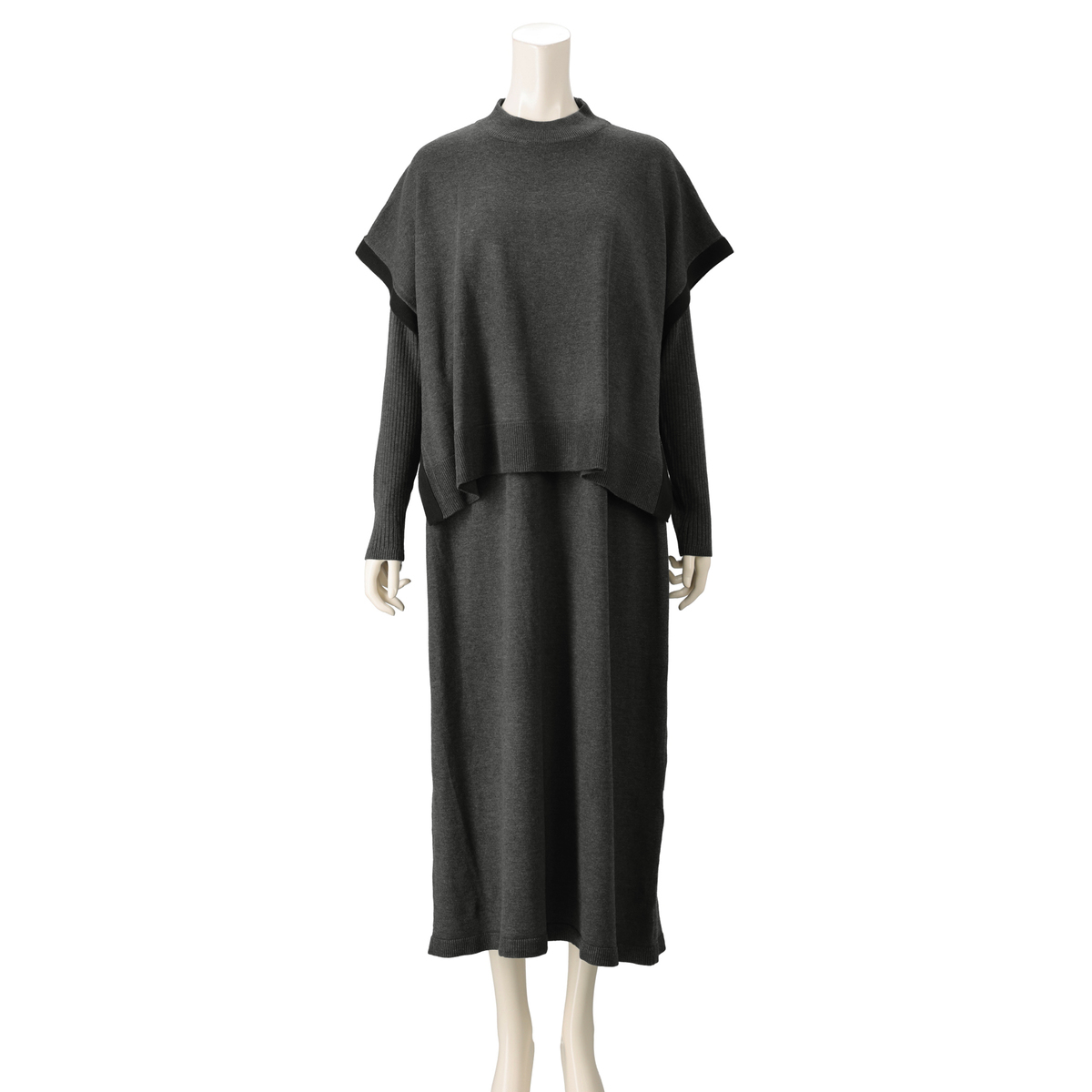 No. 748961 CARRIERE ワンピース&ポンチョ風ベストニットアンサンブル