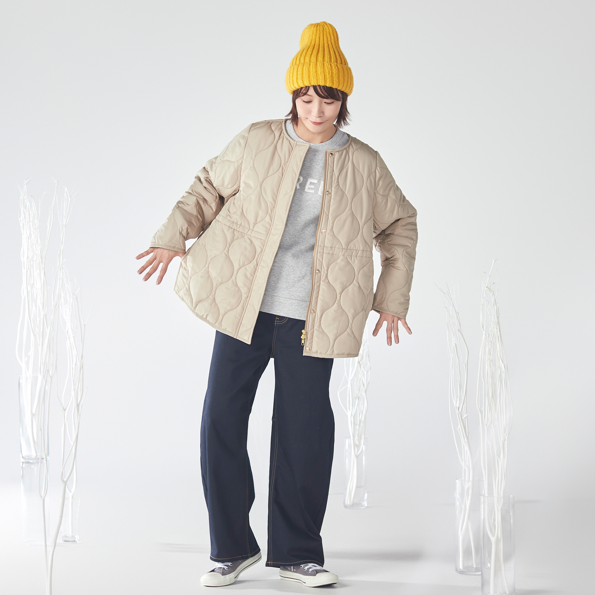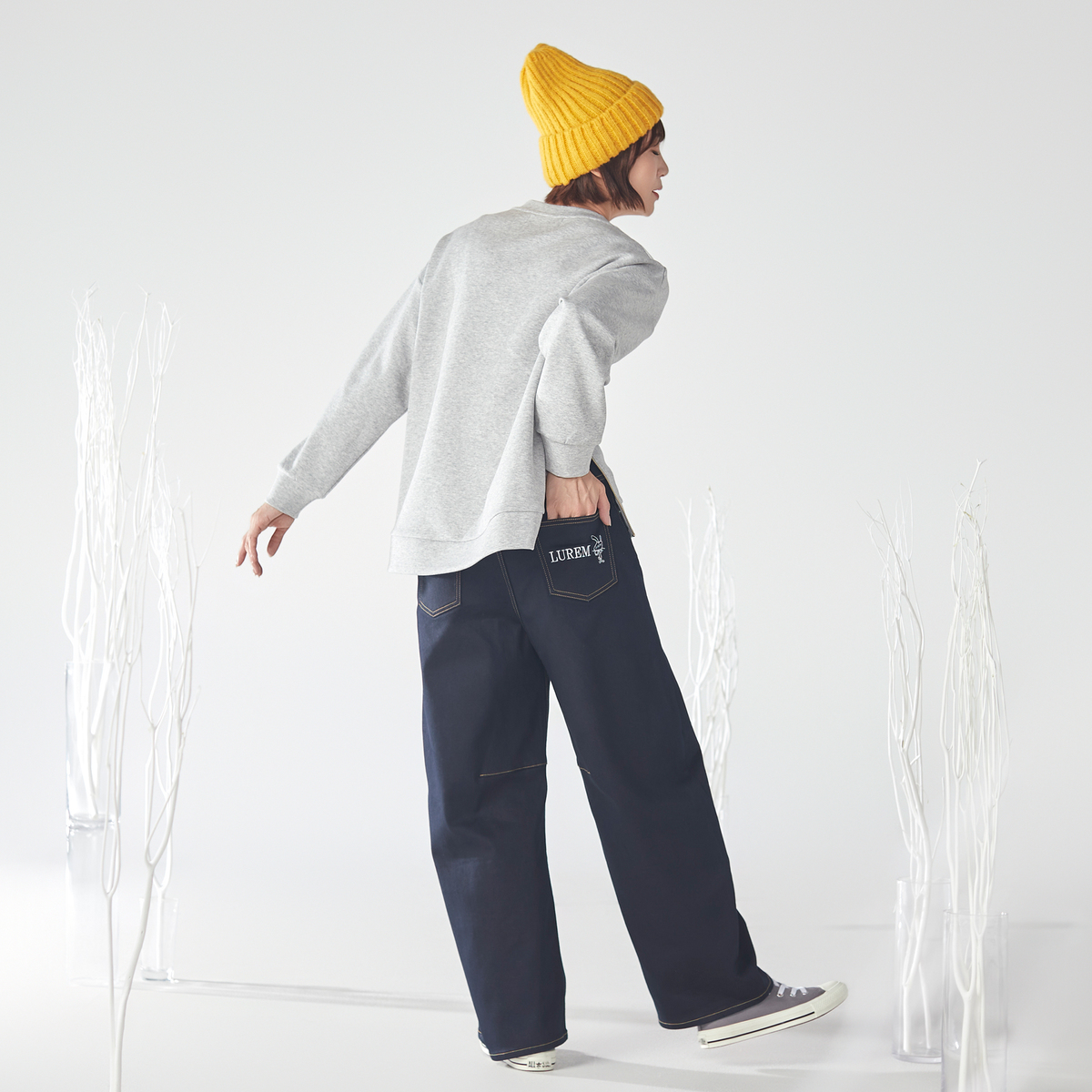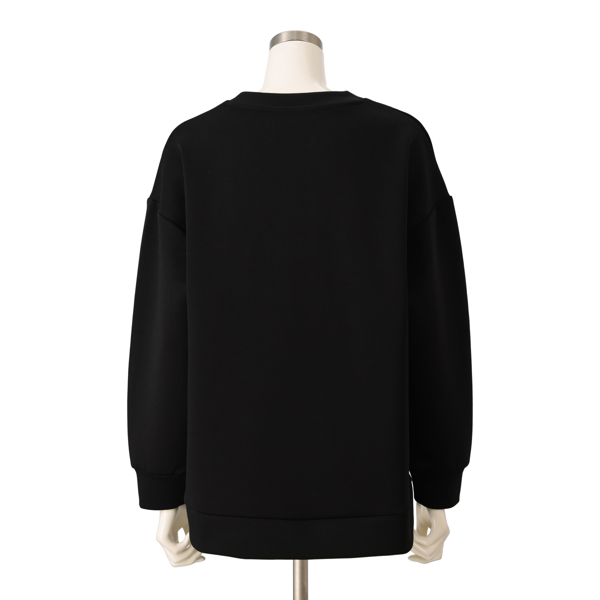 パール調刺繍が上品に映える、ダンボール素材のプルオーバー。きれい目な質感で、暖かい日は厚手のTシャツとして、寒い日はインナーを重ねてトレーナー風にも着用可能。サイドジップを開ければ、着こなしの幅が広がり、組合せ次第でカジュアルにもフェミニンにも活躍します