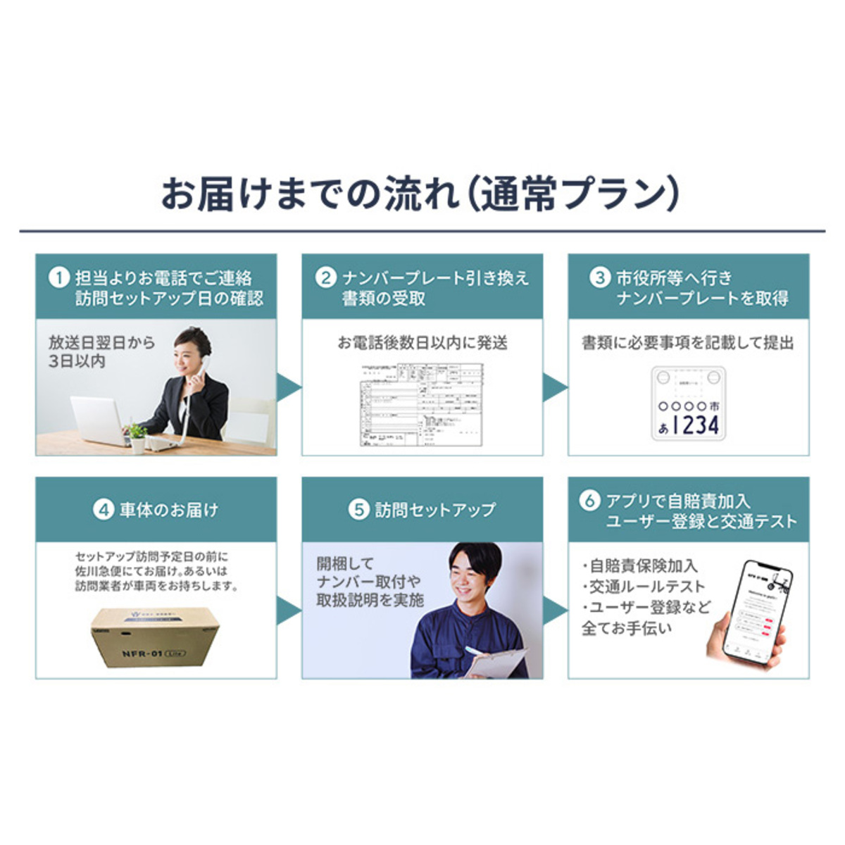 [商品内容] ・本体、バッテリーキー(2本) ・ワイヤーロック ・バッテリー ・バッテリー充電器 ・フロントバスケット:1個 ・スマートフォンホルダー:1個 ・車体保証:1年+延長1年 ※組み立て式(訪問セットアップ) [サイズ] <通常時> 全幅:56cm 全長:130cm 全高:108cm <折りたたみ時> 全幅:32cm 全長:130cm 全高:72cm [重量] 19.5 kg ( バッテリー装着時) [耐荷重] 100kg [充電時間] 5時間 [走行距離] 約24km(目安) 【日本製】 [注意事項] ※NFRー01 Liteは特定小型原動機付自転車です。 16歳未満の方は購入することや、運転することができません ・年齢確認 ・ユーザー登録 ・交通ルールテストの受講 ・ナンバー取得後の自賠責保険加入 の確認登録をおこなっていただきます。上記の確認が完了しますと、お届けした車体についているチェーンロックの解錠番号がアプリに表示され、走行できるようになります ※特定小型原動機付自転車運転には下記が必要です: ・ナンバープレートの取付け ・自賠責保険加入及び、走行時の自賠責書類携帯 ※ヘルメットの着用は努力義務となります。しかしながら、万一の場合、自身の身を守るために常時着用を推奨します ※16歳未満の運転、16歳未満に対しての車両貸出や転売は禁じられています。その他、特定小型原動機付自転車の交通方法等に関する規定の遵守が必要です ※道路交通法を遵守してください ※ナンバープレートの取得と自賠責保険への加入が義務付けられております ※車道走行時は20km/hモード、自転車が走行可能な歩道の走行は6km/hモードを使用してください ※ヘルメットは努力義務ですが、着用を強く推奨します ※完全防水ではございません。天候や使用状況により故障する可能性がございます ※バッテリーは長時間放置すると使用できなくなる可能性がございます。使用しない場合は車体から取り外し、最低1ヶ月に1回は充電をしてください ※シートやハンドルバーは規定値を超えない範囲で調節してください ※乗車前に灯火類の点灯や空気圧の確認など点検をお願いします ※ブレーキをかける時はスロットルから手を離してください ※ブレーキは後輪(左手)から掛けてください ※特定小型原付は16歳以上が対象です ※飲酒運転や走行中のスマートフォン等の操作などは絶対にお止めください ※安全に車両をお使いいただくためにも点検・整備は欠かさないでください ※定期点検は車両使用者の管理責任で定期的に行う点検整備です。別途、使用頻度や車体の状態に応じたタイミングでメンテナンスを実施してください ※バッテリーは使用して無くても自然放電します。最低でも1ヶ月に1回の充電をお願いします ※ブレーキのレバーの点検をお願いします。ブレーキレバーを握ったときのブレーキレバーとグリップの隙間が20mm以下になると速やかに最寄りの取扱店での点検・整備を実施してください