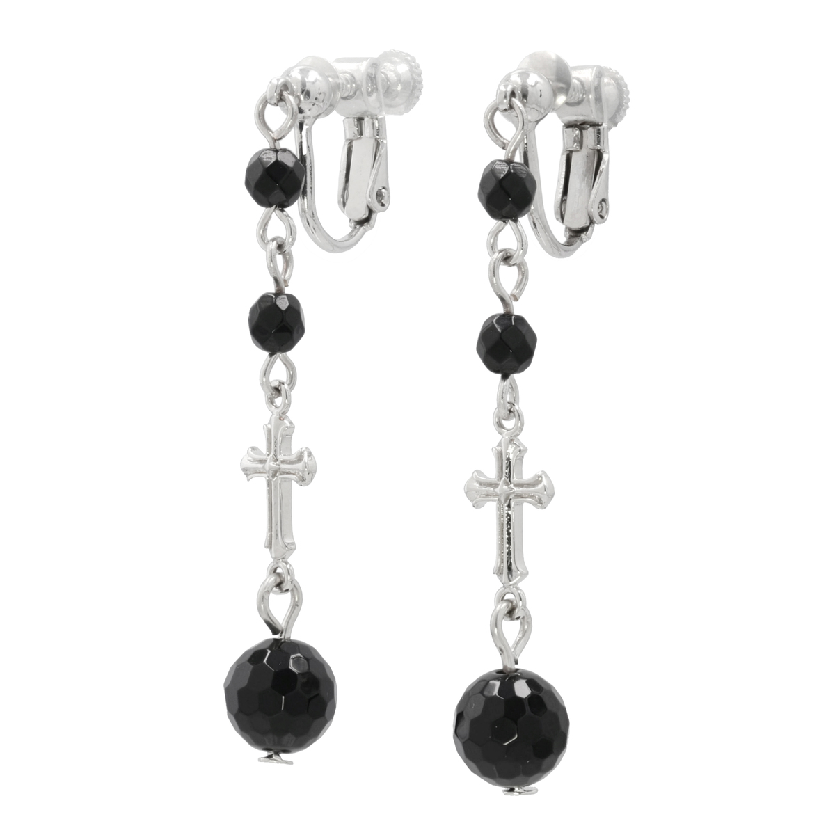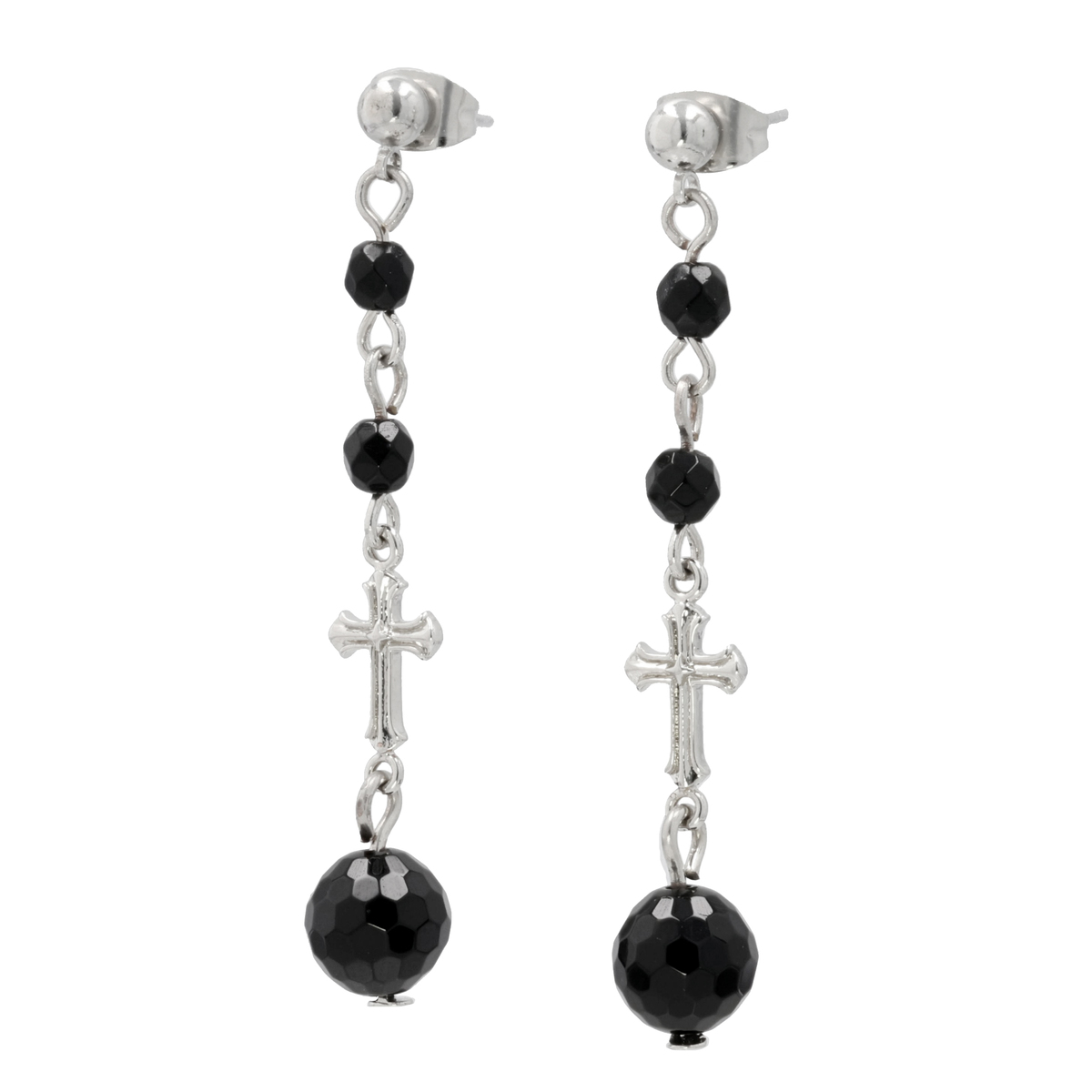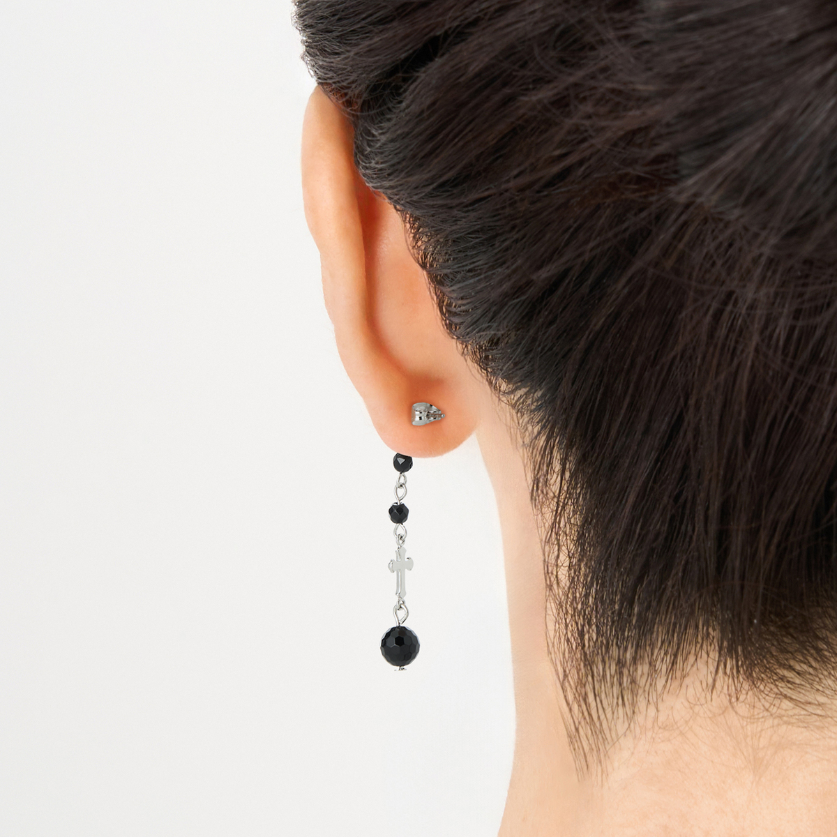 クロスモチーフと天然石を組合せたイヤリングまたはピアス。装いのポイントになってくれる、上品かつスタイリッシュなデザインです