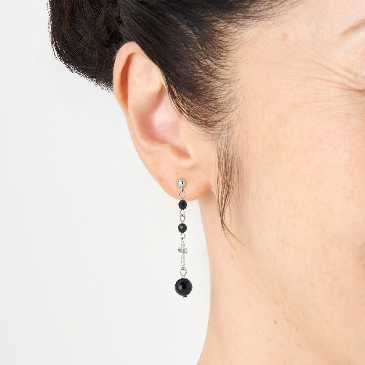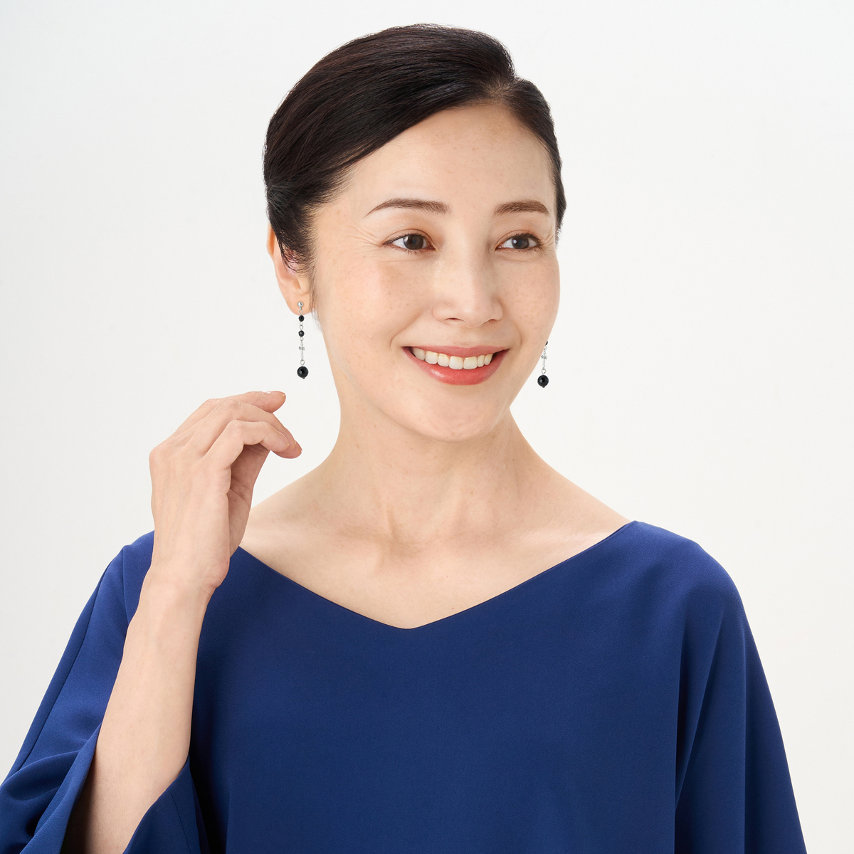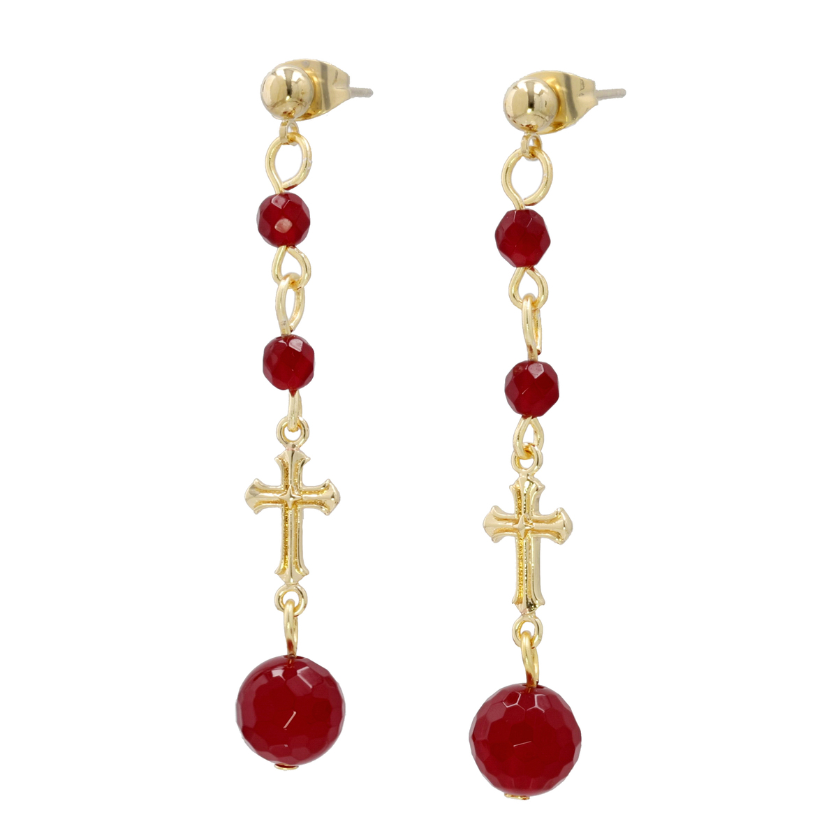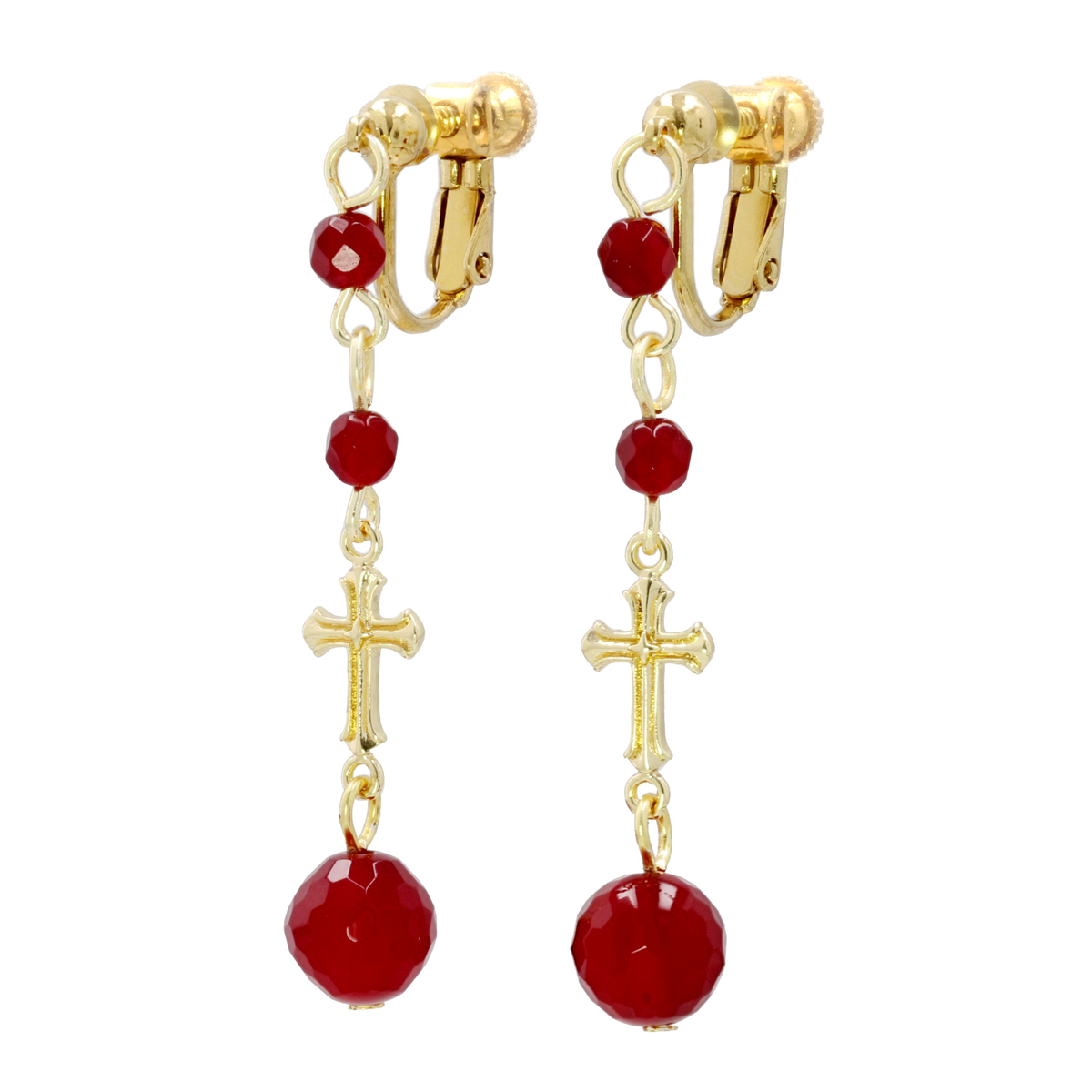 クロスモチーフと天然石を組合せたイヤリングまたはピアス。装いのポイントになってくれる、上品かつスタイリッシュなデザインです