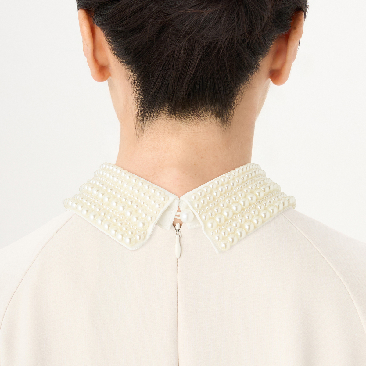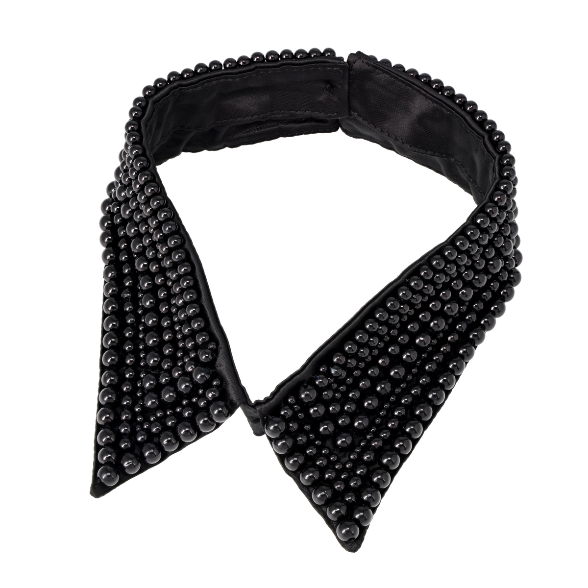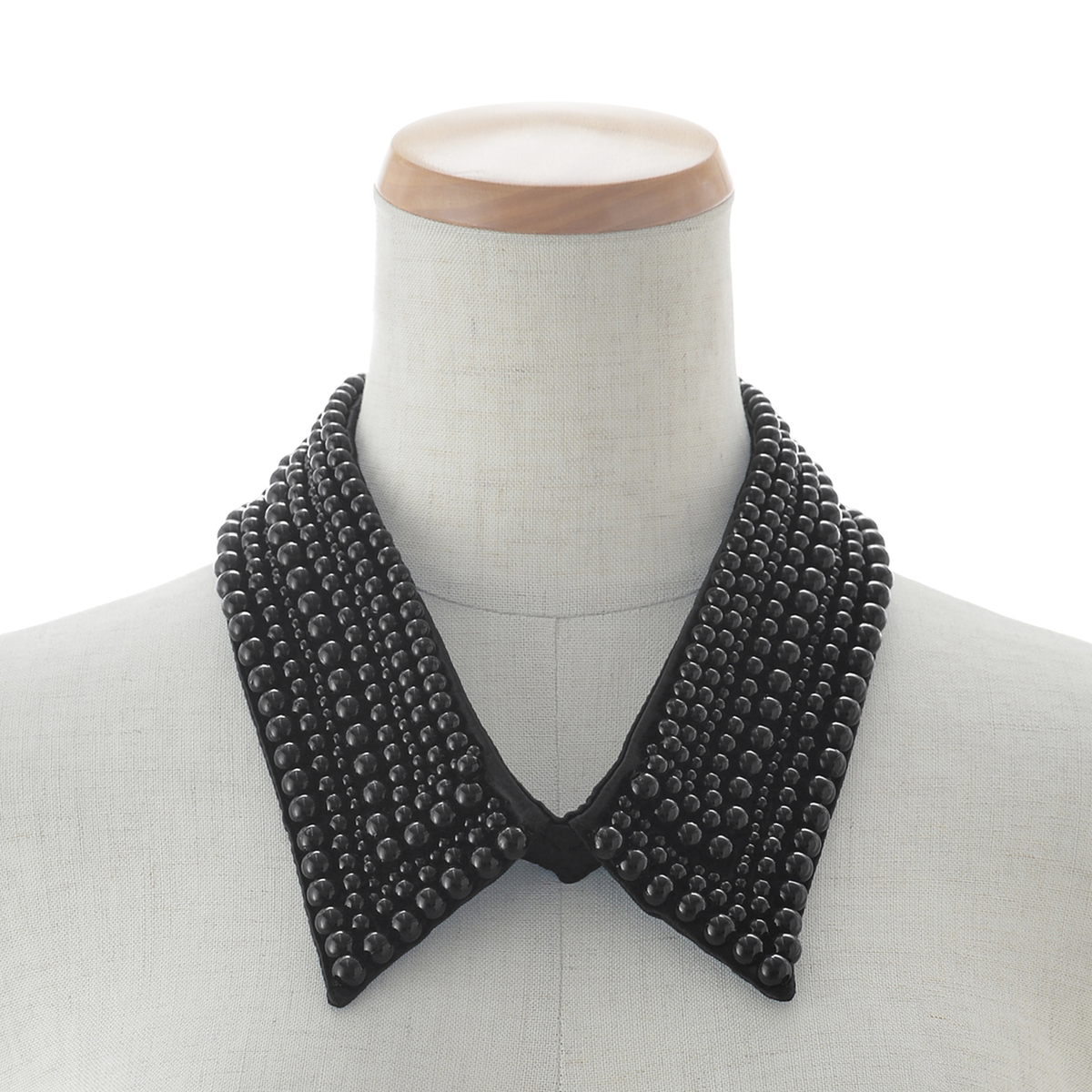 プラスチックビジューを全体にあしらったゴージャスな付け襟。ホワイトとブラックの2色をご用意いたしました