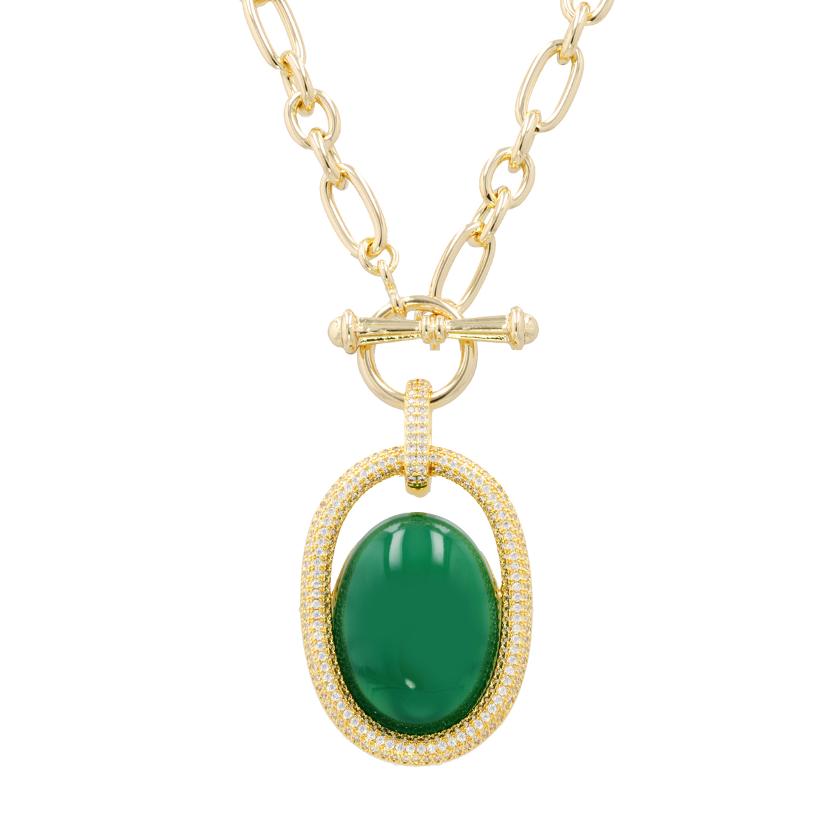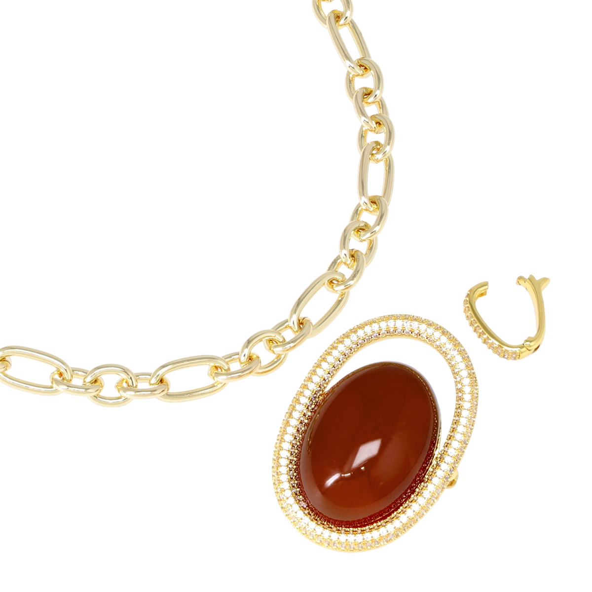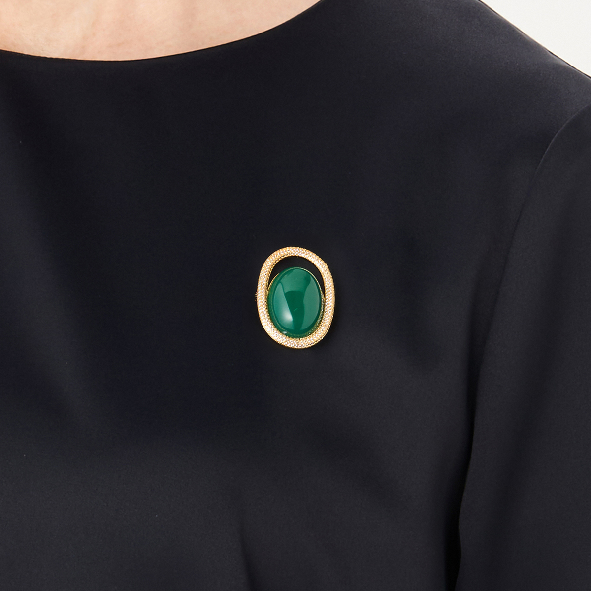 大ぶりの天然石をメインに配したペンダント/ブローチです。キュービックジルコニアが周囲を彩り、上品かつゴージャスに仕上げています