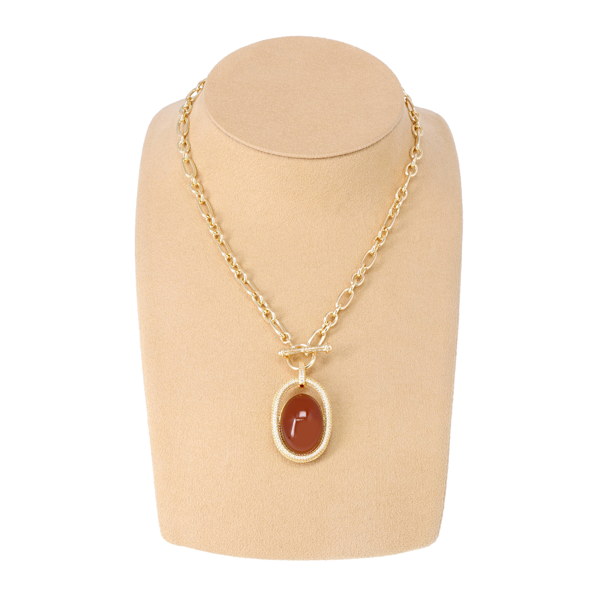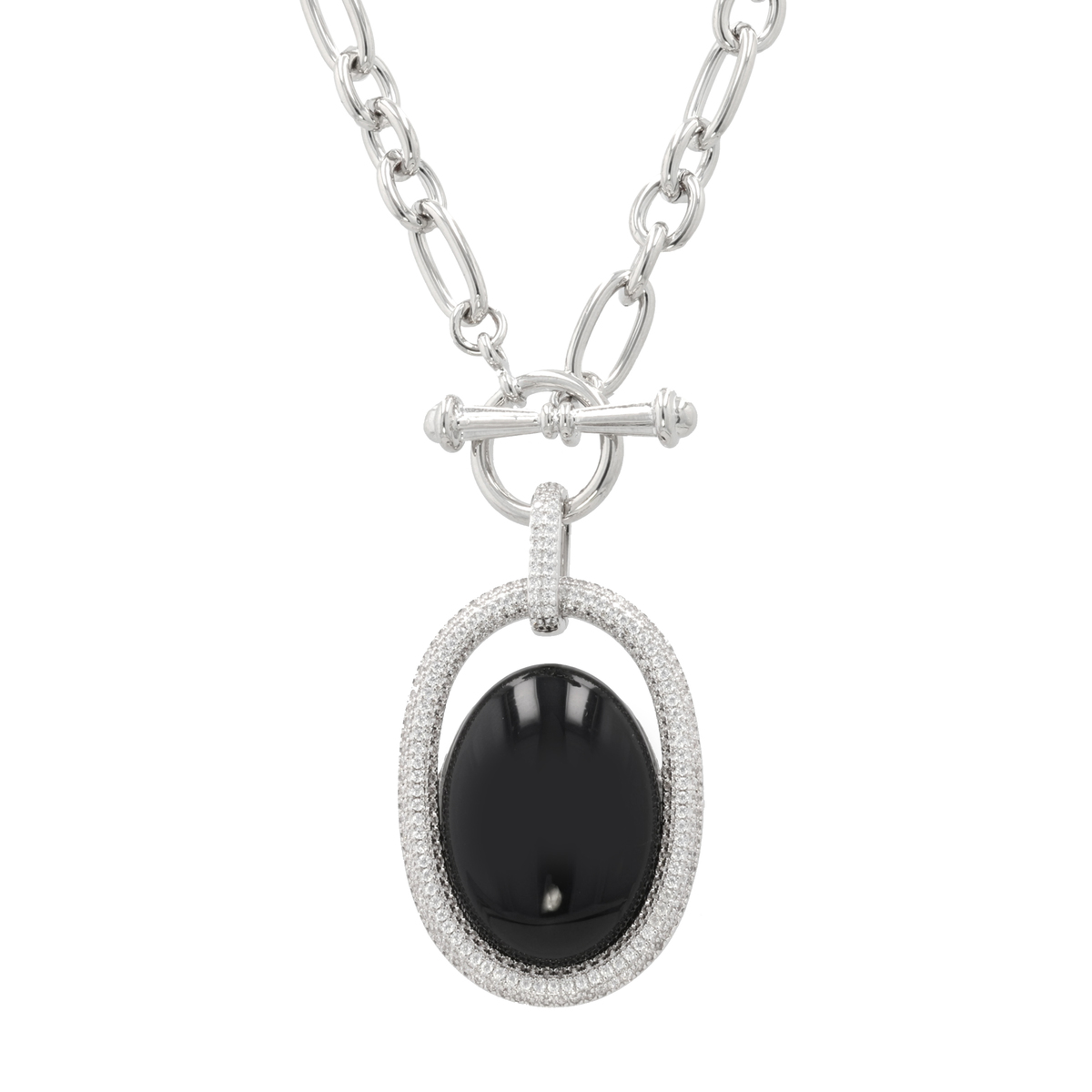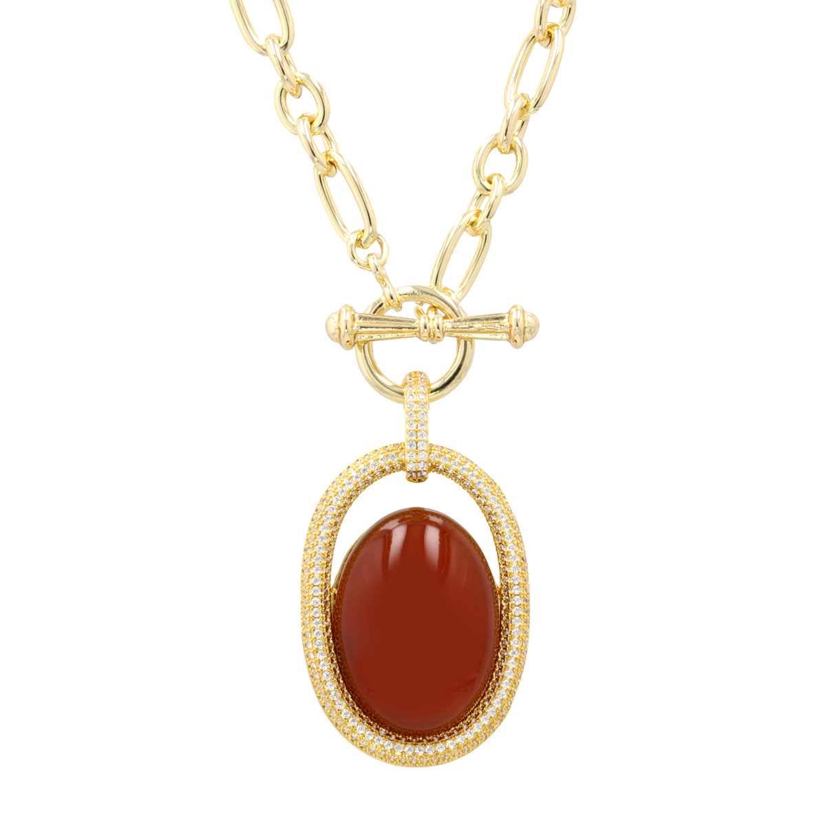 大ぶりの天然石をメインに配したペンダント/ブローチです。キュービックジルコニアが周囲を彩り、上品かつゴージャスに仕上げています