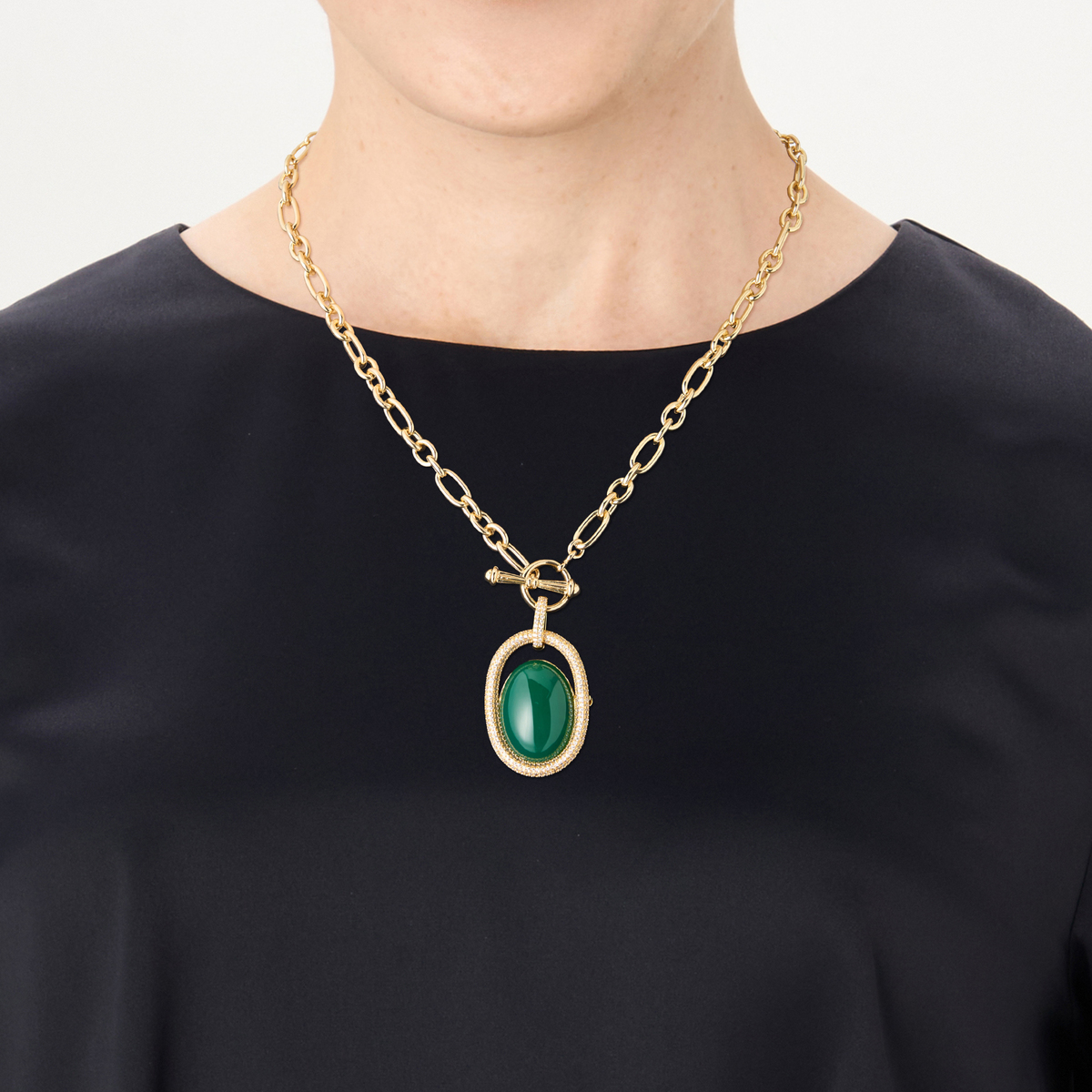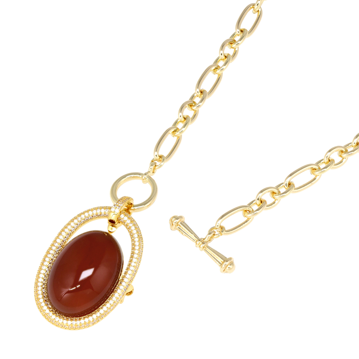 素材:<レッド> [レッドクォーツ(着色)] オーバルシェイプ 接着 1石 [キュービックジルコニア] ラウンドシェイプ 爪留め 合計約1.26ct <ブラック> [ブラックカルセドニー] オーバルシェイプ 接着 1石 [キュービックジルコニア] ラウンドシェイプ 爪留め 合計約1.26ct <グリーン> [グリーンカルセドニー] オーバルシェイプ 接着 1石 [キュービックジルコニア] ラウンドシェイプ 爪留め 合計約1.26ct 総重量(約) 31.5g 長さ(約) 45.5cm バチカンの内径(約) 6.2×4.5mm(開閉式) 幅(約) 6.1mm チェーンの形状 デザイン 留具の形状 トグル アジャスターの有無 無 チェーンの取り外し 可 ヘッドの縦×横(約) 43.5×25.0mm ブローチ時:35.5×25.0mm [地金]真鍮、合金 [メッキ] レッド、グリーン:金色メッキ ブラック:ロジウムメッキ ■風車式ブローチピン付 ■素材の大きさ・形・色合い、製品のサイズは1点1点多少異なります ■Ct数値はダイヤ換算です 【中国製】