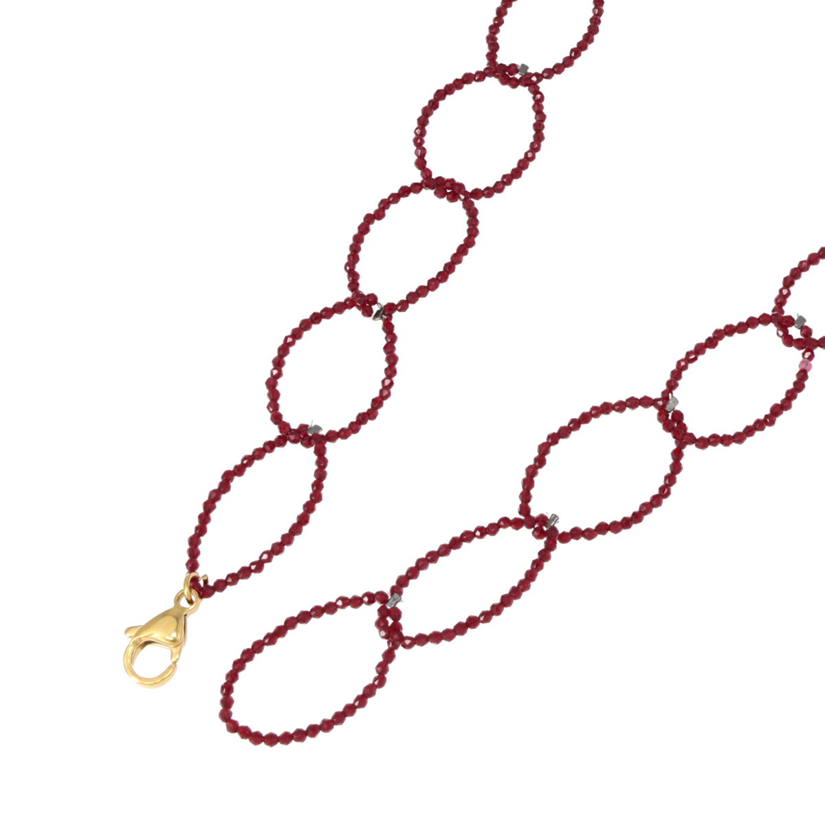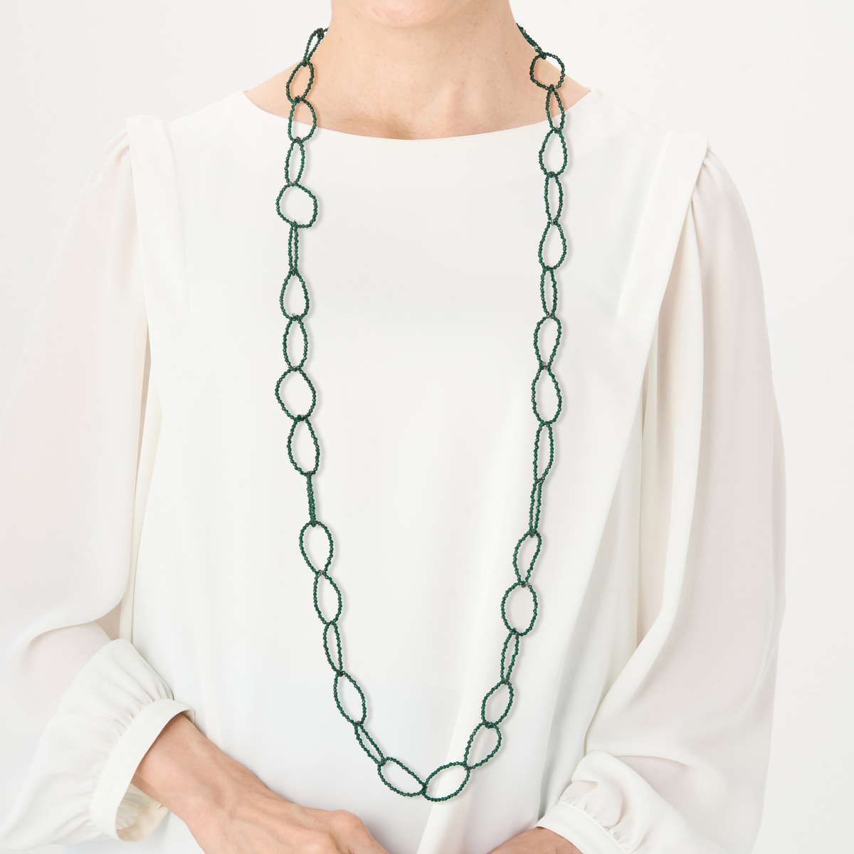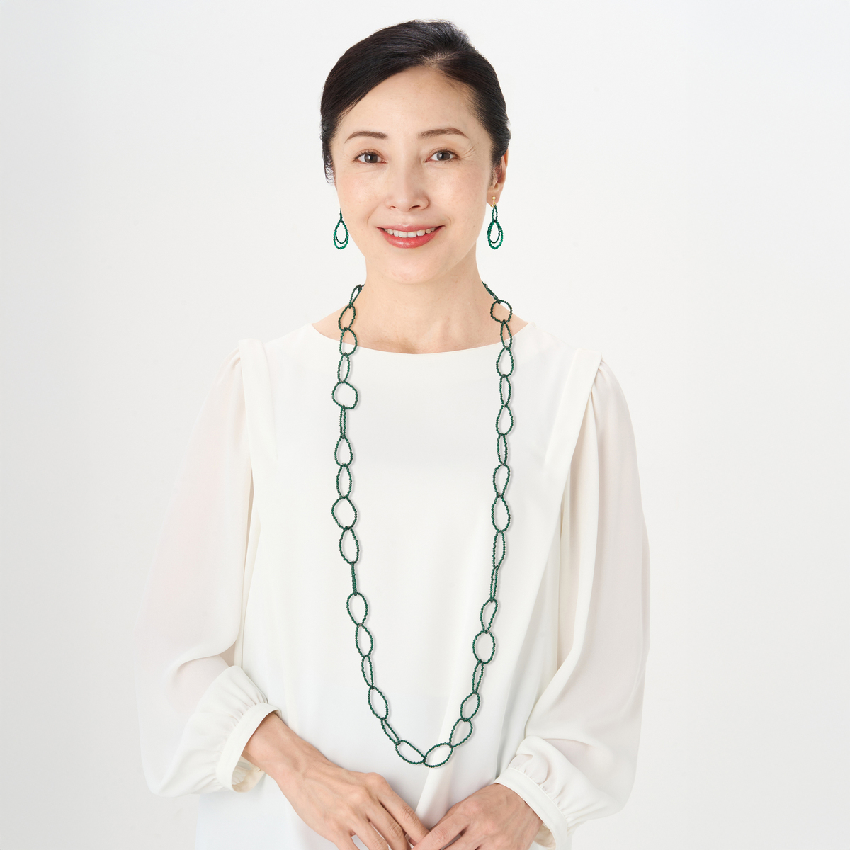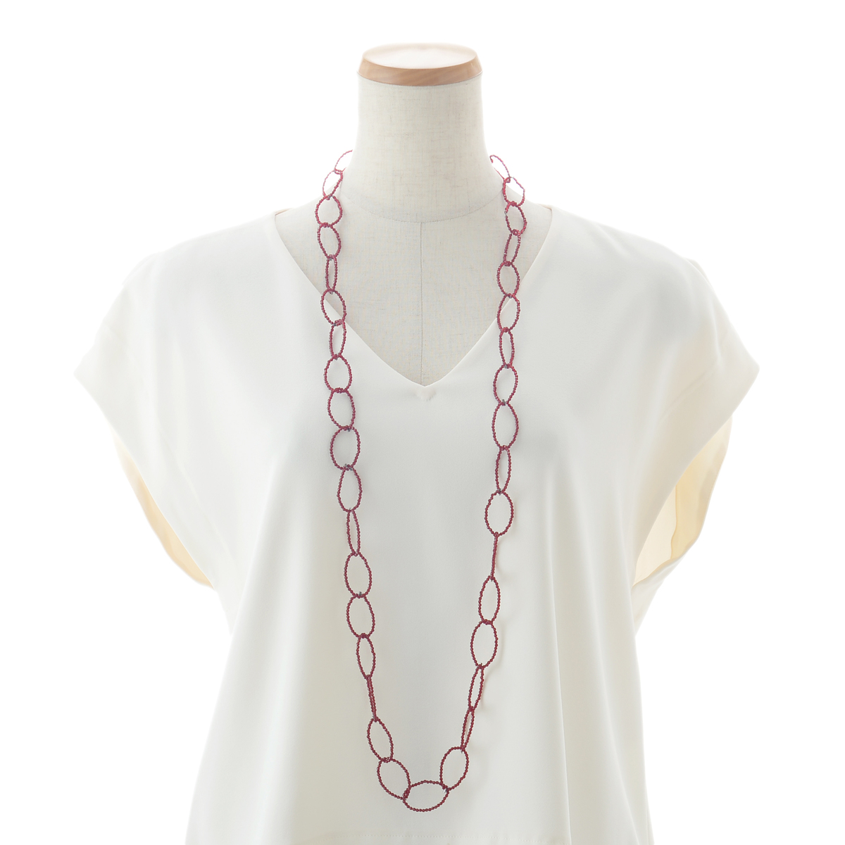 ネックレスは好きな輪の位置で留められる仕様。スタイルや気分に合わせて長さを変えて楽しめます