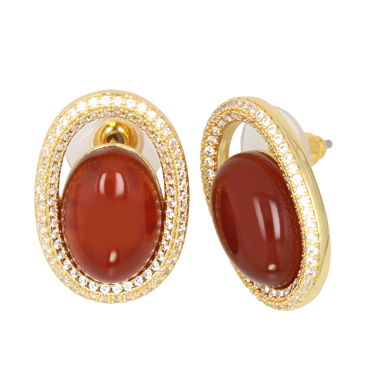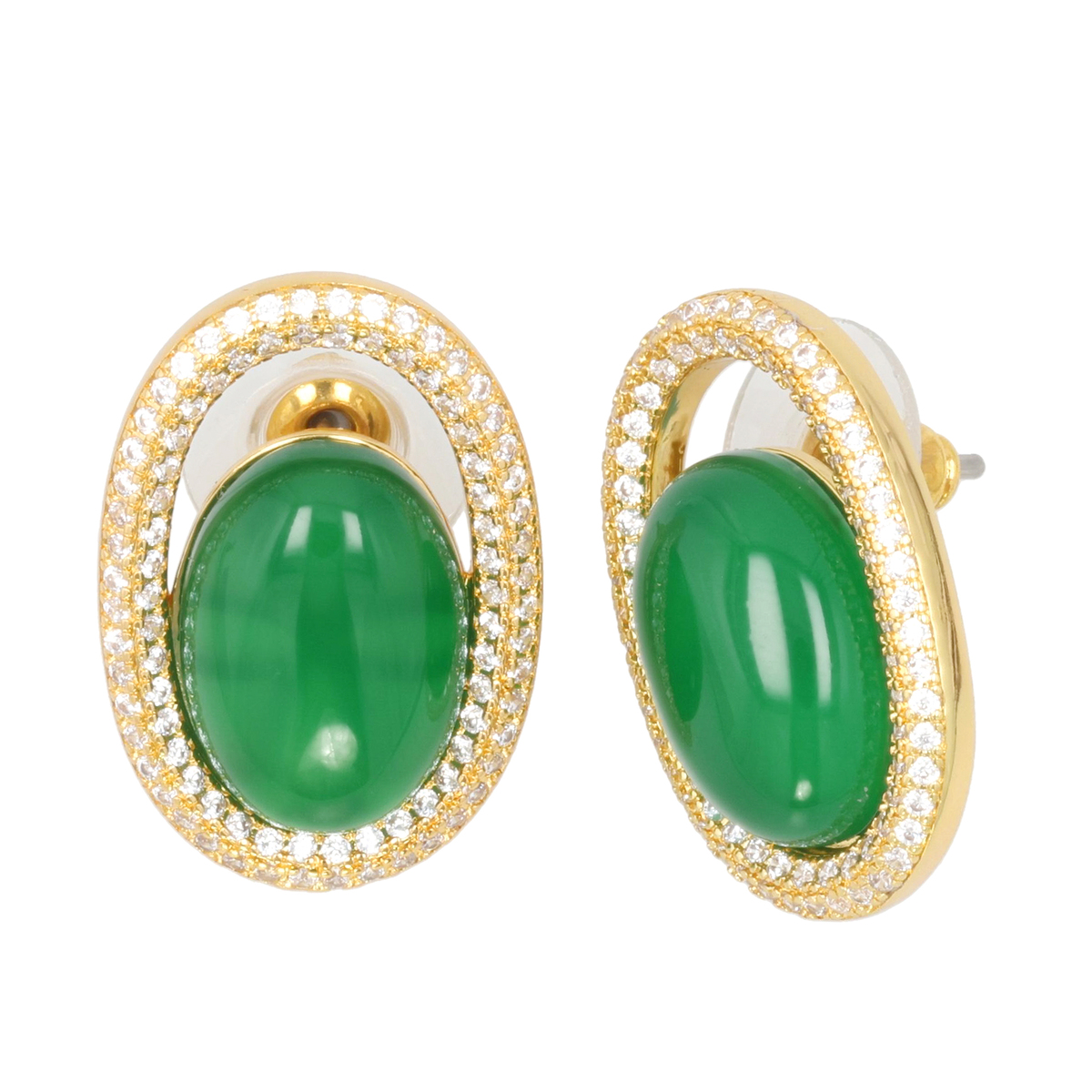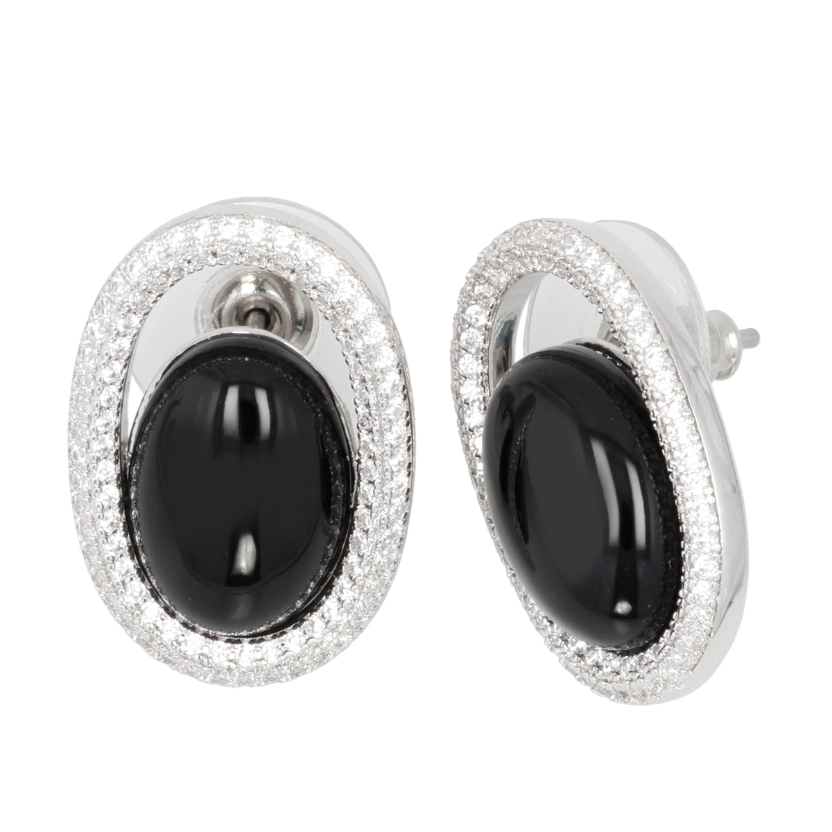 ボリューム感のある天然石を使用したイヤリングまたはピアス。周りに煌めくキュービックジルコニアをあしらい、メインの天然石を華やかに引き立てています。レッド、ブラック、グリーンの3色をご用意しました