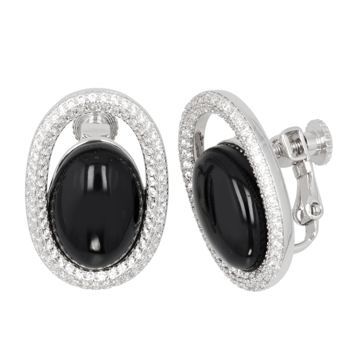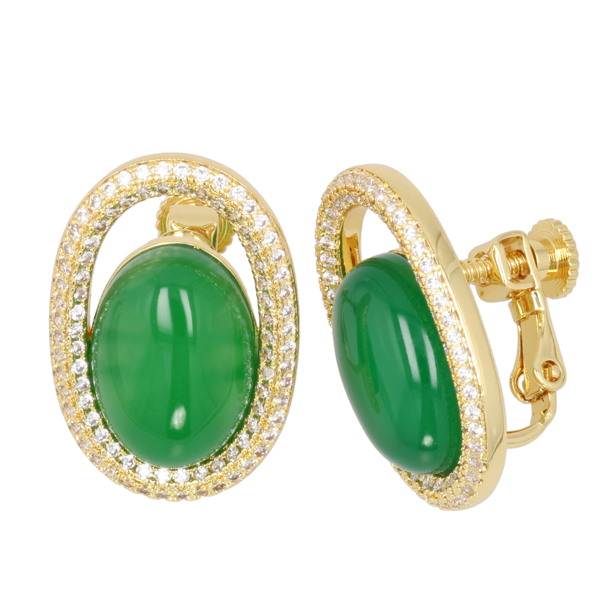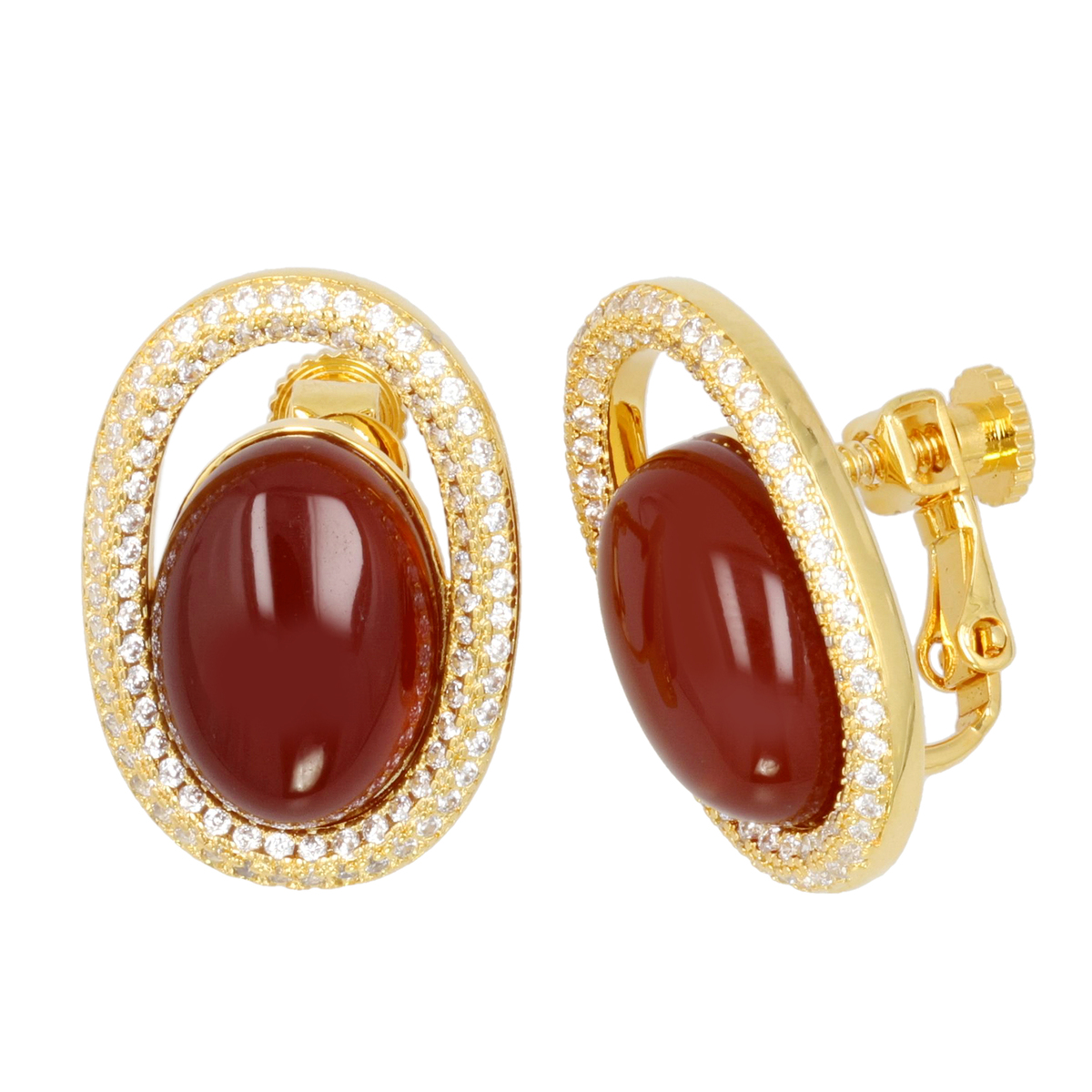 ボリューム感のある天然石を使用したイヤリングまたはピアス。周りに煌めくキュービックジルコニアをあしらい、メインの天然石を華やかに引き立てています。レッド、ブラック、グリーンの3色をご用意しました