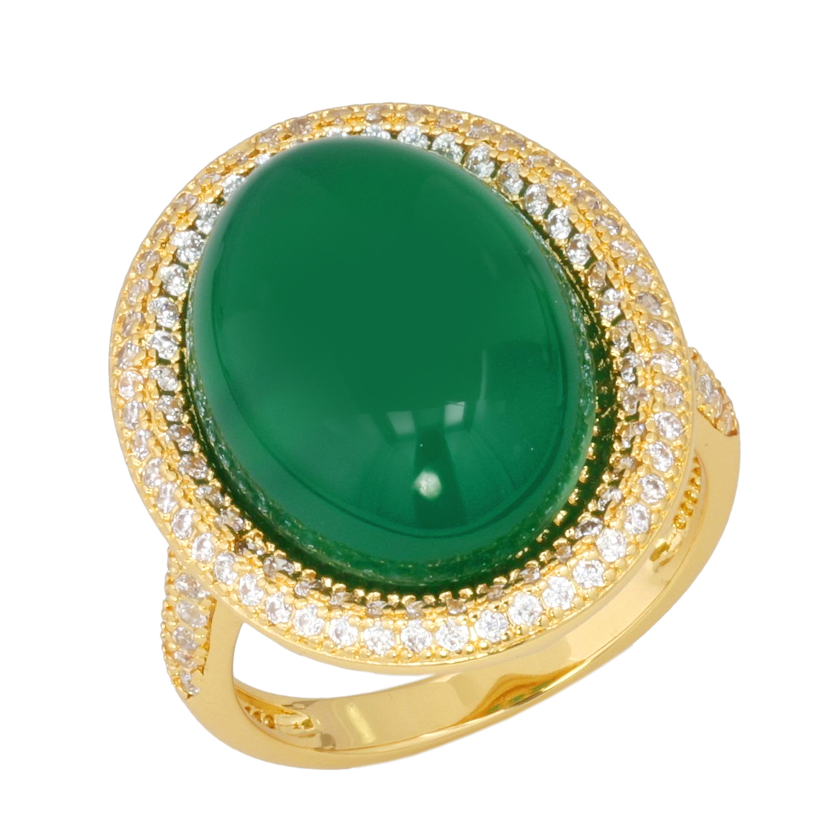 大ぶりの天然石がお手元に存在感をもたらすリング。天然石の周りにはキュービックジルコニアを施して、天然石をより際立たせるデザインに仕上げました