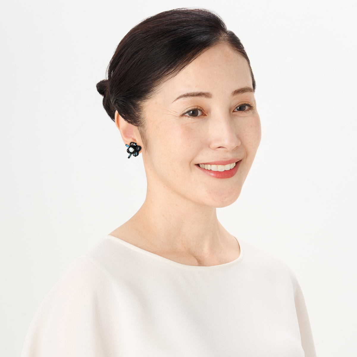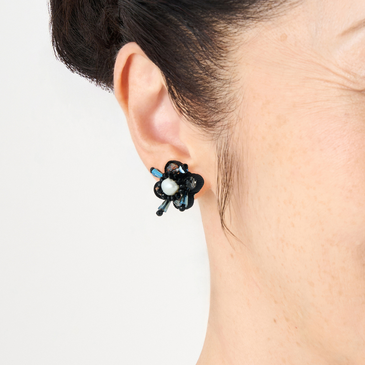 フラワーモチーフの中心に淡水パールをあしらった、可憐で上品なイヤリングまたはピアス。ほどよいボリューム感があり、お顔周りを華やかに演出します。普段使いはもちろん、特別な日の装いにもぴったりなアイテムです