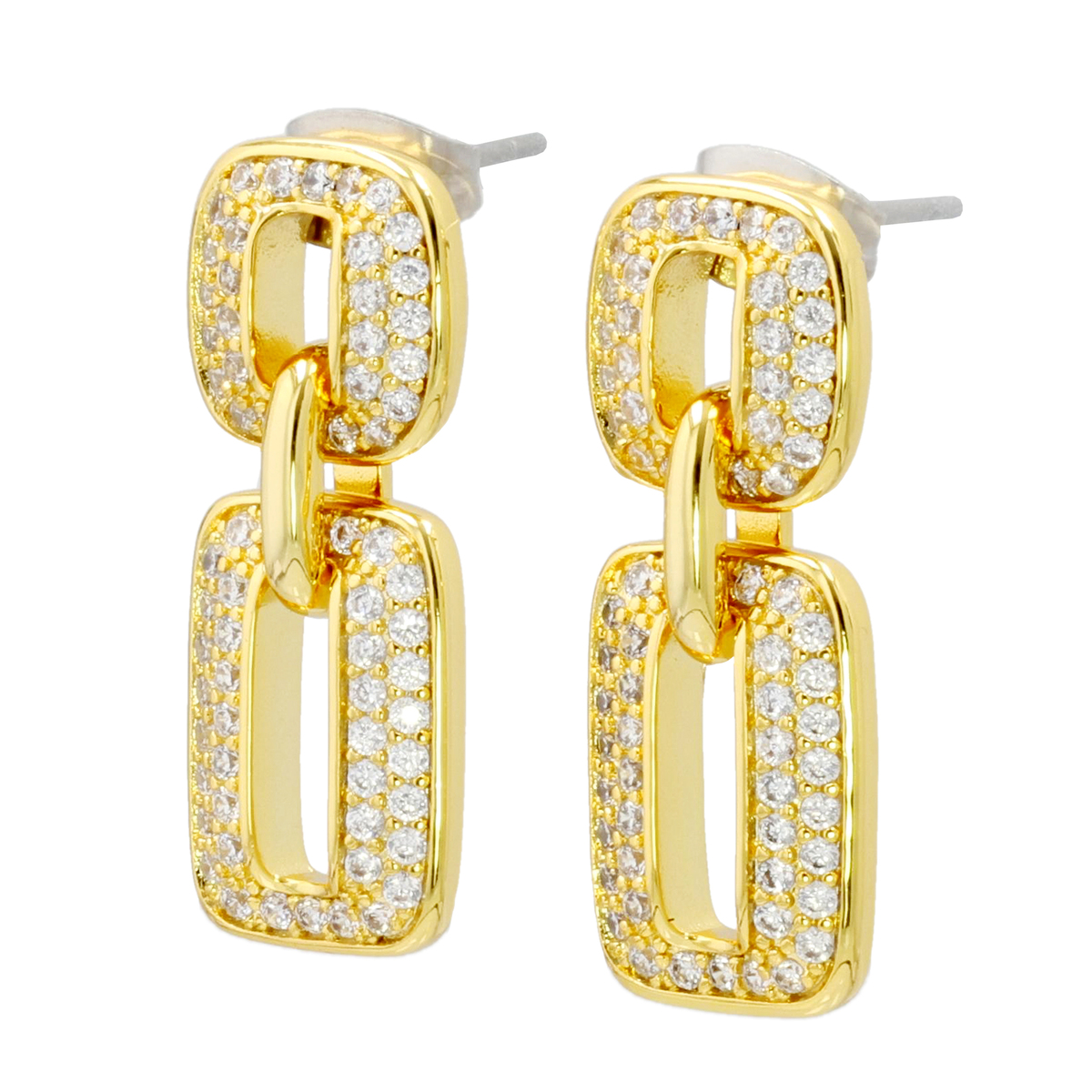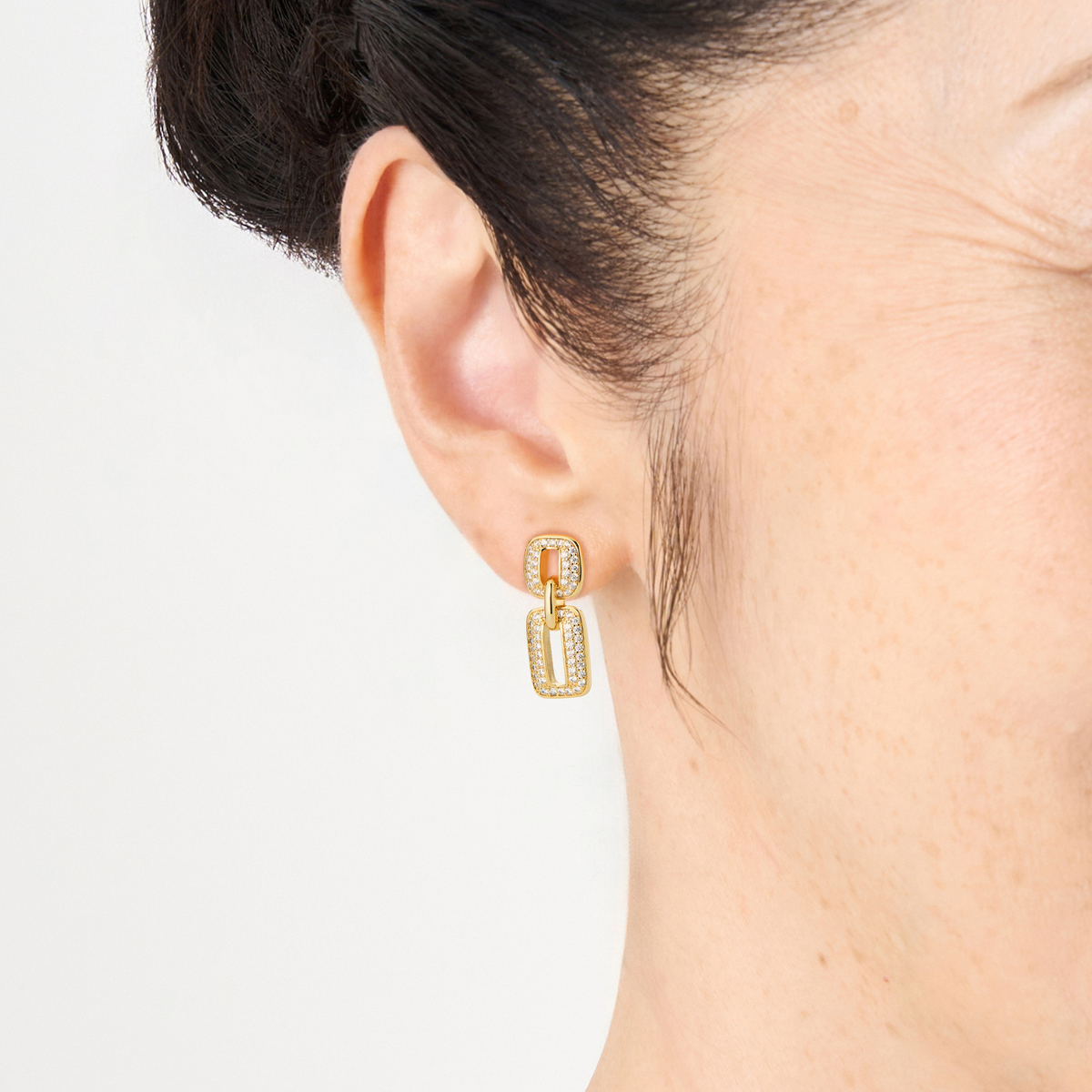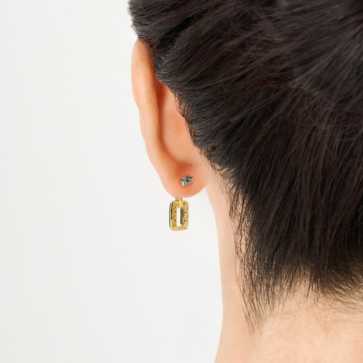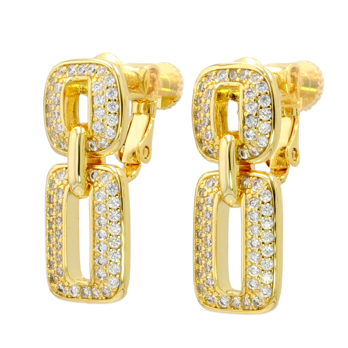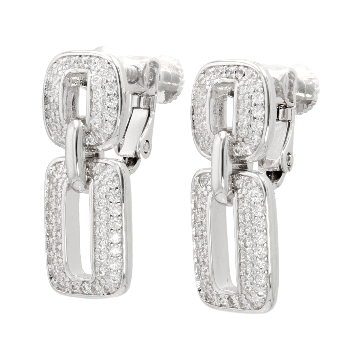 キュービックジルコニアを贅沢に使用したイヤリングまたはピアス。存在感がありながらも上品なデザインで、耳元に華やかさを与えてくれます