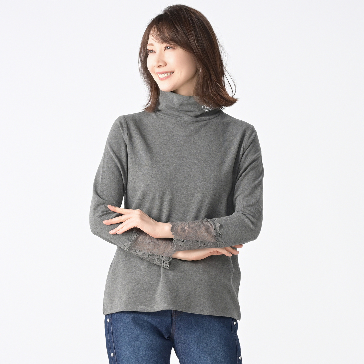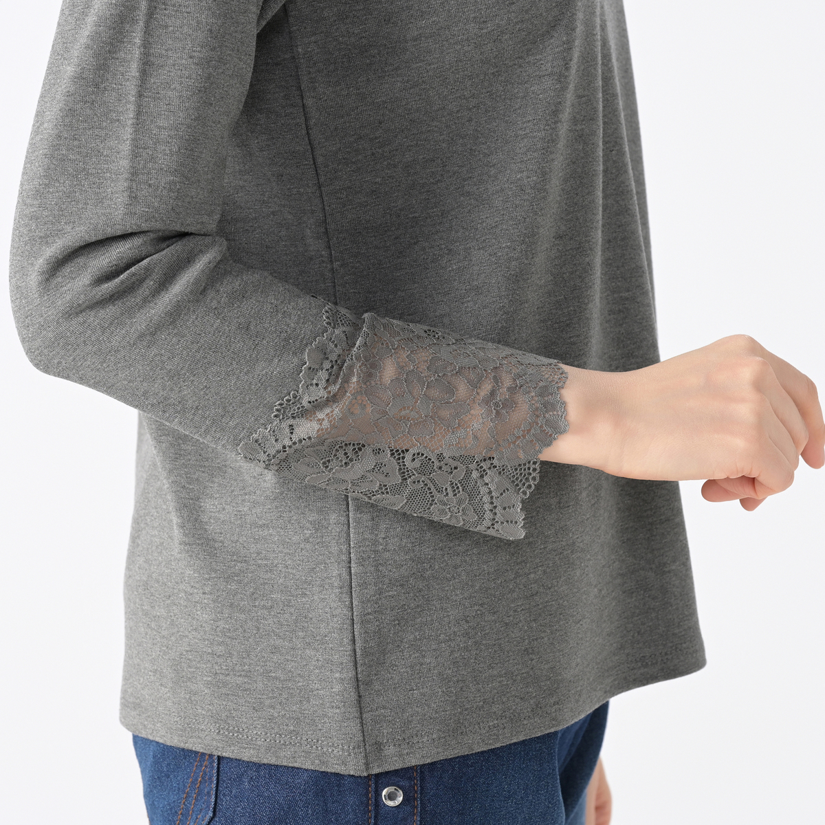 一枚着としてはもちろん、重ね着のインナーとして、袖口からレースをのぞかせたフェミニンなスタイリングも楽しめます