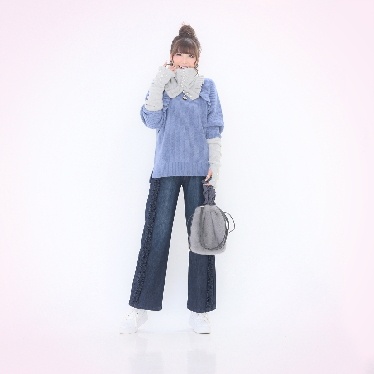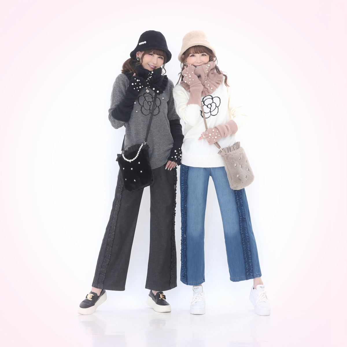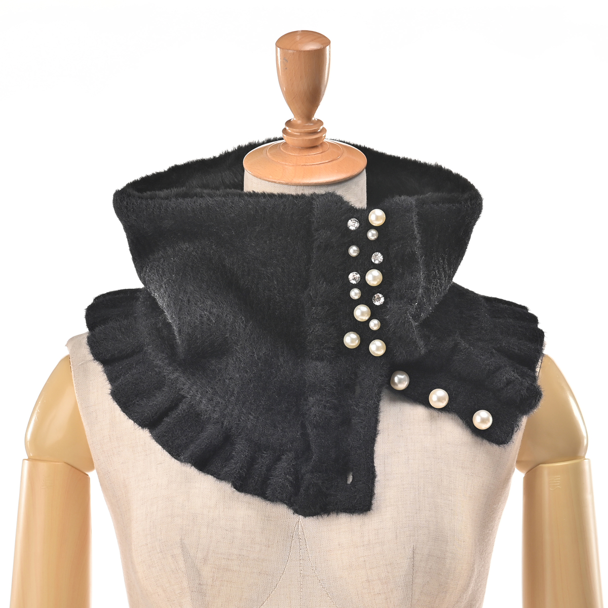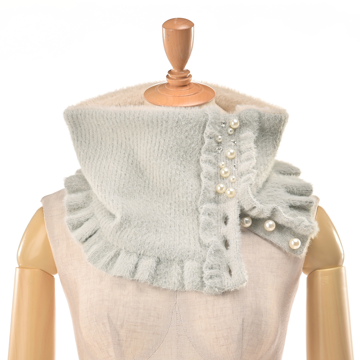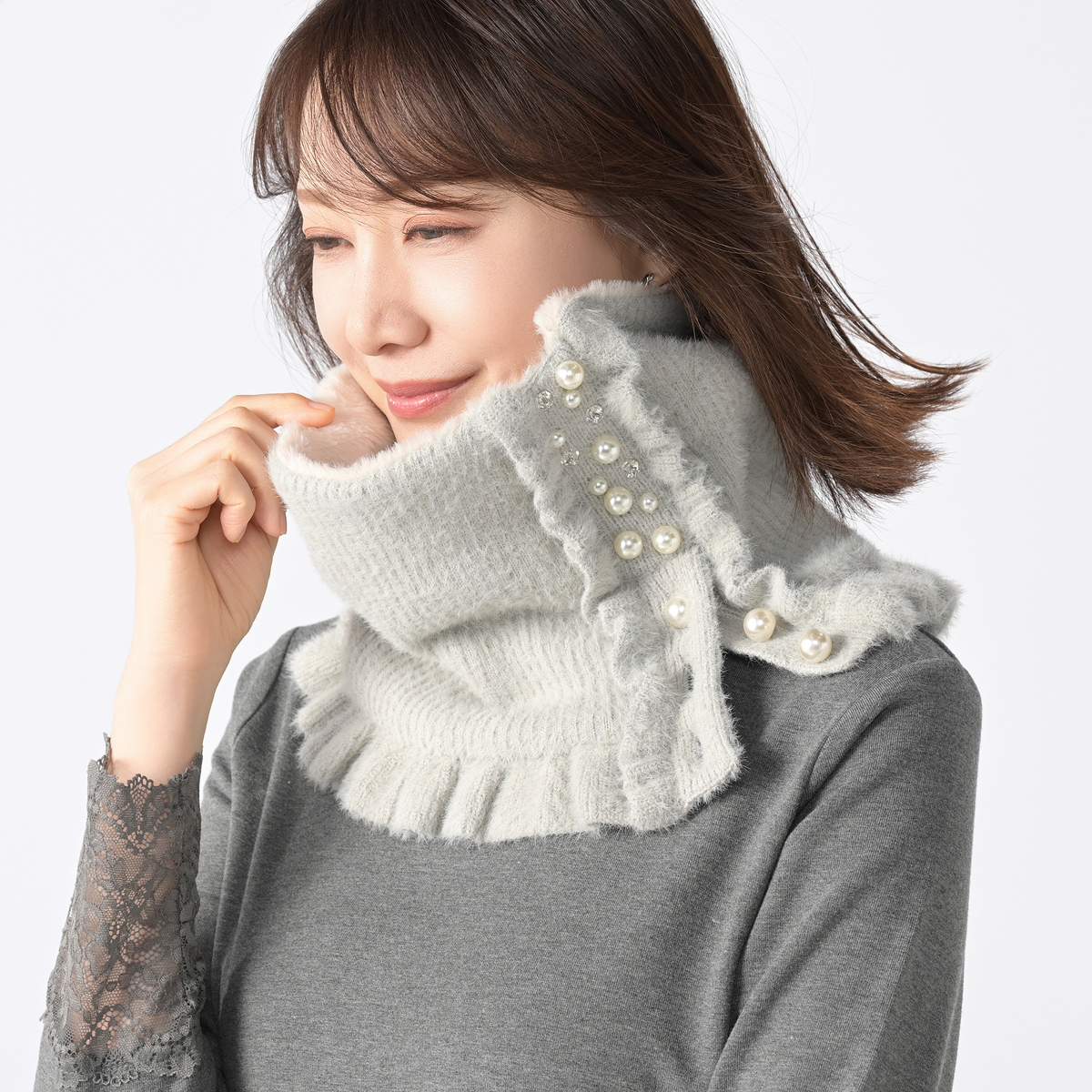 パール調ボタンが目を引く&LOVEオリジナルのネックウォーマー。さらにガラスのラインストーン、フリルデザインで大人可愛く。被るだけで首元をすっぽりと包み込み、冷たい風や寒さからしっかりガードしてくれます