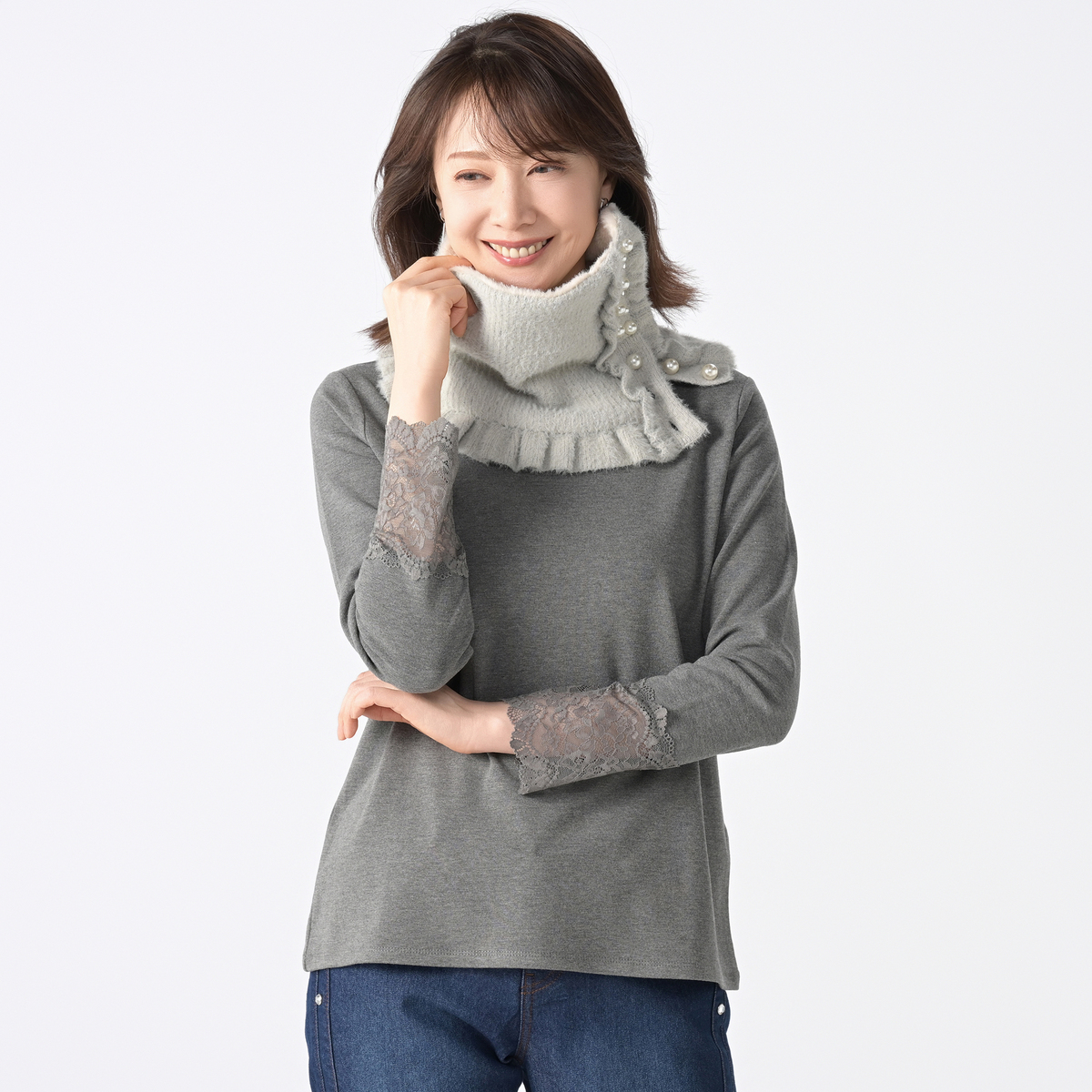 No. 749027 &LOVE 首元華やぐキラキラパール調ビジューネックウォーマー