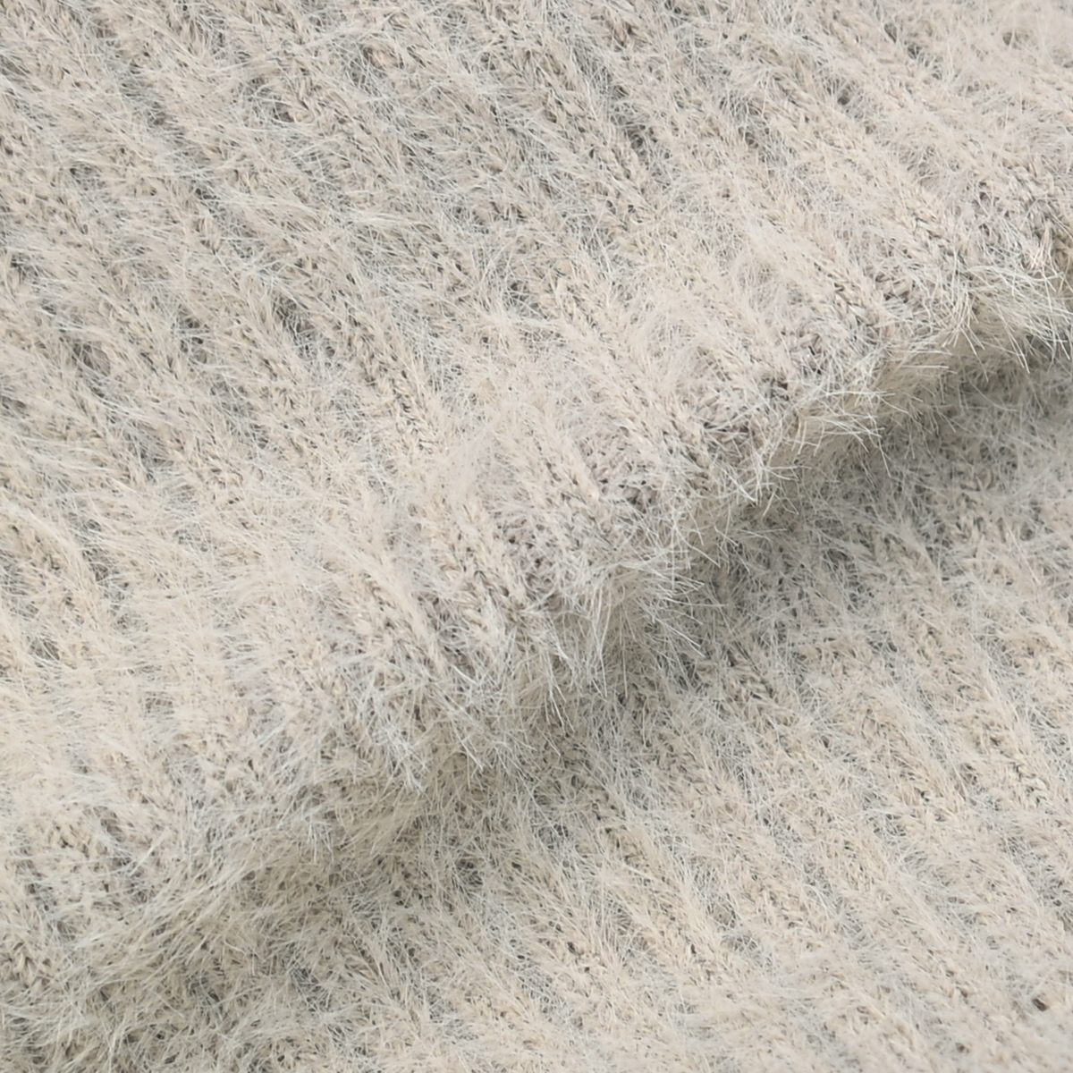 エアリーで柔らかく肌触りの良いフェザータッチ素材を使用した、ふっくらとした表面感のあるニット。きれい見えするリブニット編みで程よいサイズ感でお作りしました