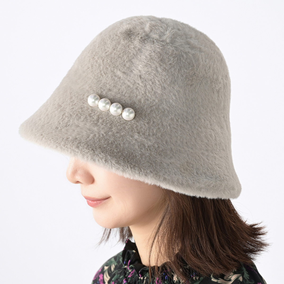 No. 749030 &LOVE 幸せパール調ビジューのエコファーバケットハット