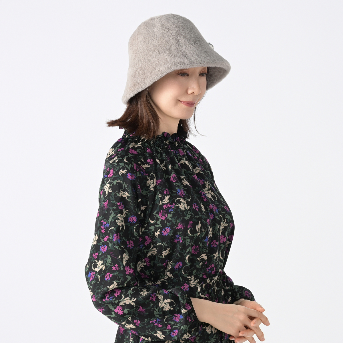 もっちりとした質感のエコファー素材で仕立てたバケットハットです。すっぽりと頭を包み込むシルエットで、コーディネートに優しい雰囲気を添えます