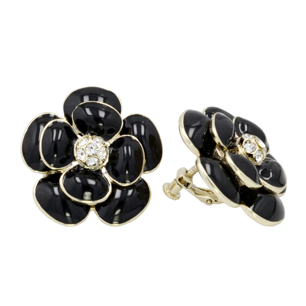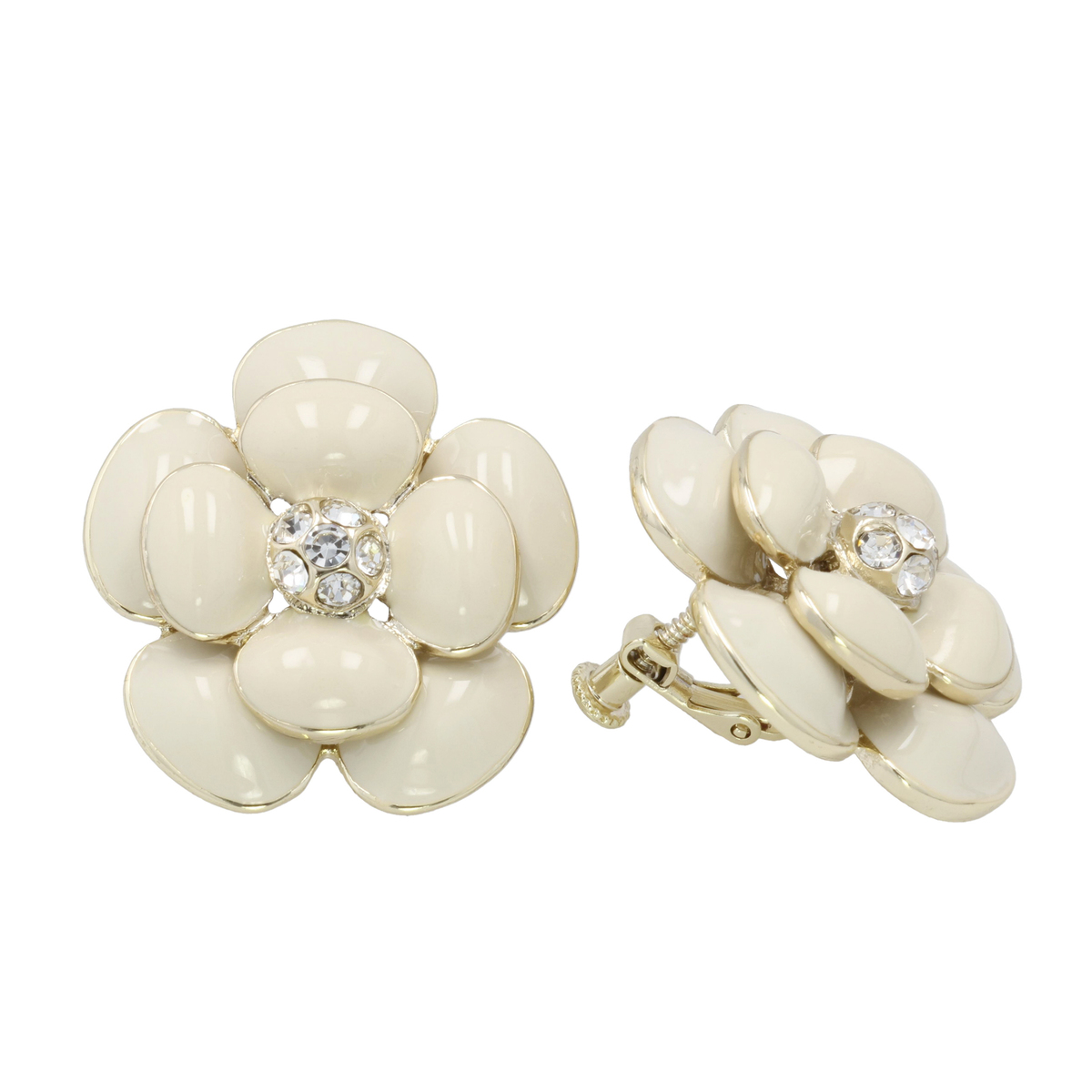 二層構造で仕上げたカメリアモチーフが存在感を放つイヤリング。メタル素材にぷっくりとしたエポキシ塗料を重ね、奥行きのあるデザインに。大きめのデザインで顔周りを華やかに演出します