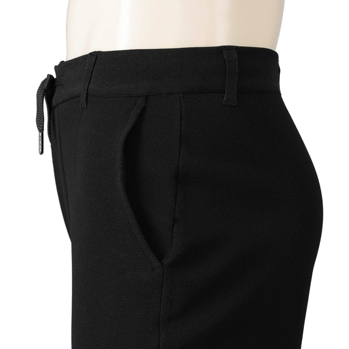 スパン調ポリエステル糸を使い、ふくらみがありながらも軽い着心地を実現。ストレッチ性のあるニットジャージ素材で動きやすく、ウエストはゴム入りのドローコード仕様で着脱も簡単です。洗濯ネットを使えば洗濯機洗いも可能で、扱いやすさも備えています