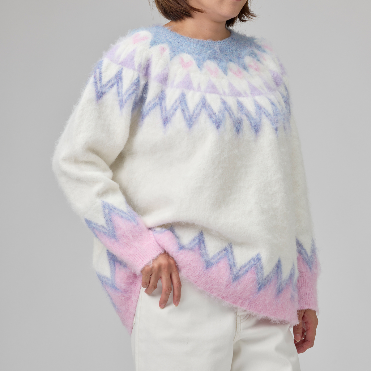 オリジナルのフェアアイル柄*を施したニットプルオーバー。ウール混の素材を選び、暖かさにこだわりました