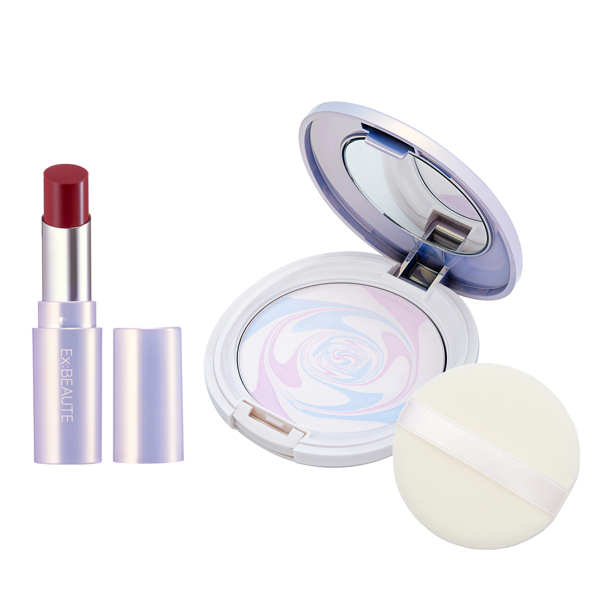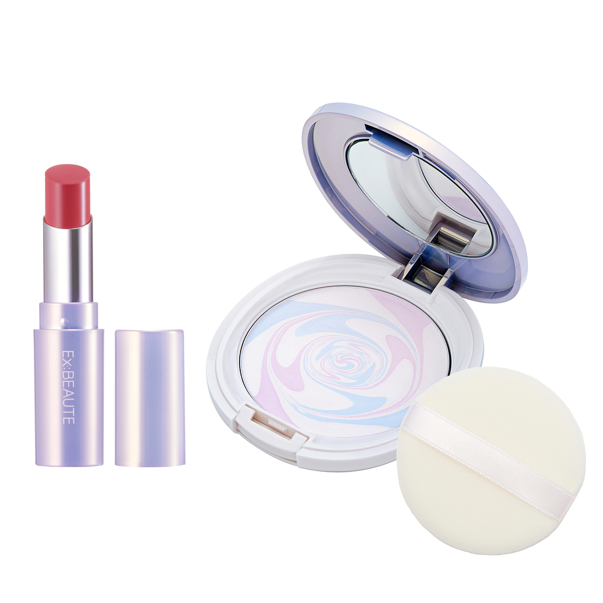 [セット内容] ・エクスボーテ オーロラブレストパウダー(パフ付き) 8g ・エクスボーテ オーロラリップティント [使用方法] <パウダー> 化粧直しやベースメイクの仕上げにお使いください。顔の中心から外側に向かって軽く押さえるように少しずつなじませます <リップティント> 直接、またはお手持ちのリップブラシに取り、唇に塗ってください [注意事項] <共通> ※化粧品がお肌に合わないとき即ち次のような場合には、ご使用をおやめください。そのまま化粧品類のご使用を続けますと、症状を悪化させることがございますので、皮膚科専門医等にご相談ください 1.ご使用中、赤み、はれ、かゆみ、刺激、色抜け(白斑等)や黒ずみ等の異常があらわれた場合 2.ご使用したお肌に、直射日光があたって上記のような異常があらわれた場合 ※傷や湿疹、はれもの等の異常のあるところにはお使いにならないでください ※ご使用後は必ずしっかりとフタをしめてください ※乳幼児の手の届かないところに保管してください ※極端に高温、または低温の場所、直射日光のあたる場所には保管しないでください <パウダー> ※お肌に異常が生じていないかよく注意してご使用ください ※目に入らないように注意してください。目に入ったときは、こすらずすぐに洗い流してください。目に違和感が残る場合は眼科医にご相談ください ※衣服についてしまったときは、中性洗剤等ですぐに洗い流してください ※パフは清潔な状態でご使用ください。汚れた場合は、中性洗剤を薄めたぬるま湯で軽く押し洗いし、十分すすいだ後、水気をきり、日かげでよく乾かしてください ※保管の際は、パフはパウダーの上に直接のせず、透明シーラーの上に置いてください <リップティント> ※落下等の衝撃を与えたり、リップを長く繰り出して塗布したりすると折れの原因になることがあります。取り扱いにはご注意ください ※温度や湿度の影響で、リップ表面に油分がにじんだり、部分的に濃い色に変化する場合がありますが、品質には問題ございません ※ご使用後は、ティッシュペーパー等で使用面を拭いてから繰り下げてキャップを閉めてください 【日本製】 [成分] ■パウダー:タルク、合成フルオロフロゴパイト、ジメチコン、シリカ、ダイマージリノール酸(フィトステリル/イソステアリル/セチル/ステアリル/ベヘニル)、スクワラン、リンゴ酸ジイソステアリル、アルガニアスピノサ核油、ヒアルロン酸Na、セスキイソステアリン酸ソルビタン、ラウロイルリシン、デヒドロ酢酸Na、クロルフェネシン、トコフェロール、ハイドロゲンジメチコン、マイカ、酸化チタン、 ホウケイ酸(Ca/Al)、マンガンバイオレット、グンジョウ、カオリン、酸化スズ、酸化鉄、水酸化Al ■リップティント:【共通】 ジフェニルジメチコン、リンゴ酸ジイソステアリル、ジフェニルシロキシフェニルトリメチコン、ペンタイソステアリン酸ジペンタエリスリチル、PEG-12ジメチコン、合成ワックス、トリ(カプリル酸/カプリン酸)グリセリル、トリエチルヘキサノイン、ラウロイルグルタミン酸ジ(フィトステリル/オクチルドデシル)、トリイソステアリン酸ポリグリセリルー2、アルガニアスピノサ核油、シア脂、マカデミア種子油、ウラボシヤハズエキス、マイクロクリスタリンワックス、トコフェロール、(+/-)酸化鉄、酸化チタン、ホウケイ酸(Ca/AI)、 赤201、赤202、トリエトキシカプリリルシラン、水酸化AI、赤223、黄4
