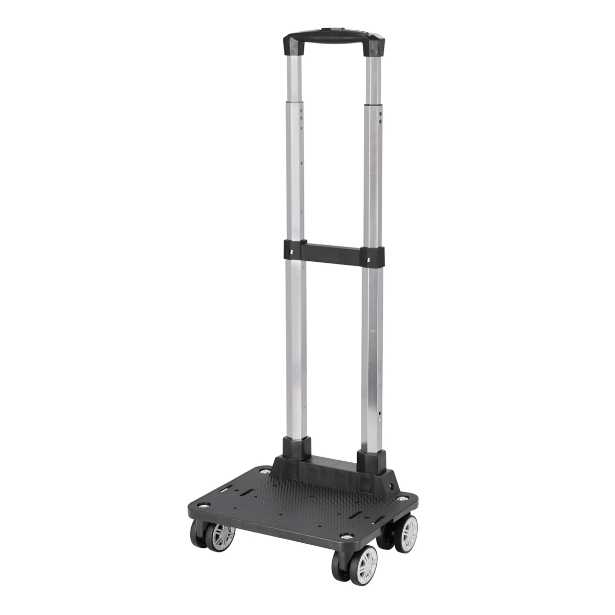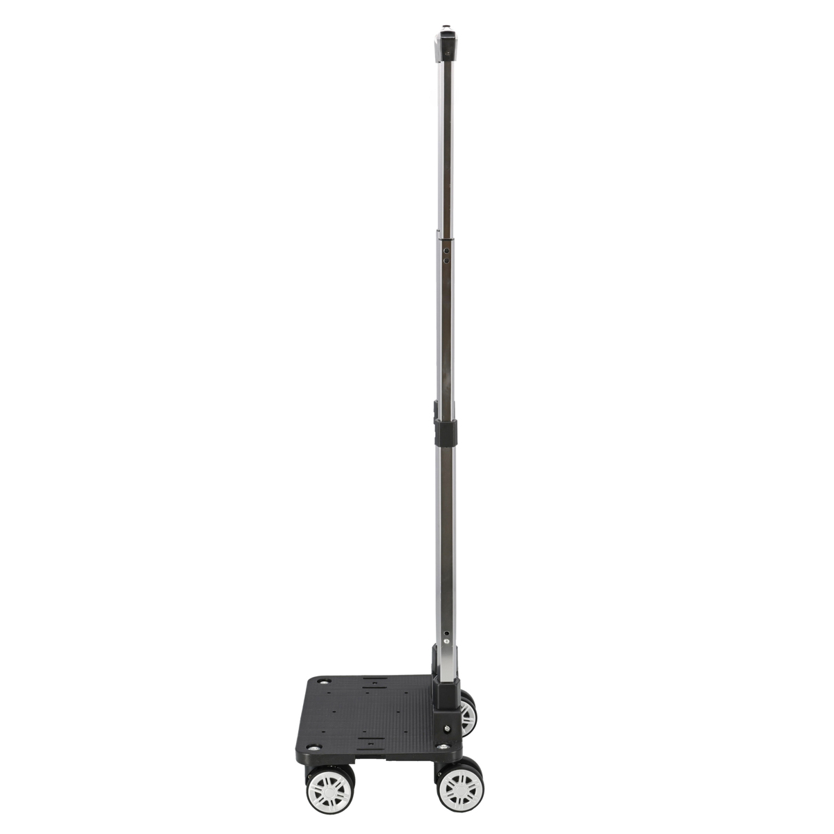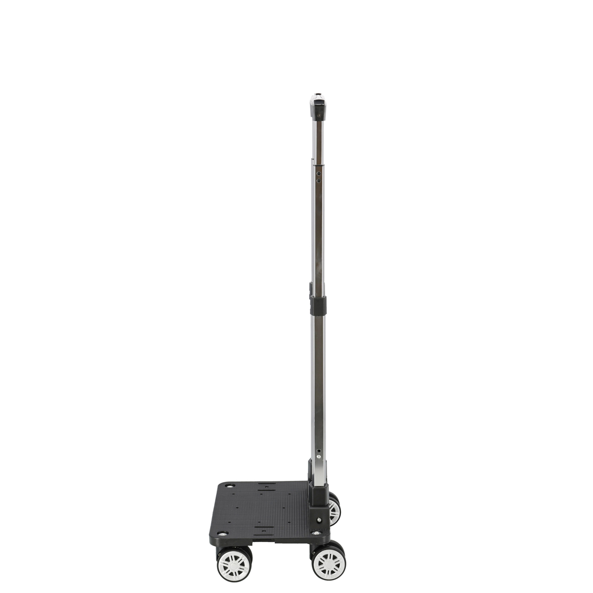 [サイズ(約)] 本体:幅29.5×奥行21×高さ53〜95cm 収納サイズ:幅29.5×長さ46×高さ12cm [重量] 1170g [材質] ハンドル(持ち手):ABS樹脂 フレーム:アルミ芯 タイヤ:TPE(タイヤ)、ポリプロピレン(ホイール) 中板・底:ポリプロピレン 【中国製】