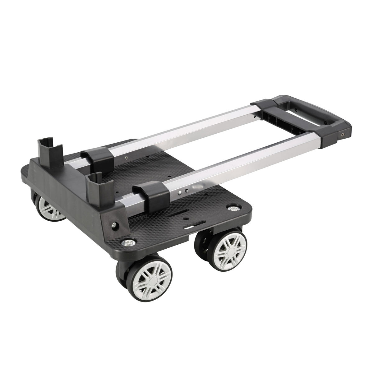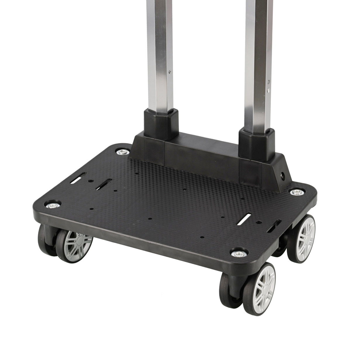 4輪のキャスターで身体の横で運べる仕様。カートのコマ(車輪)は360度なめらかな回転でスムーズに走行できます