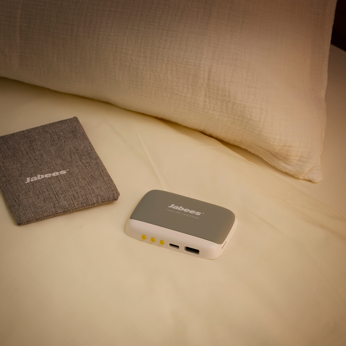 枕を通して聞くことができるスピーカー*。スマートフォンとのBluetooth接続や、ネイチャーサウンド収録済みのマイクロSDカード付属で、内蔵のスピーカーを通して骨伝導で聞くことができます