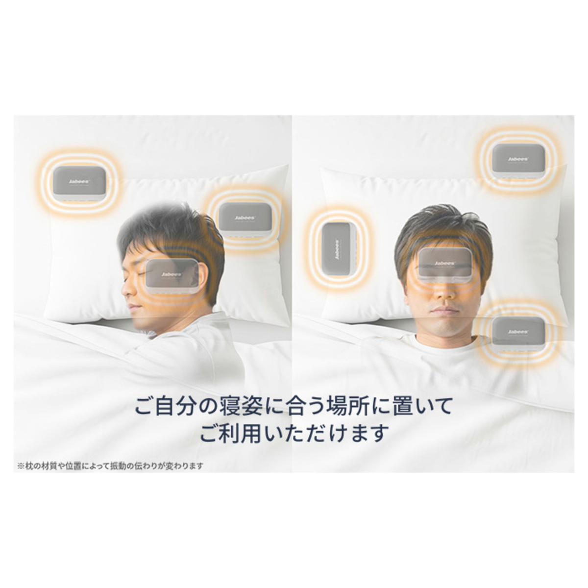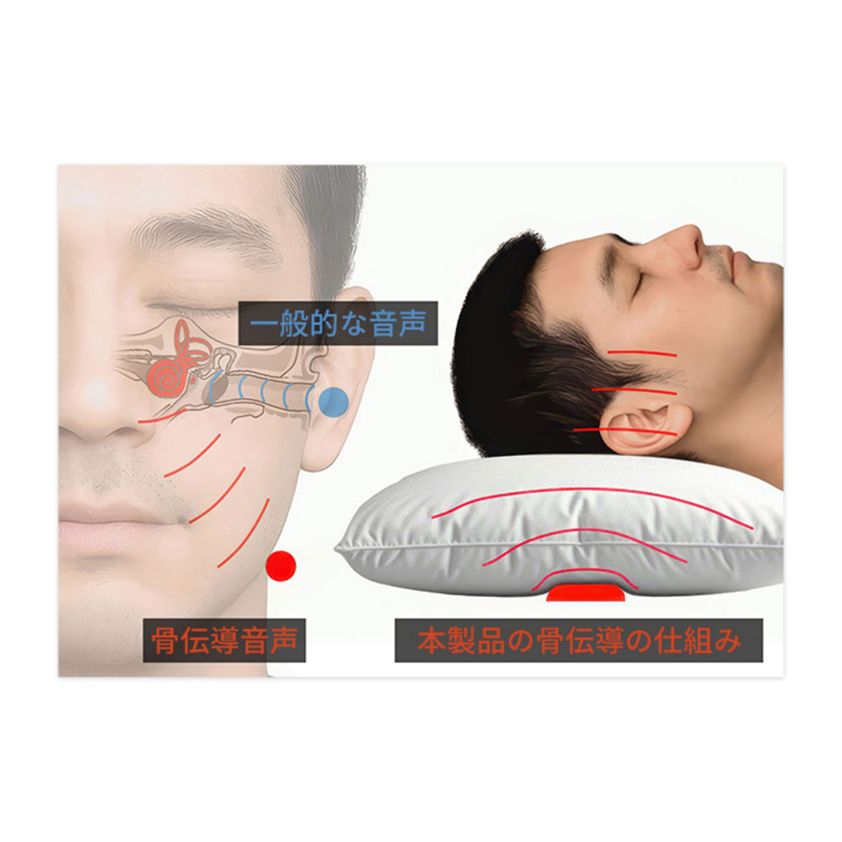 *枕の材質や位置によって振動の伝わりが変わります。置き場所により聞こえ方は変わりますので、聞こえにくい場合は場所を変えてお試しください。枕素材が振動を吸収するような素材、高密度で振動しない素材の場合は骨にまで振動が伝わらず聞こえにくくなります