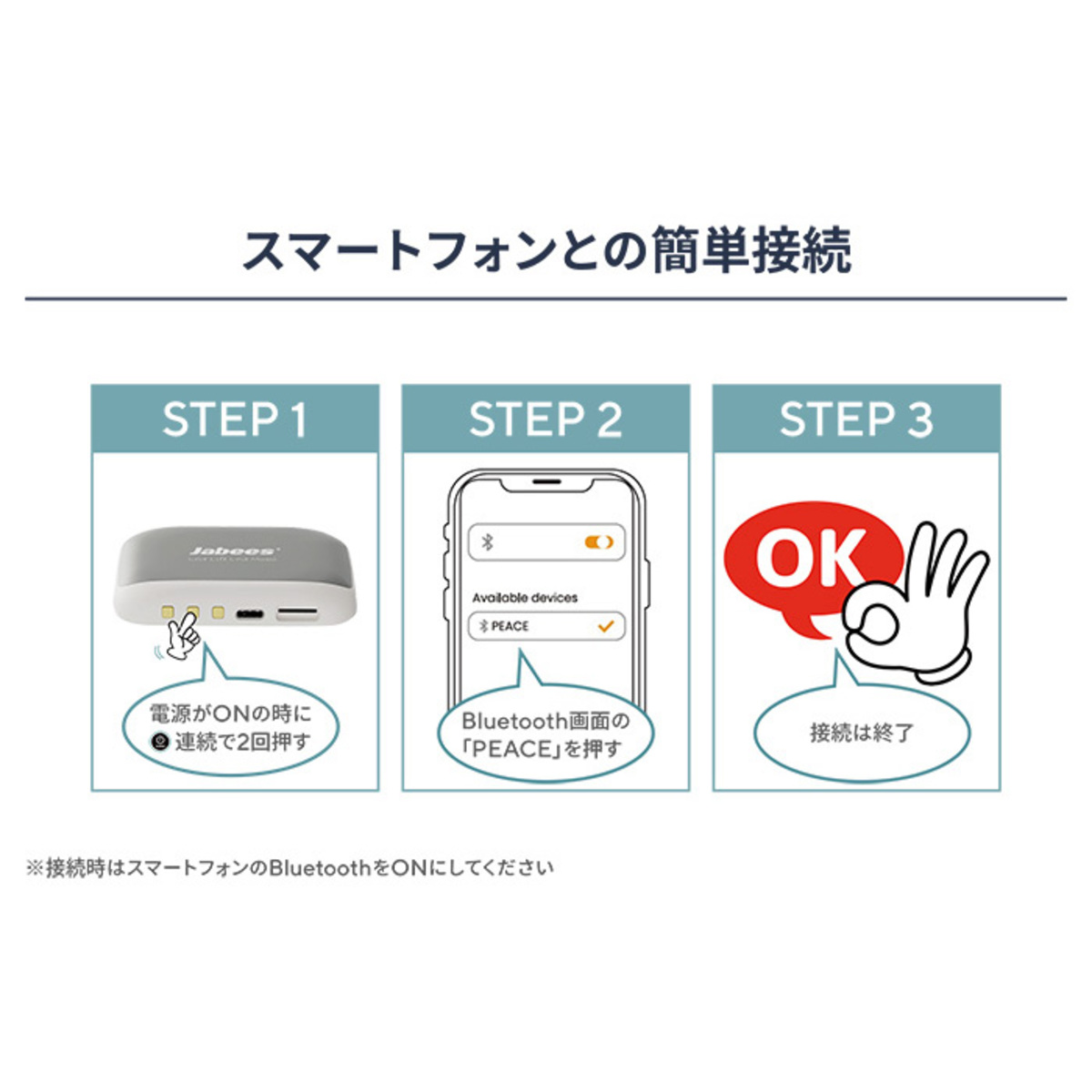 スピーカー本体の電源が入っている状態で電源ボタンを2回押すとBluetoothモードに。プラスボタンを3クリックで30分、1時間、2時間、タイマーオフ(連続再生)のタイマー設定も可能です