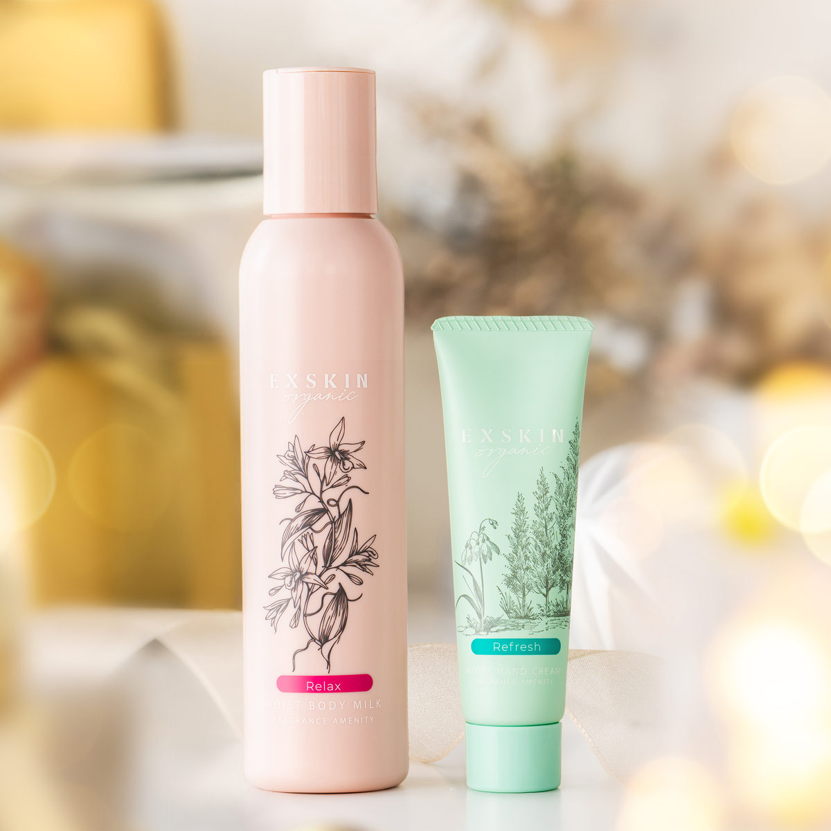 [商品内容] ・エクスキンオーガニック モイストボディミルク 150g ・エクスキンオーガニック モイストハンドクリーム 30g [使用方法] <ボディミルク> 適量を手にとり、全身によくのばしてやさしくマッサージするようになじませます <ハンドクリーム> 適量を手にとり、手や指先になじませます [注意事項] <共通> ※お肌に異常が生じていないかよく注意してご使用ください ※ご使用中、または使用後に直射日光があたって赤み、はれ、かゆみ、刺激、色抜け(白斑等)や黒ずみ等の異常があらわれた場合はご使用をおやめください ※そのままご使用を続けますと、症状を悪化させることがございますので、皮膚科専門医等にご相談ください ※傷や湿疹、はれもの等の異常のあるところにはお使いにならないでください ※ご使用後は必ずしっかりとフタをしめてください ※乳幼児の手の届かないところに保管してください ※極端に高温、または低温の場所、直射日光のあたる場所には保管しないでください <ボディミルク> ※手に取った化粧品は、容器に戻さないようにしてください ※衣服についてしまったときは、中性洗剤等ですぐに洗い流してください 【日本製】 [成分] ■ボディミルク:水、オリーブ果実油、プロパンジオール、グリセリン、ペンチレングリコール、エチルヘキサン酸セチル、PEG-32、グリコシルトレハロース、シア脂、コメヌカエキス、ブドウ果実エキス、ホホバ種子油、グレープフルーツ種子エキス、加水分解水添デンプン、 ステアリン酸グリセリル、ステアリン酸PEG-75、ポリソルベート80、ベヘニルアルコール、BG、キサンタンガム、カルボマー、アルギニン、クエン酸Na、トコフェロール、フェノキシエタノール、香料 ■ハンドクリーム:水、グリセリン、スクワラン、シア脂、ペンチレングリコール、PPG-20メチルグルコース、コメヌカエキス、ブドウ果実エキス、ヒアルロン酸Na、グリコシルトレハロース、加水分解水添デンプン、ポリクオタニウム-51、エチルヘキシルグリセリン、ポリソルベート80、BG、(アクリレーツ/アクリル酸アルキル(C10-30)) クロスポリマー、クエン酸、水酸化K、トコフェロール、EDTA-4Na、フェノキシエタノール、香料