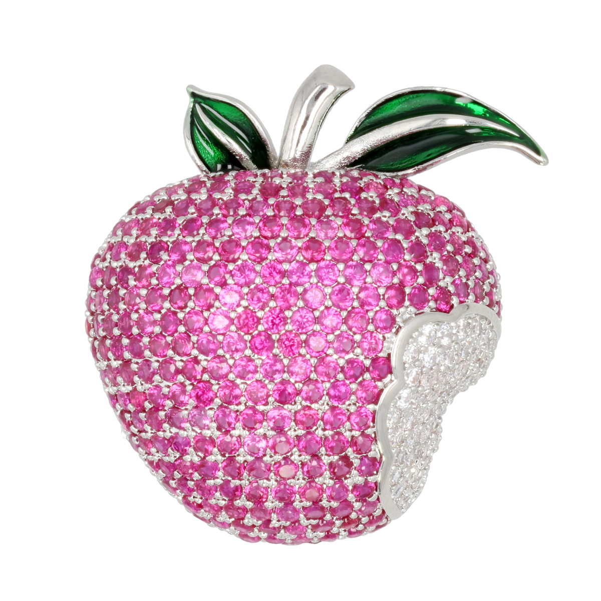 一口かじられたリンゴをモチーフにしたブローチ。果実の魅力とキュービックジルコニアの贅沢さを融合させた、まるで”アート”とも呼べるような逸品です。ブローチには合計270石以上のキュービックジルコニアを使用しています
