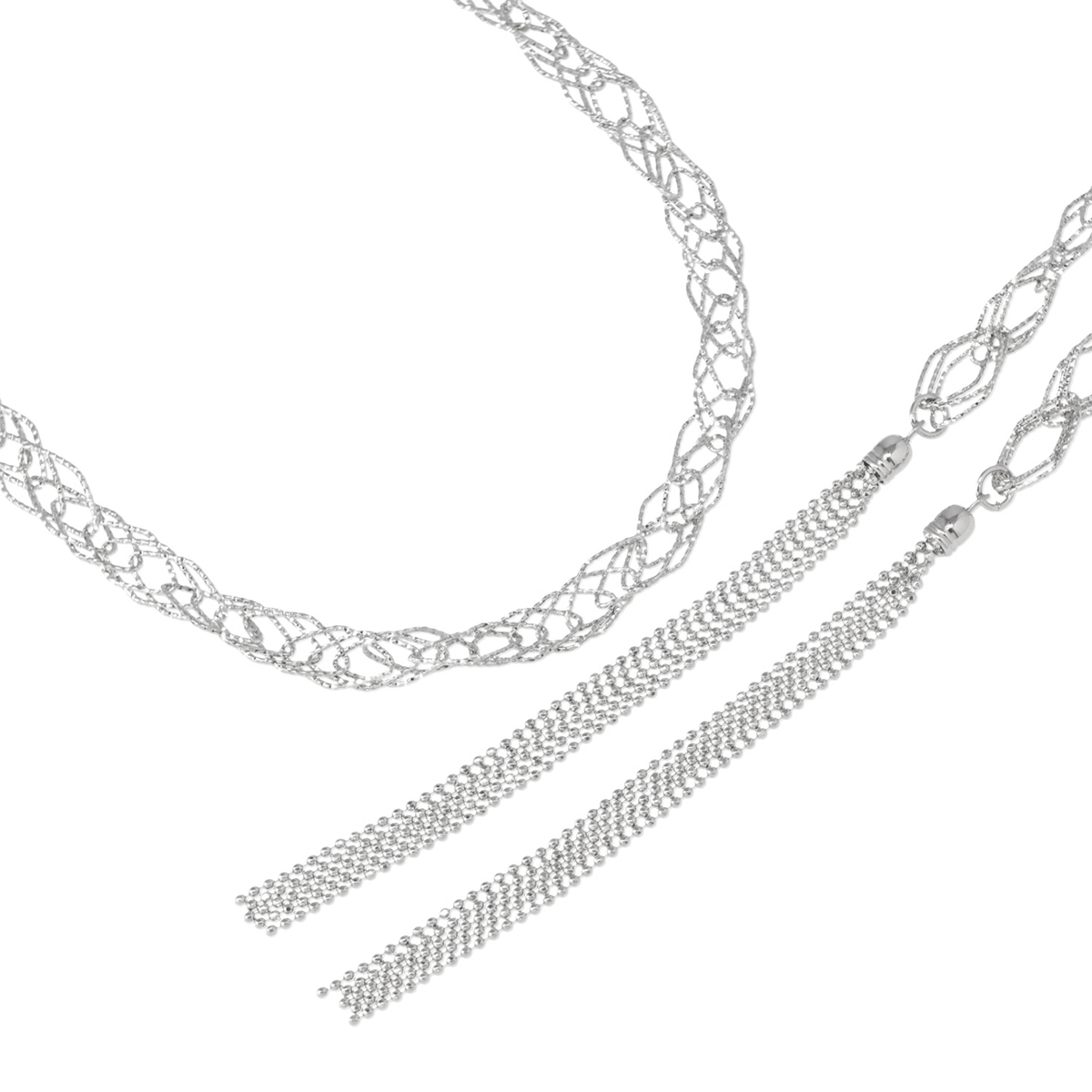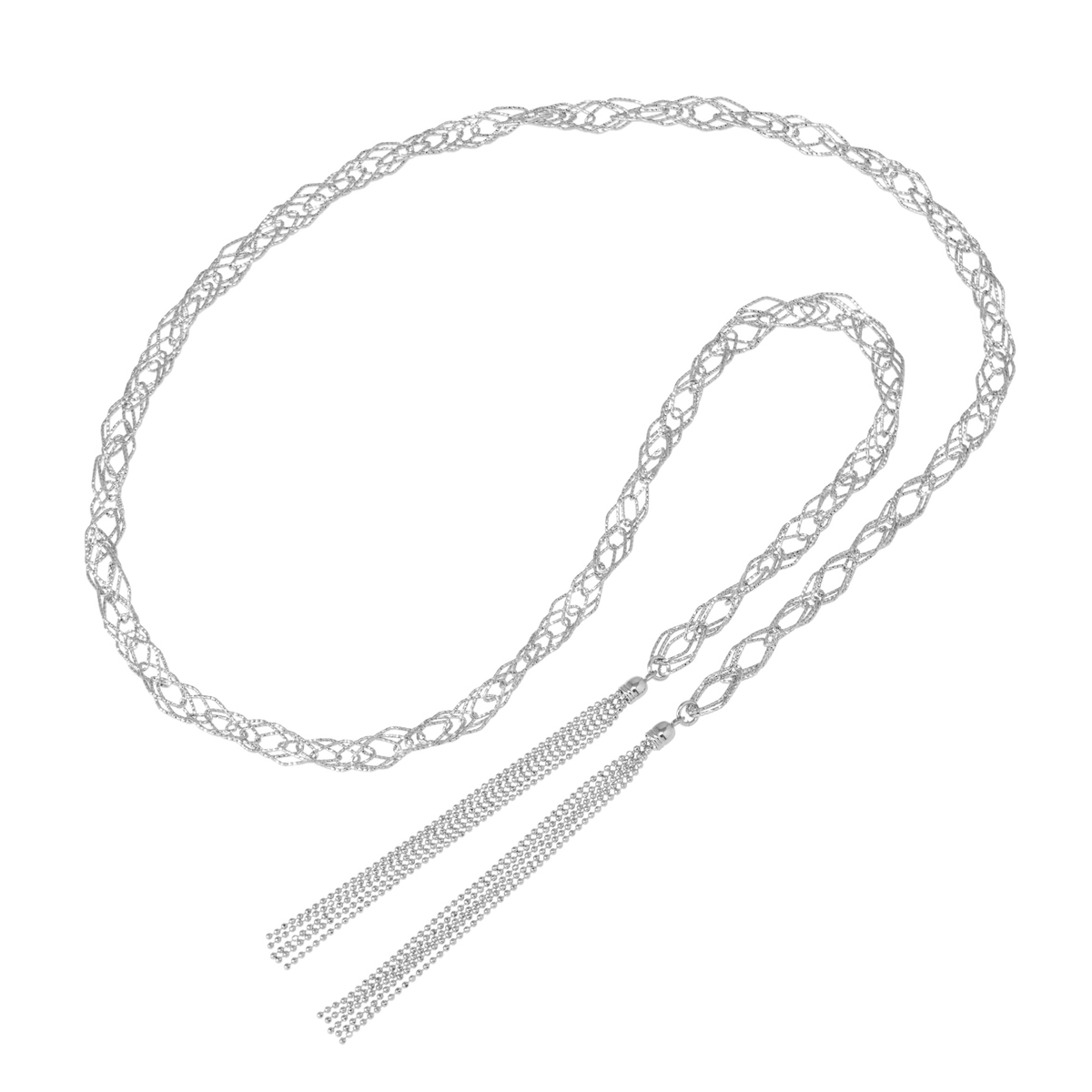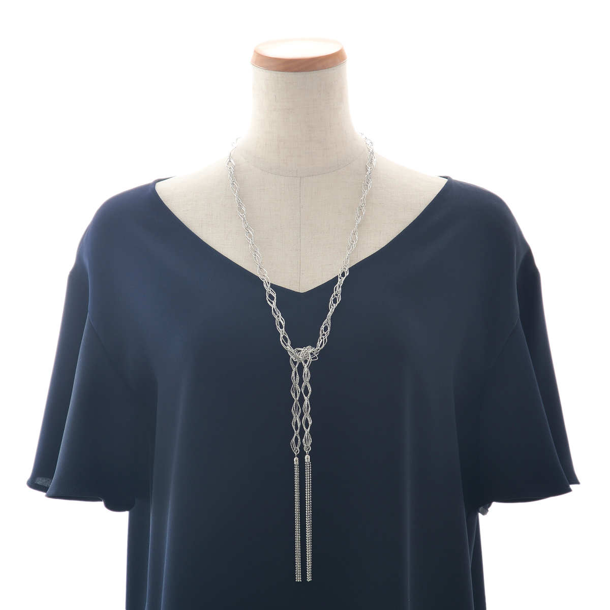 [地金] 合金 総重量(約) 28.6g 長さ(約) 105.0cm(フリンジ含む) [フリンジ長さ]約10cm 幅(約) 大:8.0mm 小:3.5mm チェーンの形状 ファンシー/カットボール 留具の形状 無 アジャスターの有無 無 [メッキ] シルバーカラーメッキ ■素材の大きさ・形・色合い、製品のサイズは1点1点多少異なります 【中国製】