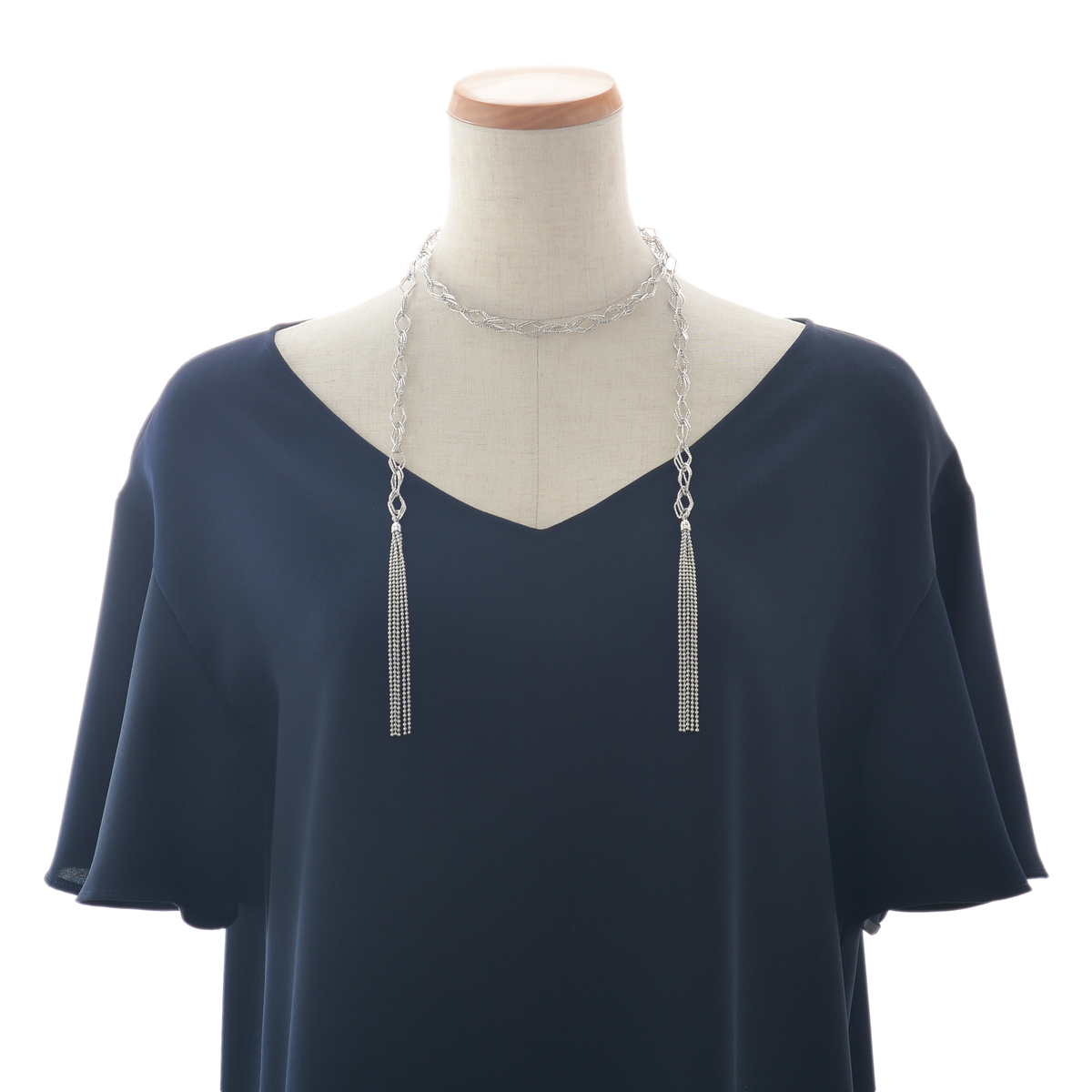 フリンジを前にしてY字スタイル、後ろにしてネックレスのように、首に巻いても使えるマルチウェイ仕様。シーンや気分に合わせてアレンジでき、毎日のコーディネートにアクセントを加えてくれます
