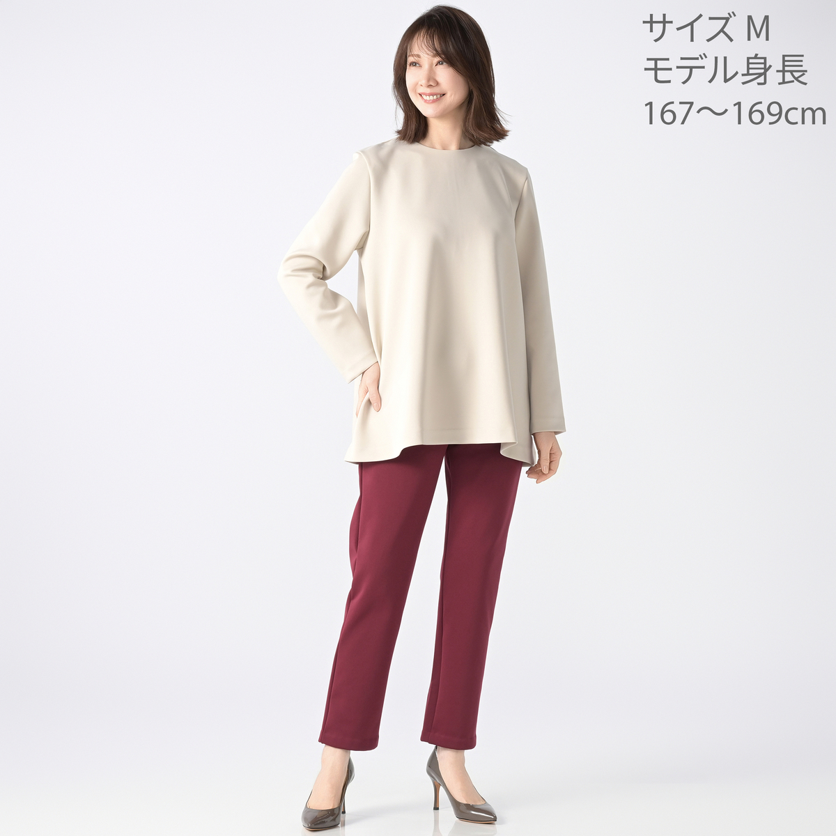 穿いた瞬間から心地よい暖かさの期待がもてる裏起毛。ポリウレタンには東レ・ライクラ社"ライクラ(R)"を使用し360度全方向にしっかり伸縮。保温性、防シワ、ピリングができにくいなどの機能性も。カジュアルからきれいめまで、おしゃれに着こなせます