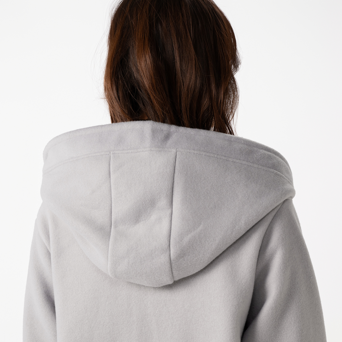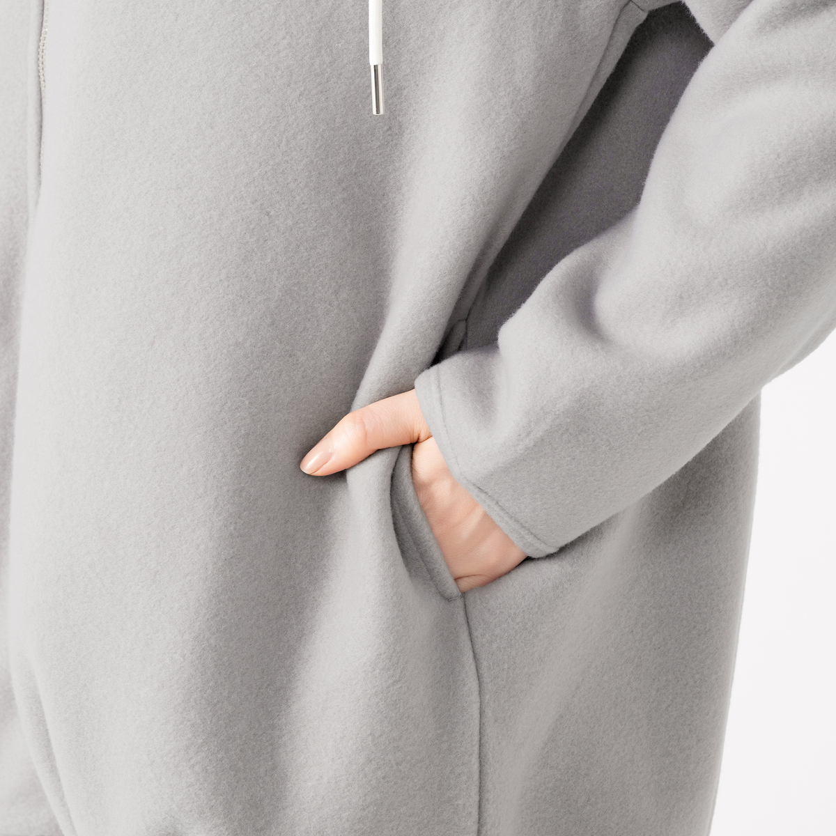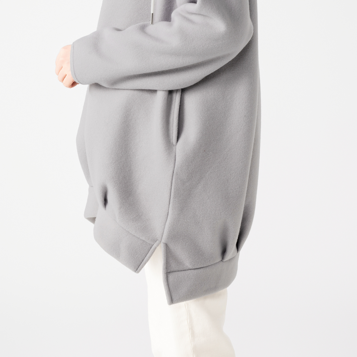 フェミニンな丸みを描く上品なデザイン。裾タックで柔らかなシルエットを演出し、ゆったりとした着心地ながら着膨れしにくい仕立てです。フード口は見返し仕様で、きちんと感をプラス。厚手インナーとも好相性で、冬のレイヤードに活躍します
