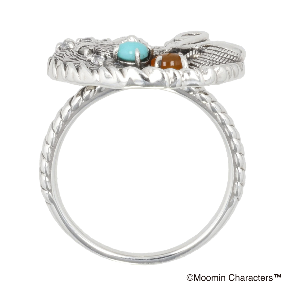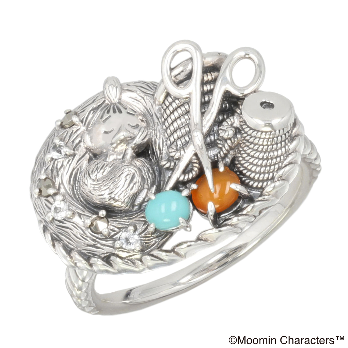 ムーミン谷の夏まつりの一場面をモチーフに、リトルミイがアンゴラ毛糸の中で眠る姿を繊細に表現したリング。物語のワンシーンを指元で感じられる、心温まるデザインです
