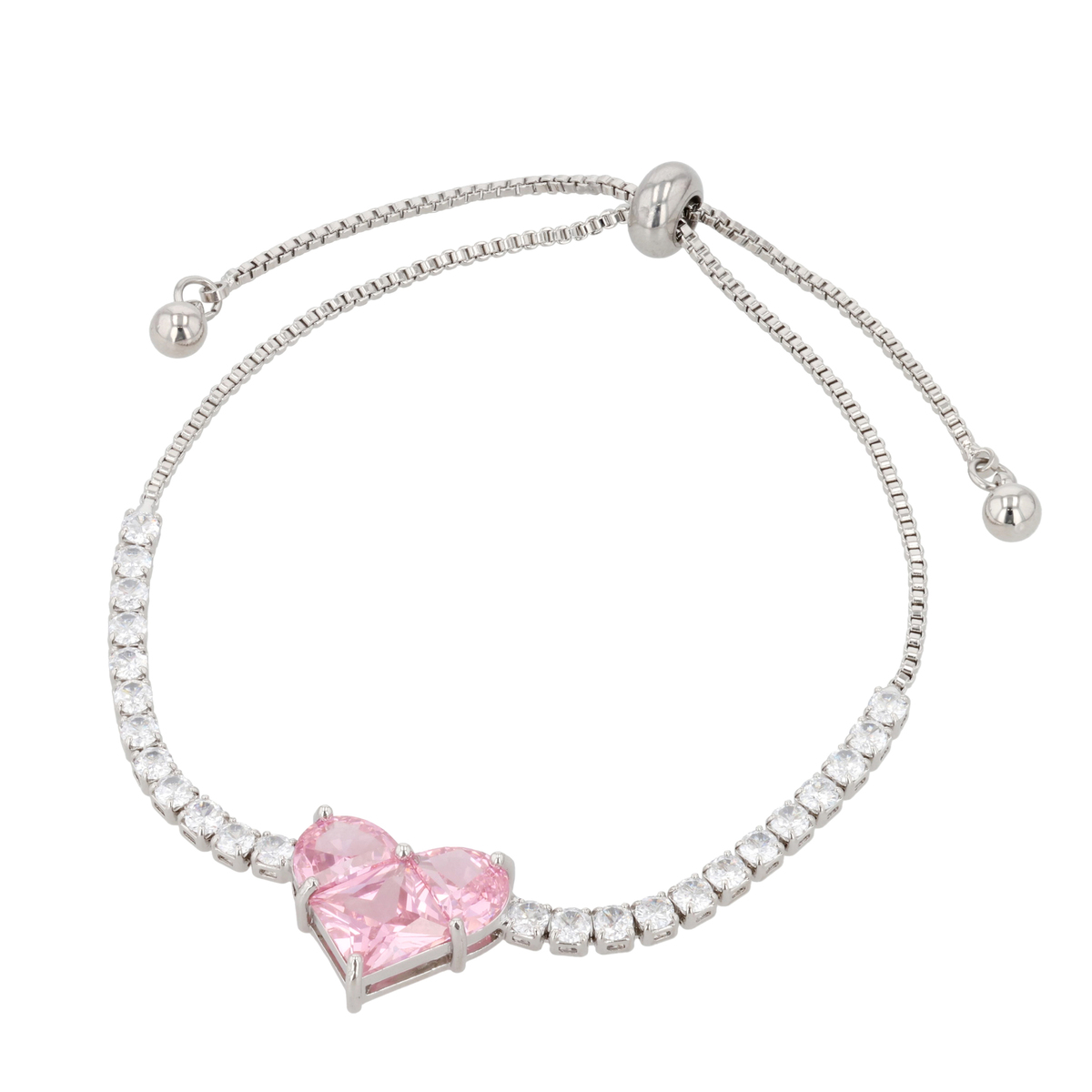 ハート型に配されたピンクのキュービックジルコニアで、優しさとロマンティックな雰囲気に。両サイドにはラウンドカットのキュービックジルコニアがシンメトリーに並び、繊細な輝きが手元を華やかに彩ります