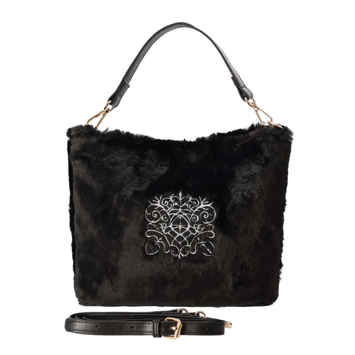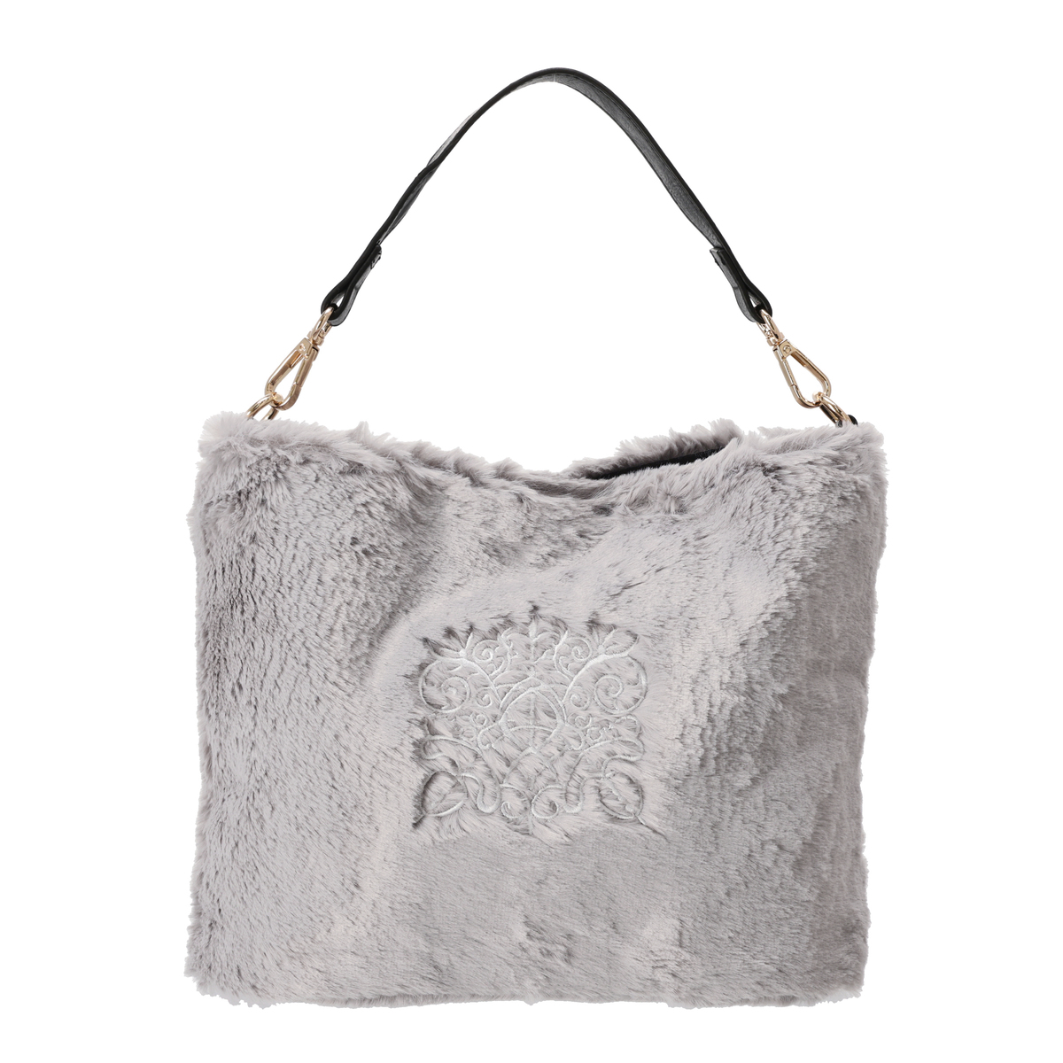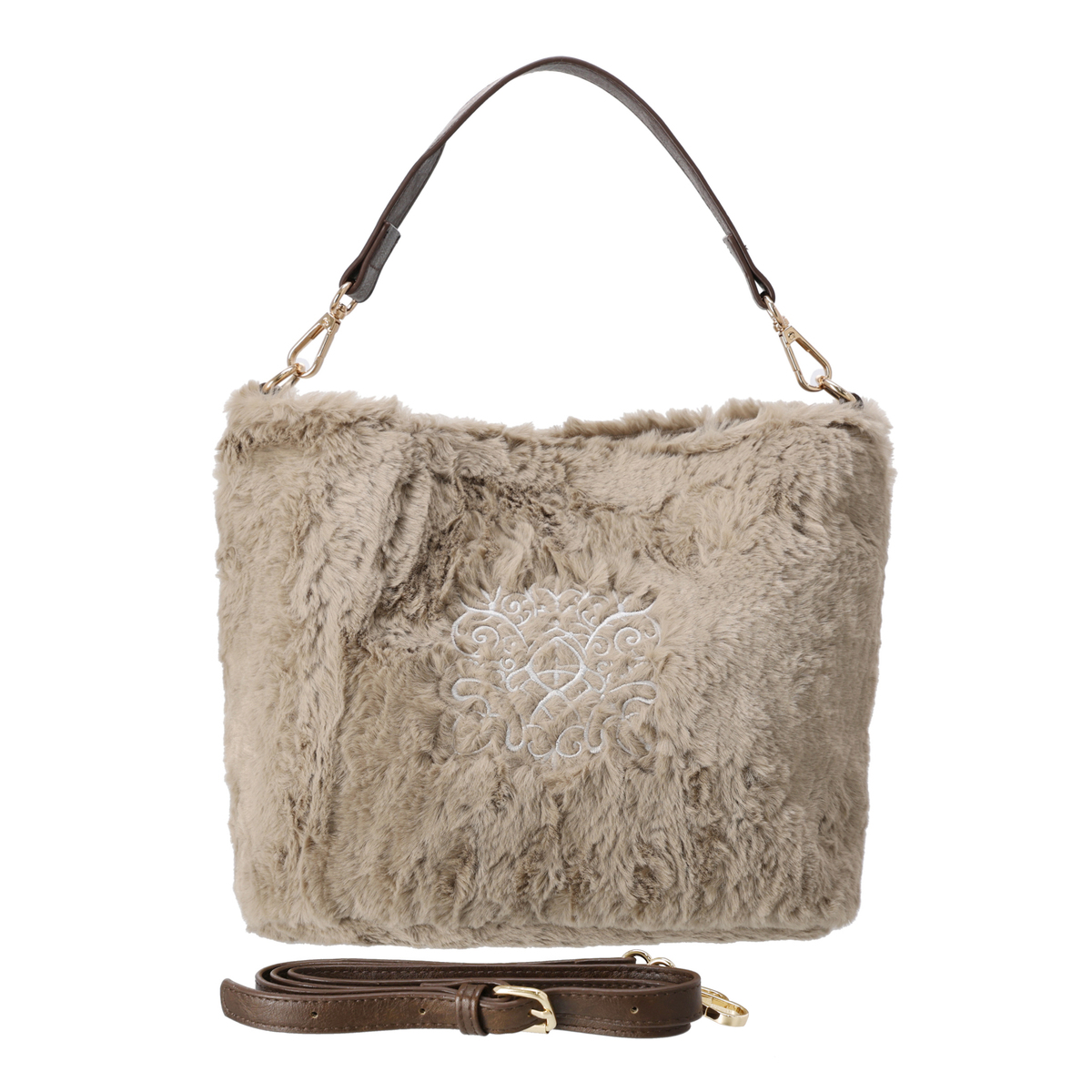 [サイズ(約)] 縦22×横30×マチ7cm ハンドル立ち上がり:15cm ショルダー立ち上がり:90〜110cm [重量(約)]※付属品含む 272g [素材] ファー部分・裏地・刺しゅう糸:ポリエステル100% 持手皮革部分:合成皮革 ※裏地有 [仕様] 付属(取り外し可):ハンドル×1 ショルダ―ストラップ×1 開閉:マグネットボタン式 底ビョウ :無 [ポケット] 内側:オープンポケット×1、ファスナー式ポケット×1 外側:無 【中国製】