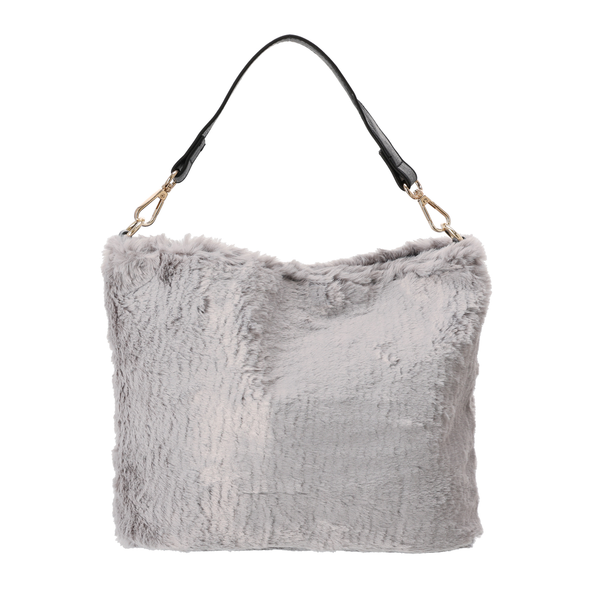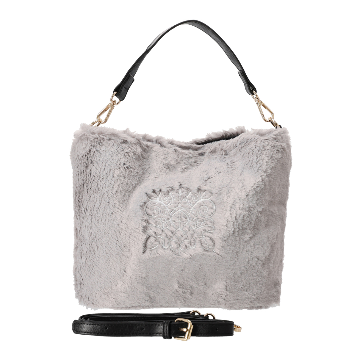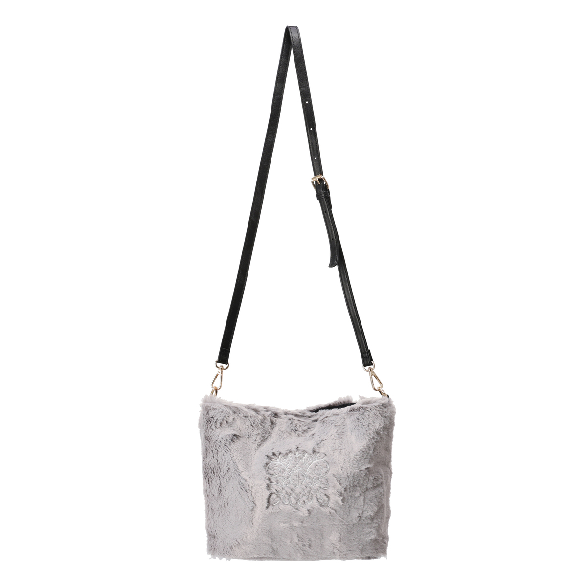 口部分はマグネット留めなので開け閉めもしやすく。内側に2種類のポケット付きで、小物などを分けて収納可能。ファーを使ったデザインで、パーティーなどの華やかなシーンにもマッチします