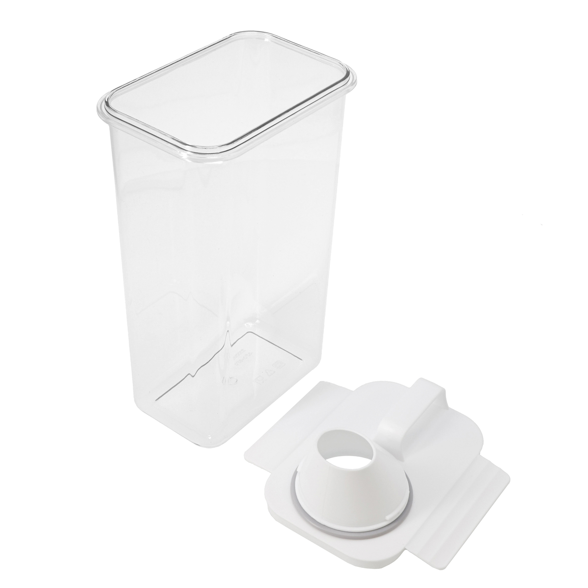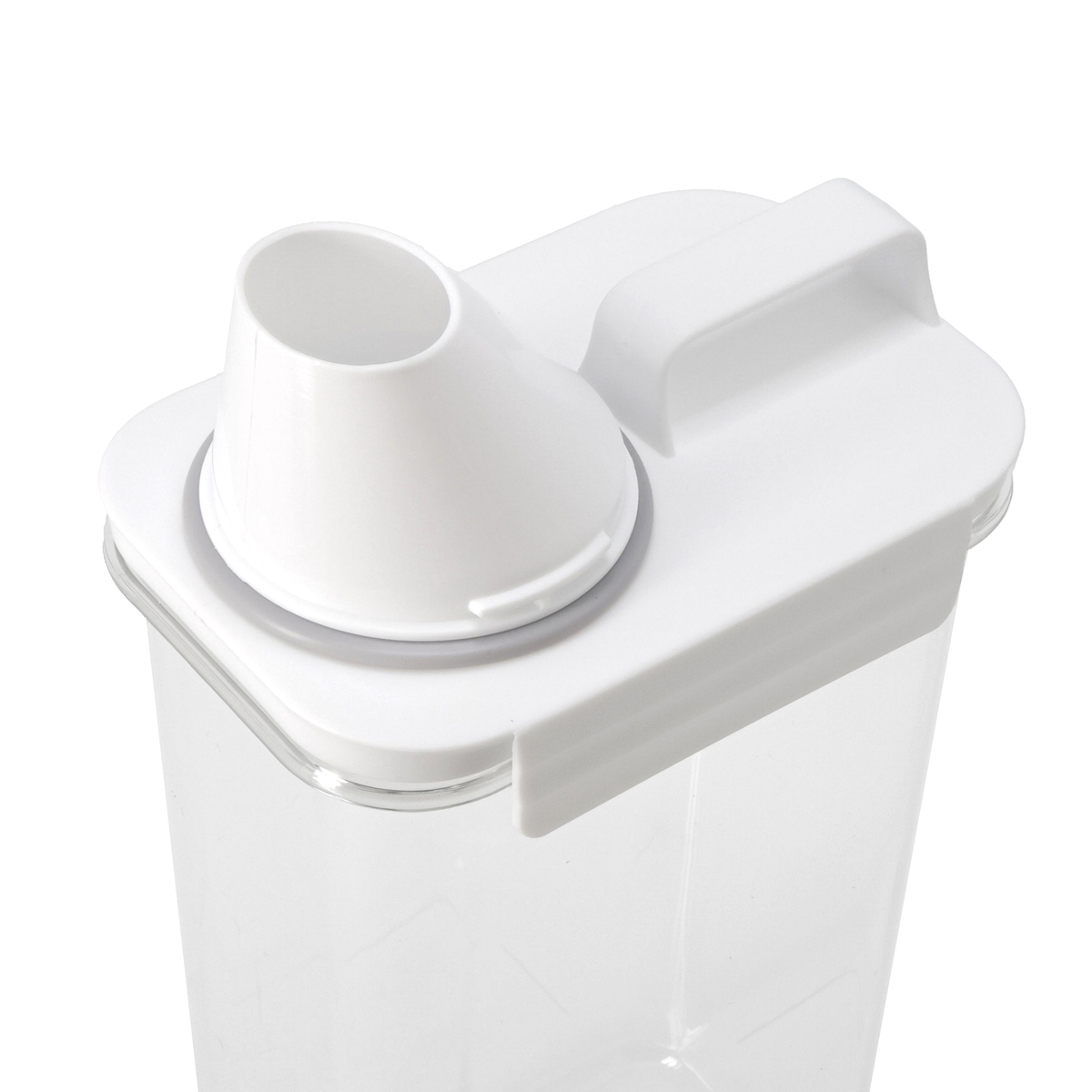 全量入るようにするため、かなり背が高くなりました。別なケースに入れ使っていましたが、このケースは置き場の棚にギリギリでした。取り出すのも少し大変です。棚が洗濯機の上なので。せっかくのボトルキャップのメモリですが、洗濯する量「○キログラム」に対する適量をメモリにして付けていただきたかった。全量入れられなくともよいのでサイズを小さくしていただけませんか。それから持ち手はケースの上ではなく短辺の横に付けていただけるとありがたいです。元のケースに戻すことを考えています。