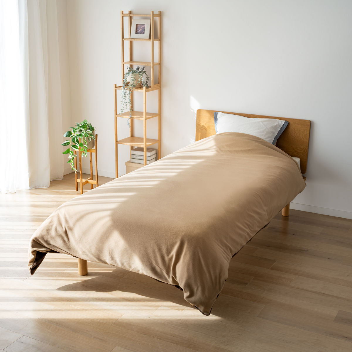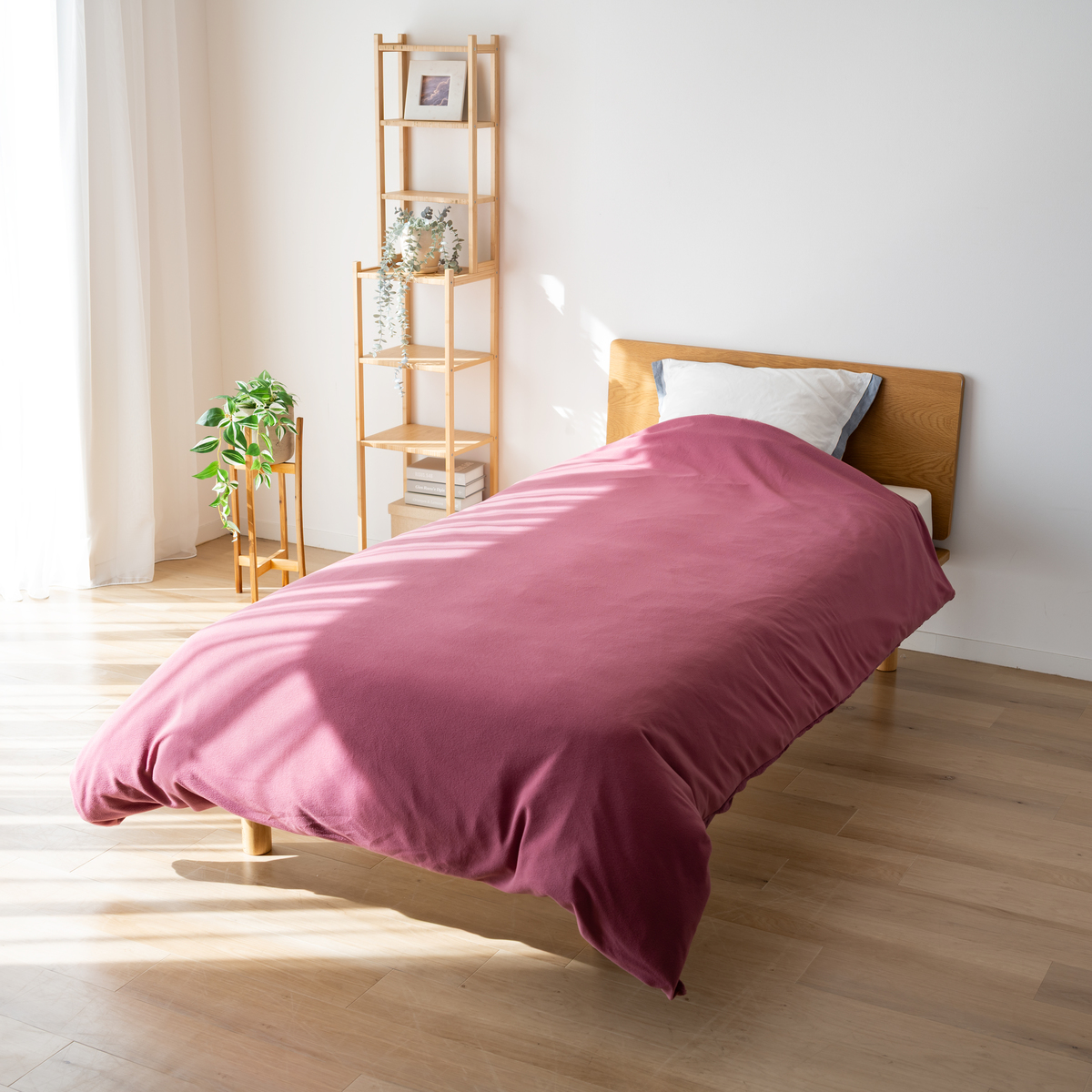 毛布素材*でできた掛けふとんカバー。カバーとしてはもちろん毛布代わりとしても使えます。全開ファスナー仕様でふとんの出し入れもラクに。内側にはふとんのズレを防止するホック付き。さらに肌面部分に抗菌防臭加工、帯電防止機能を施しています