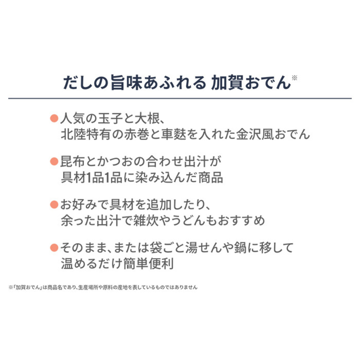 *「加賀おでん」は商品名であり、品名中の「加賀」は生産場所や原料の産地を表しているものではありません