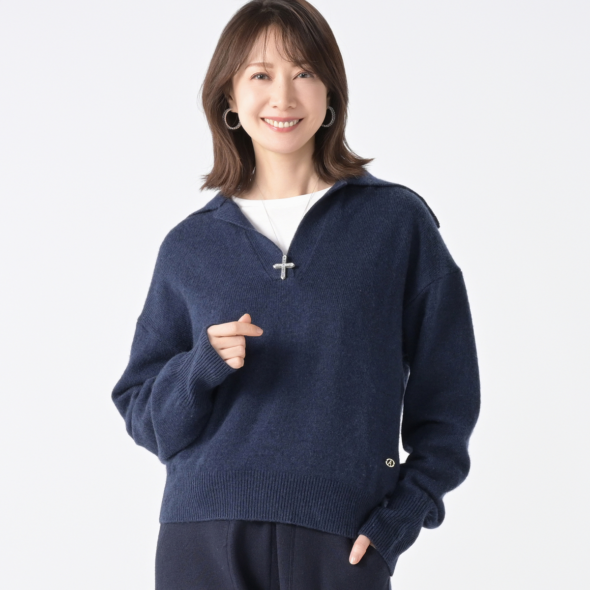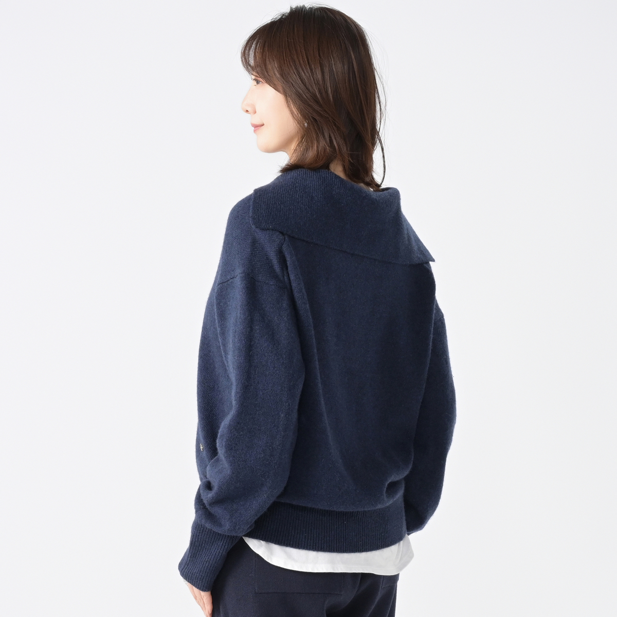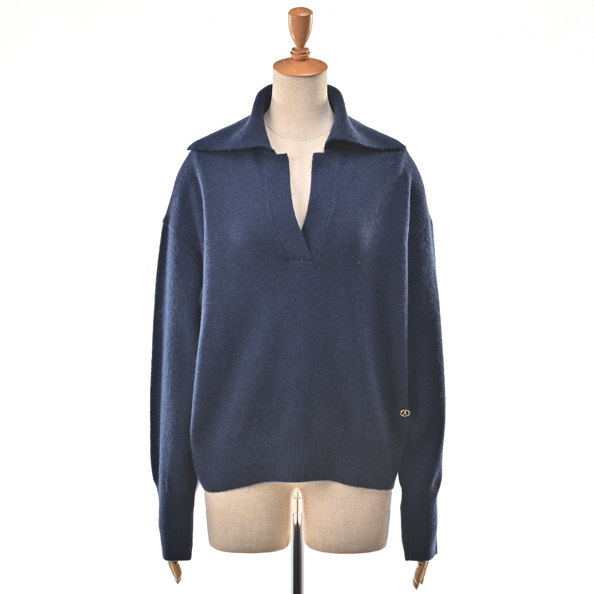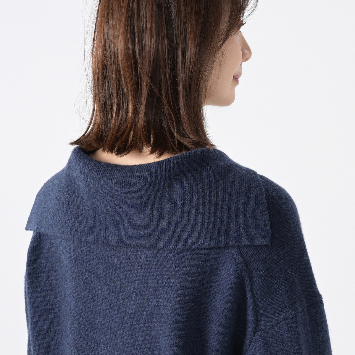 カシミヤミックス糸を使用したスキッパーカラーのプルオーバー。衿を抜いてセーラーカラーのように着こなせます