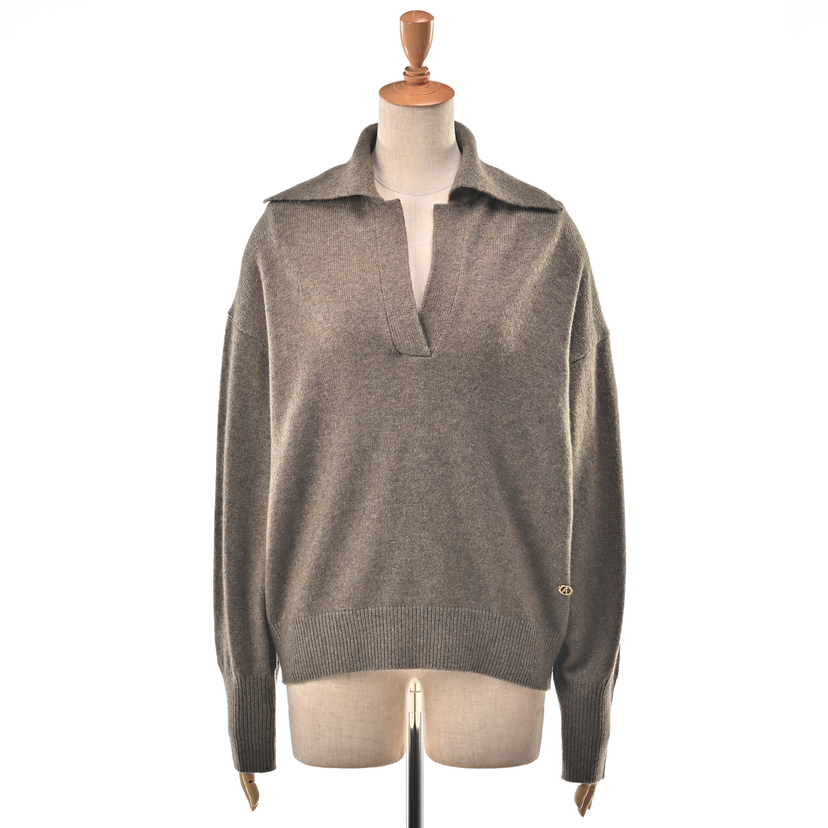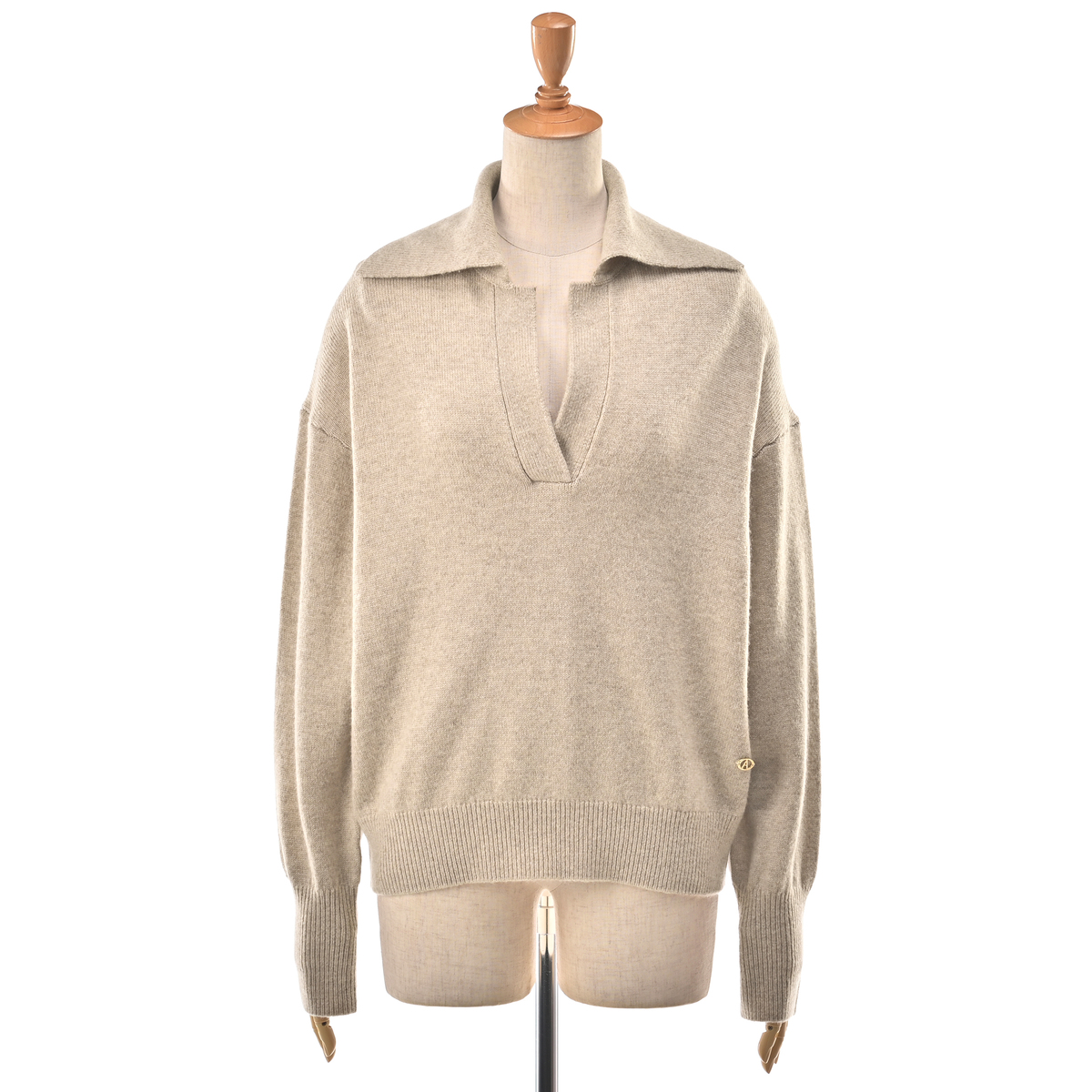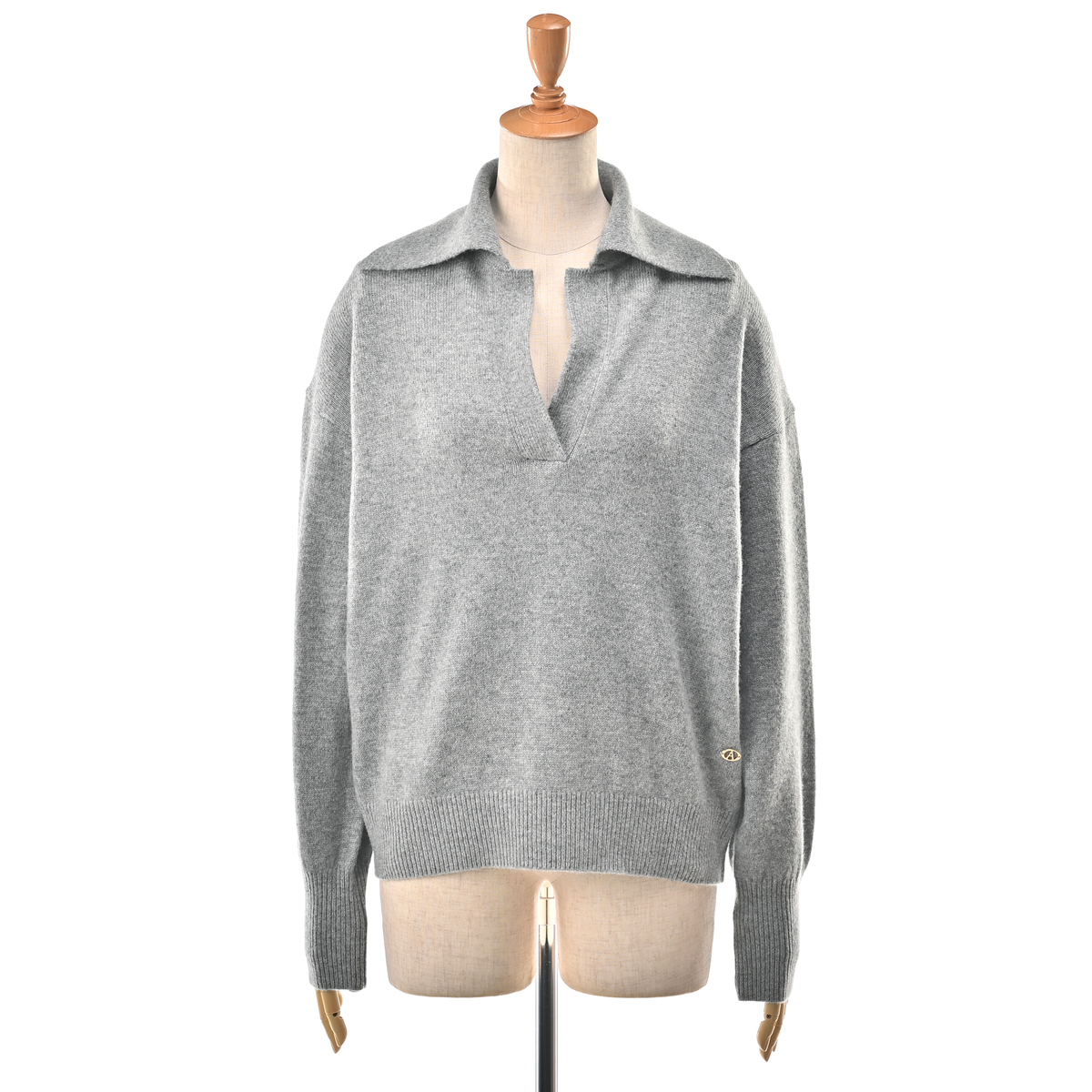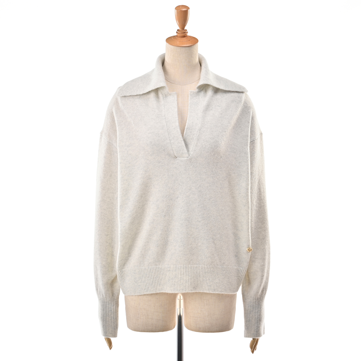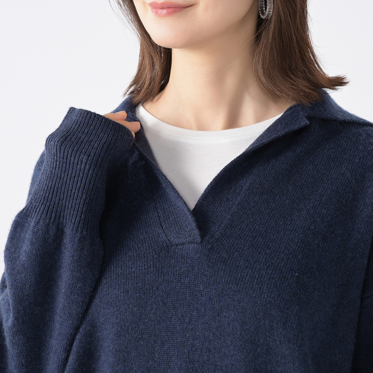 カシミヤミックス糸を使用したスキッパーカラーのプルオーバー。衿を抜いてセーラーカラーのように着こなせます