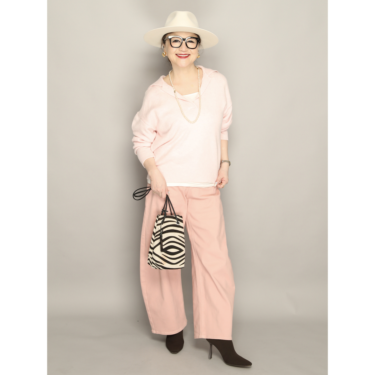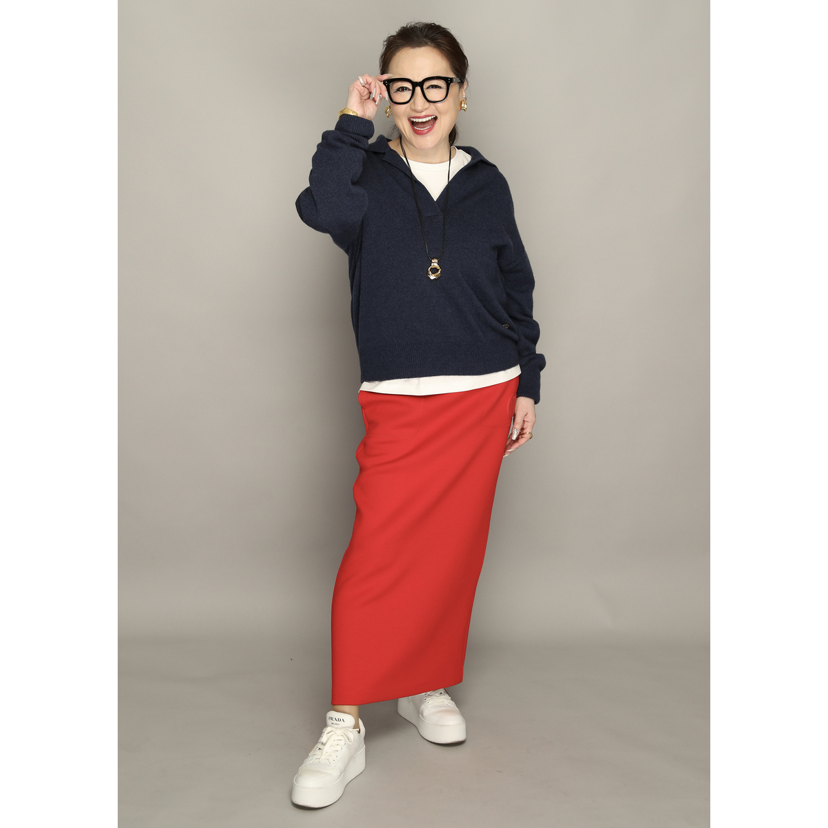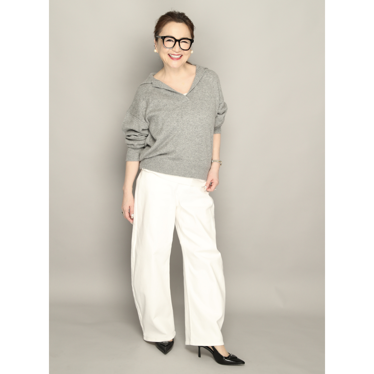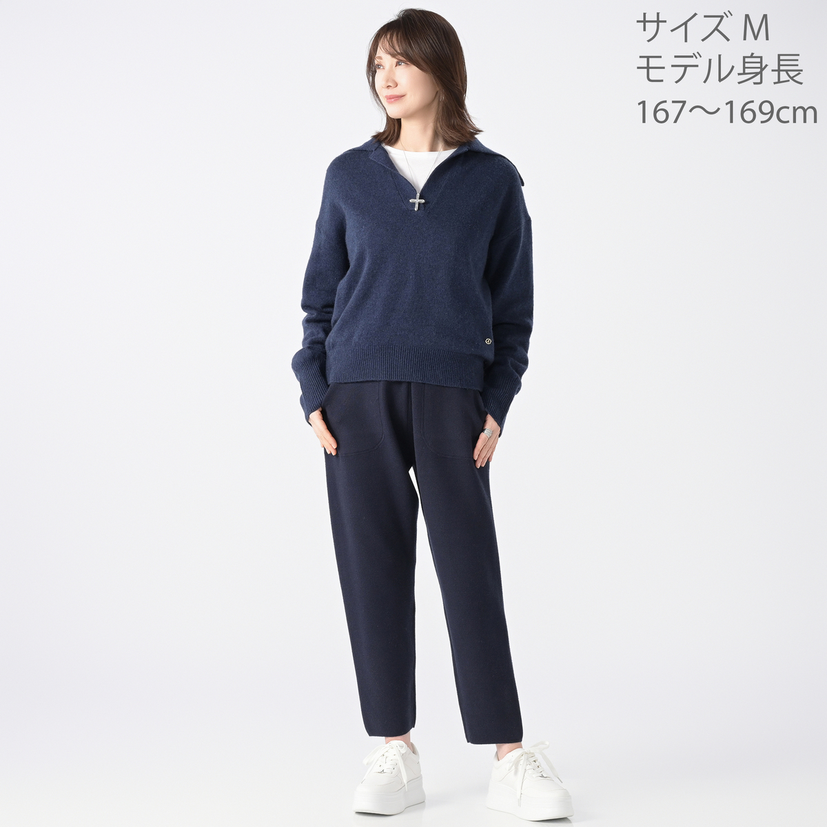 カシミヤミックス糸を使用したスキッパーカラーのプルオーバー。衿を抜いてセーラーカラーのように着こなせます