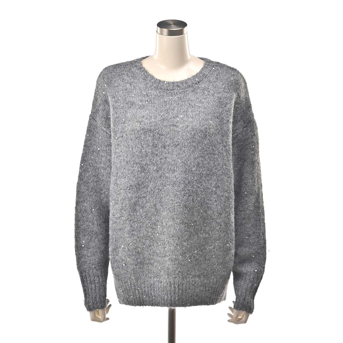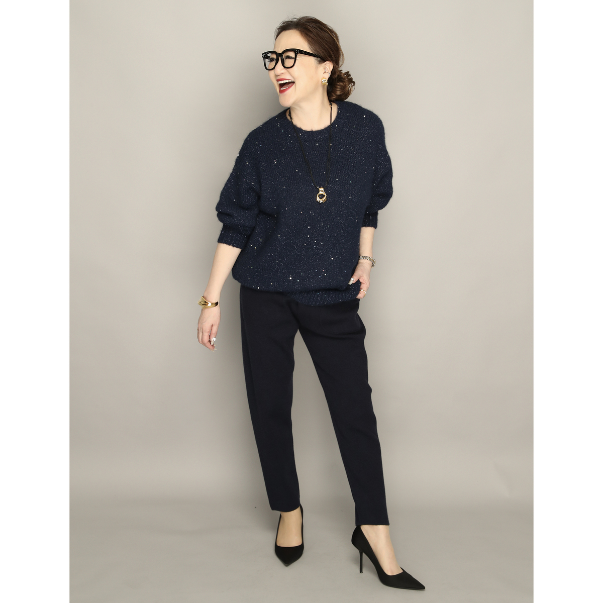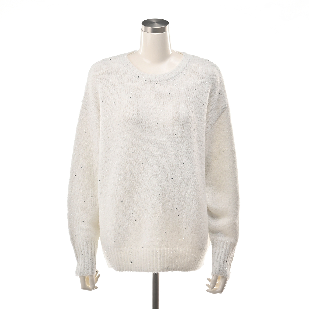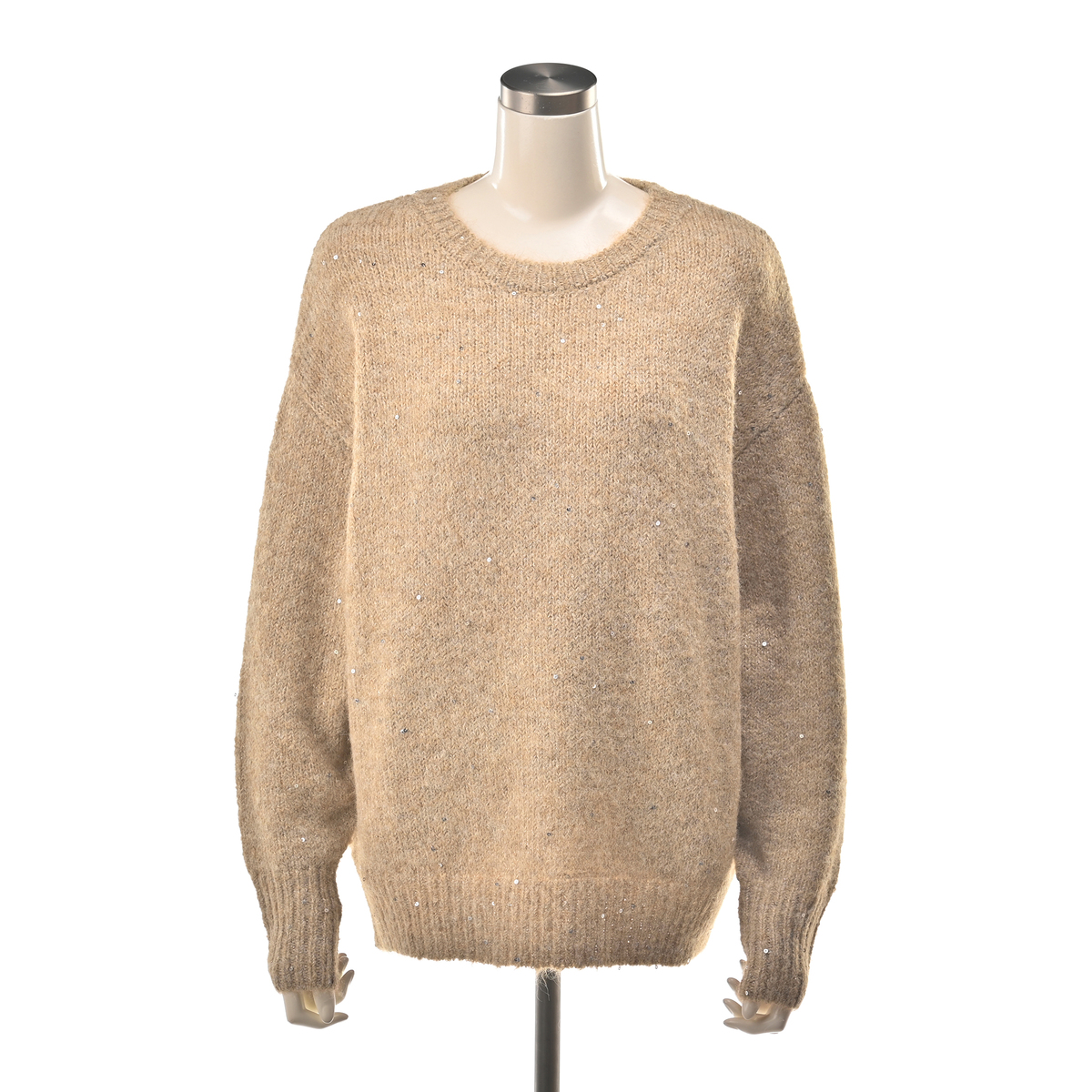 ウールミックスのスパンコールヤーンが輝く、トレンド感あふれるニットプルオーバーです